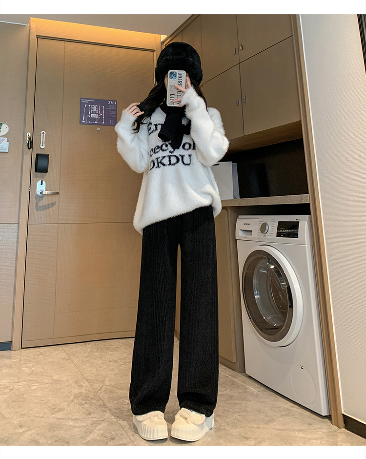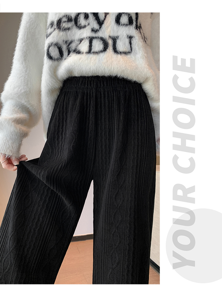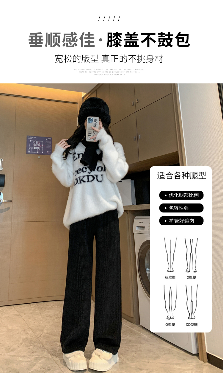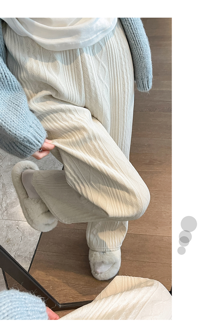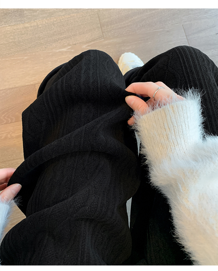 RM29450#加绒窄版白色提花雪尼尔阔腿裤女秋冬高腰垂感显瘦休闲直筒裤