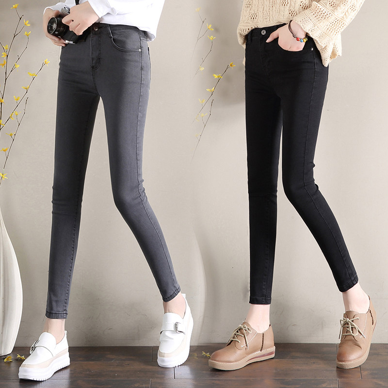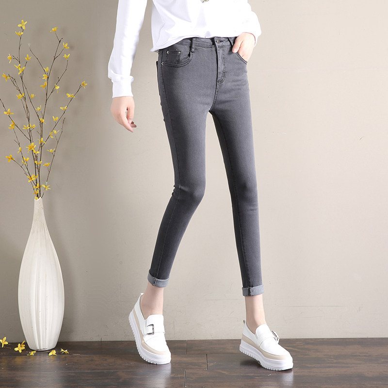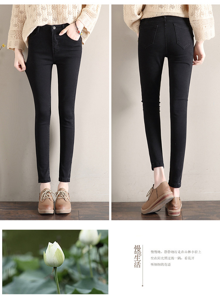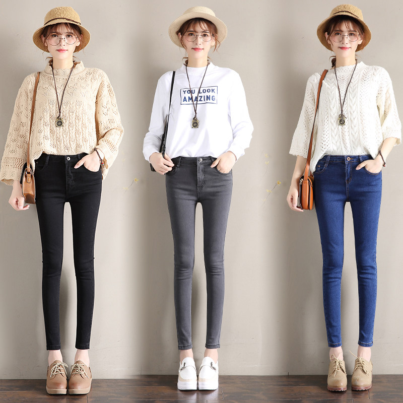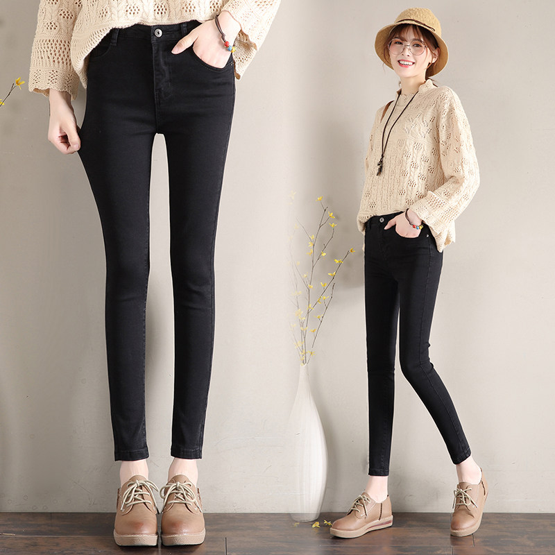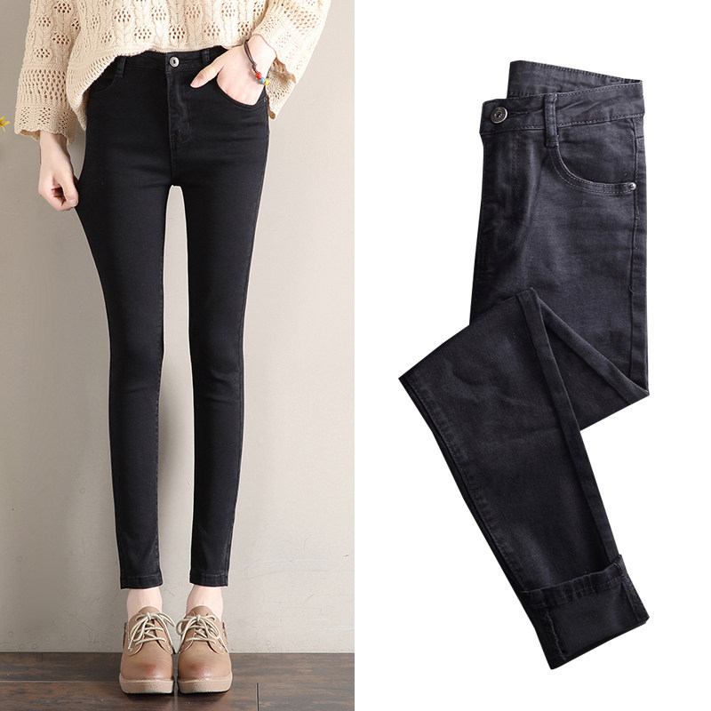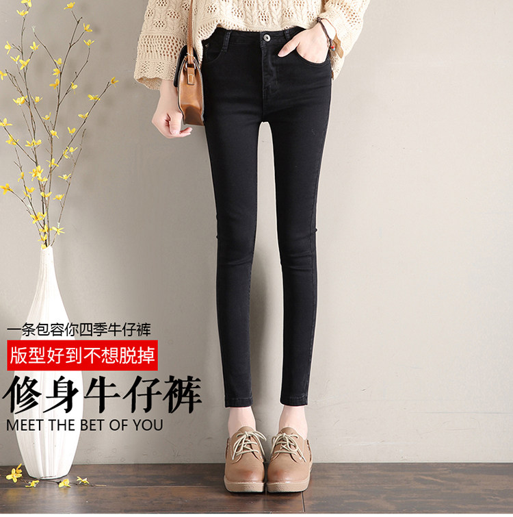 RY1990#女春秋弹力新款韩版显瘦黑色高腰学生紧身小脚九分裤潮