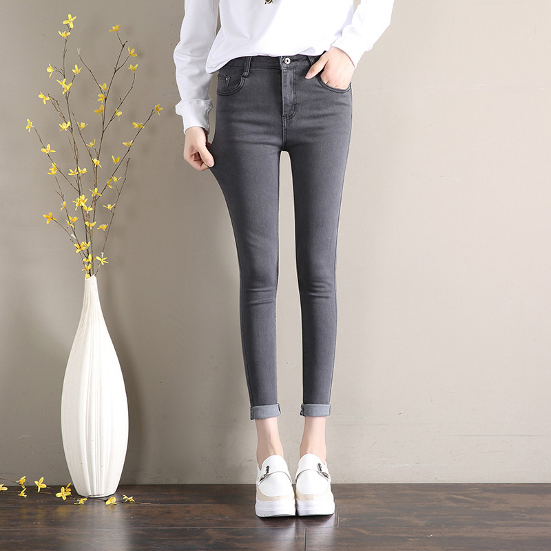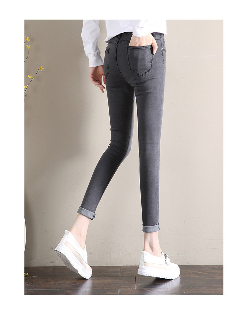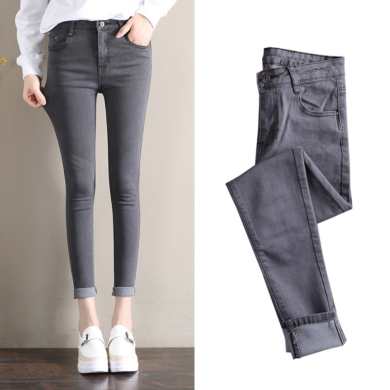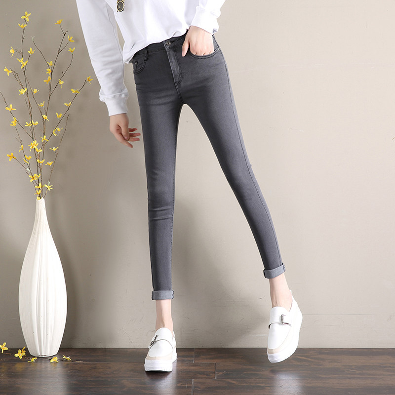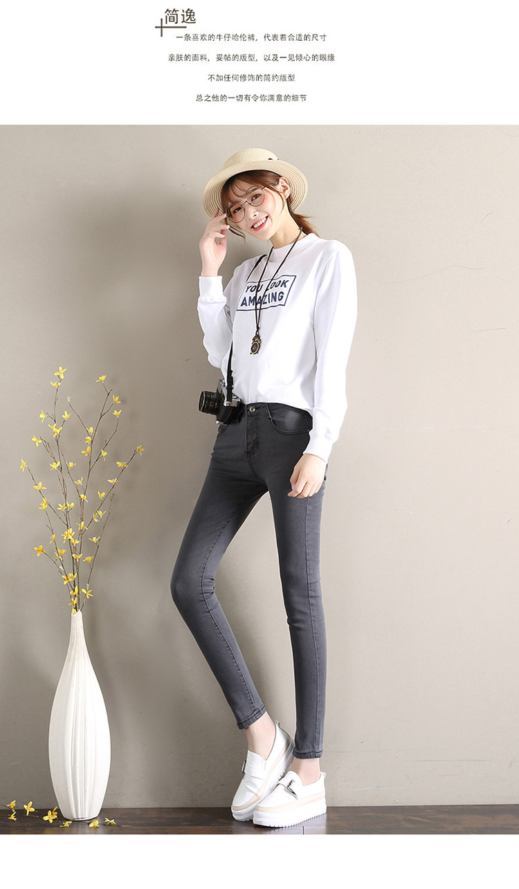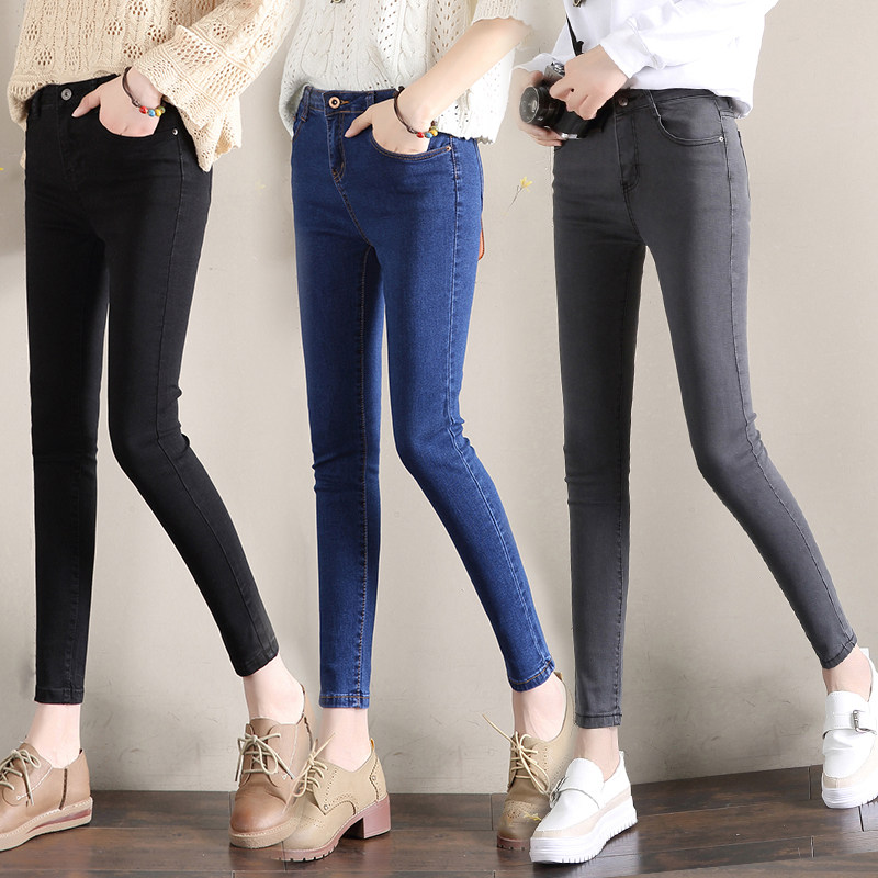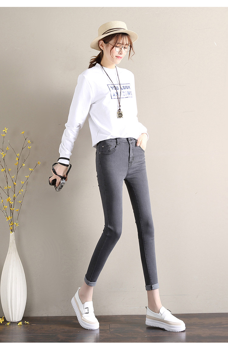RY1990#女春秋弹力新款韩版显瘦黑色高腰学生紧身小脚九分裤潮