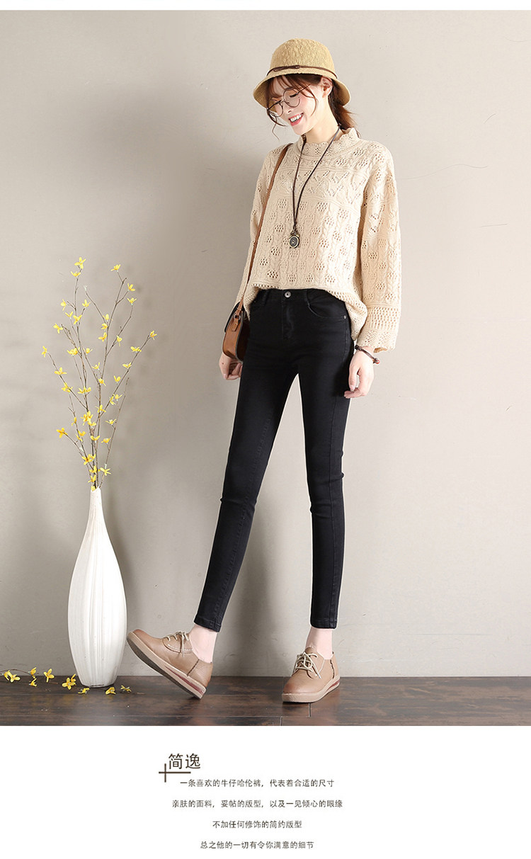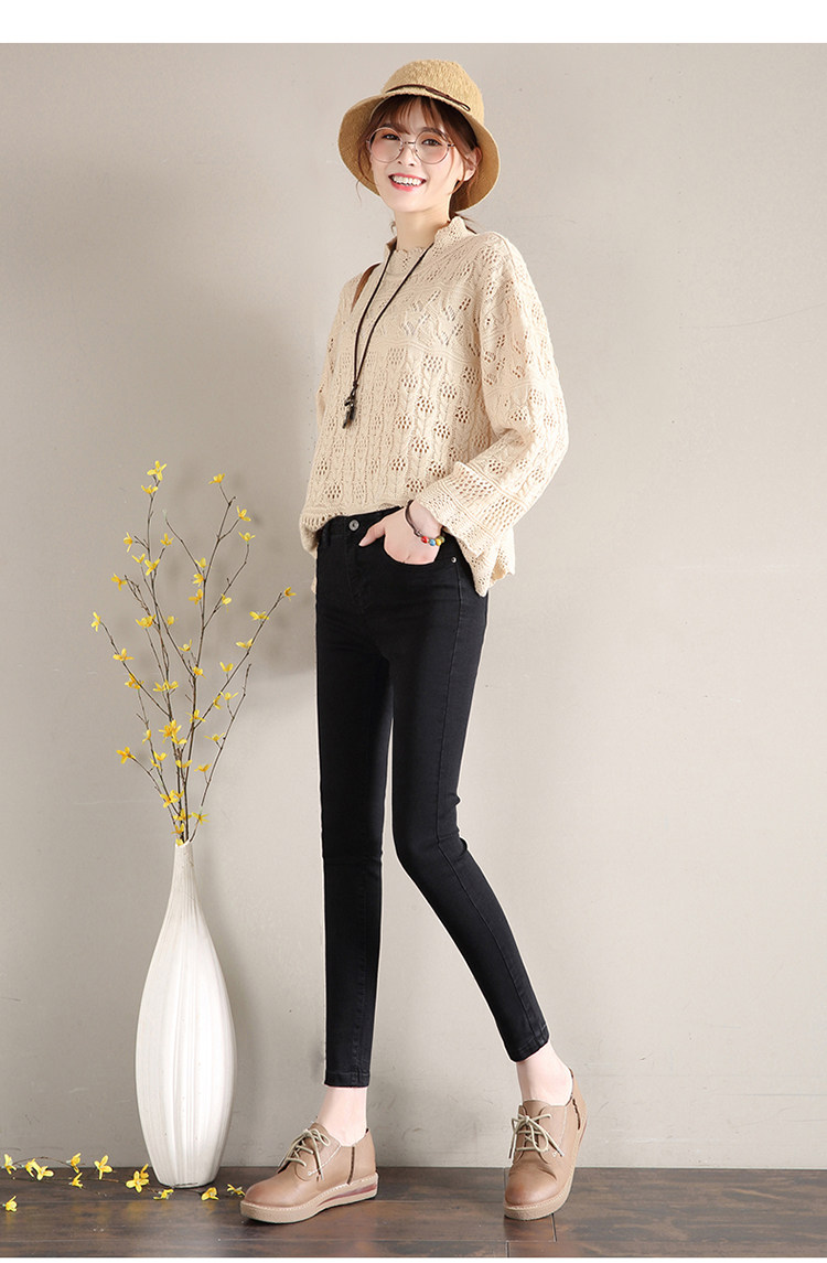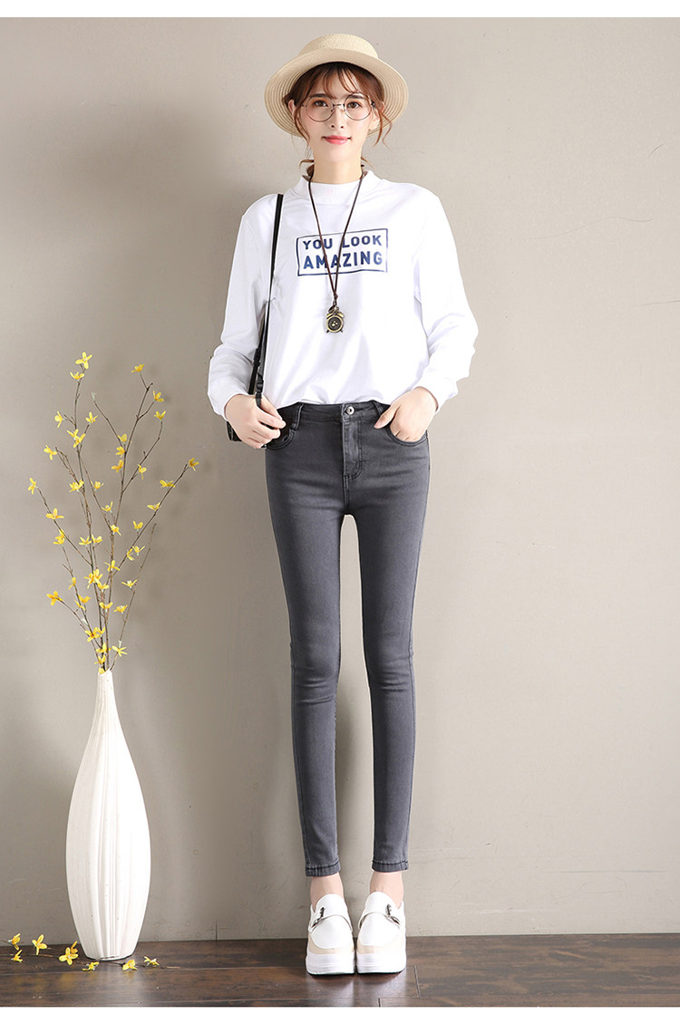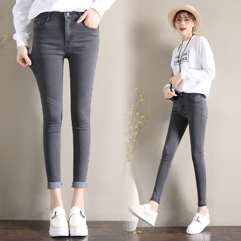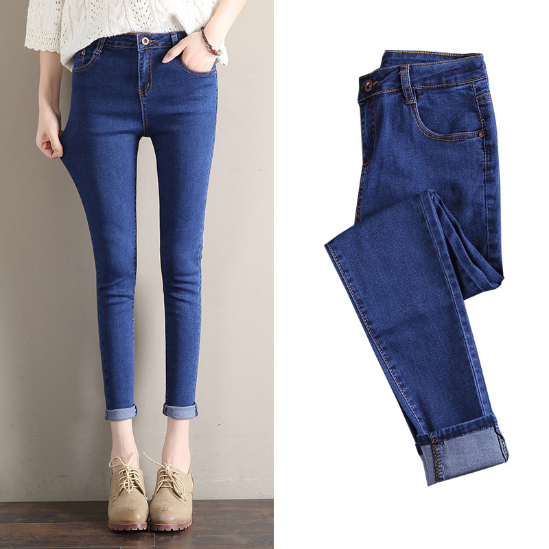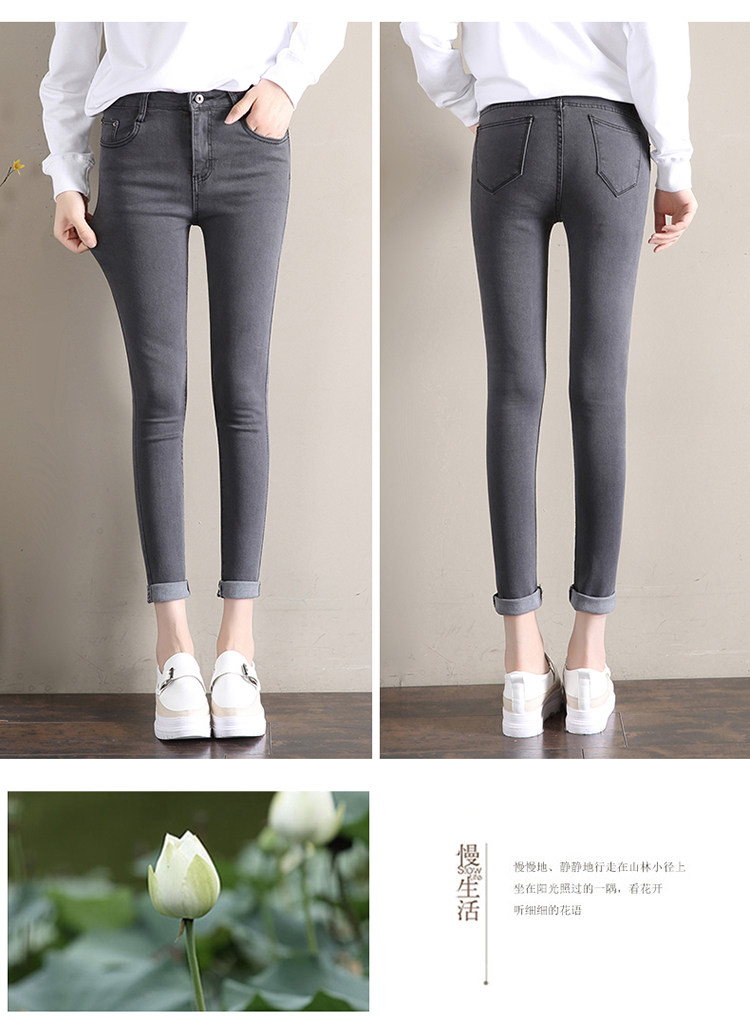 RY1990#女春秋弹力新款韩版显瘦黑色高腰学生紧身小脚九分裤潮