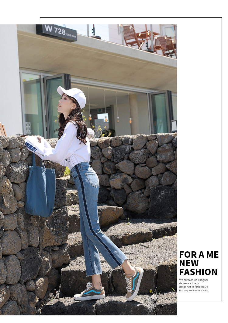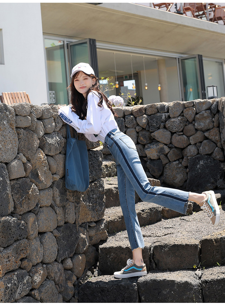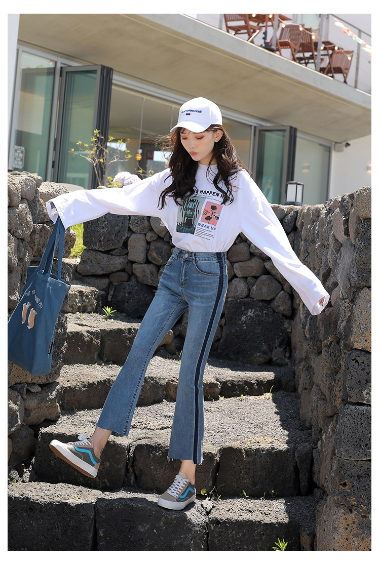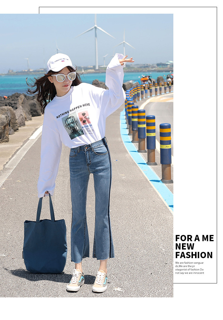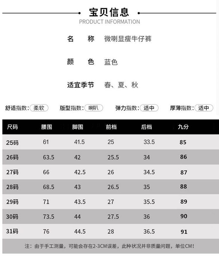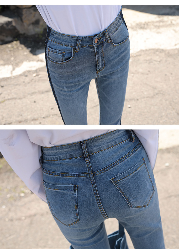 RM29455#牛仔裤女夏弹力新款高腰薄微喇裤韩版显瘦毛边喇叭九分裤