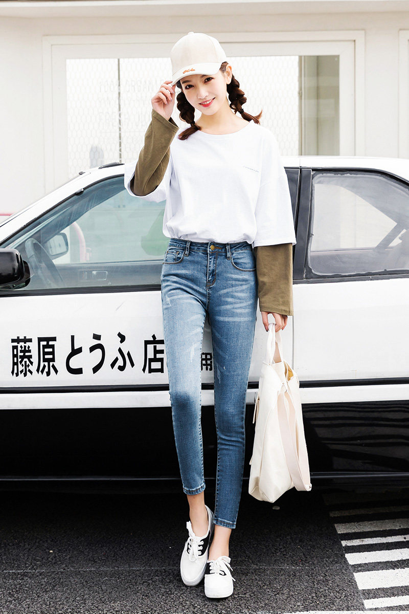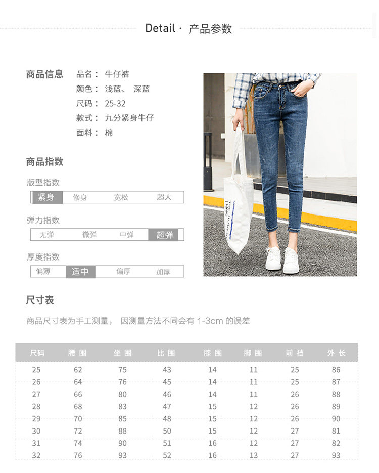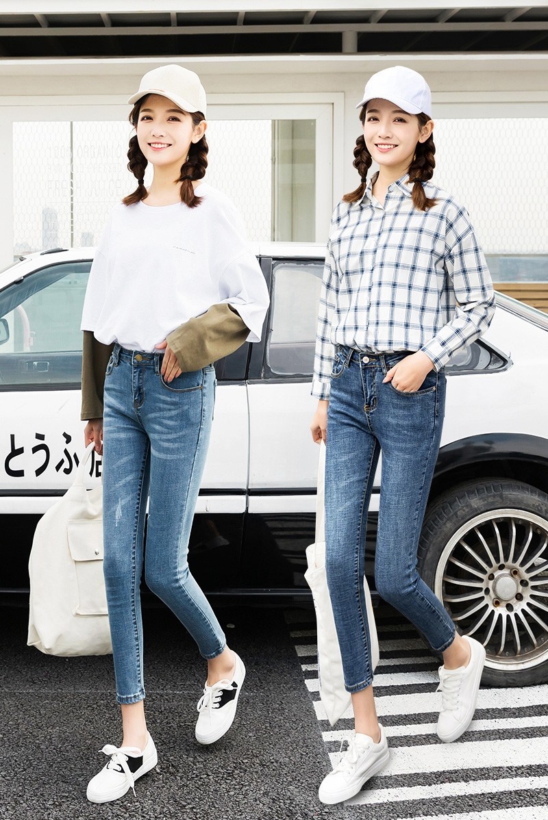 RM29456#显瘦牛仔裤女九分春季新款弹力小脚紧身铅笔裤潮