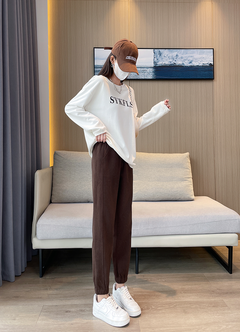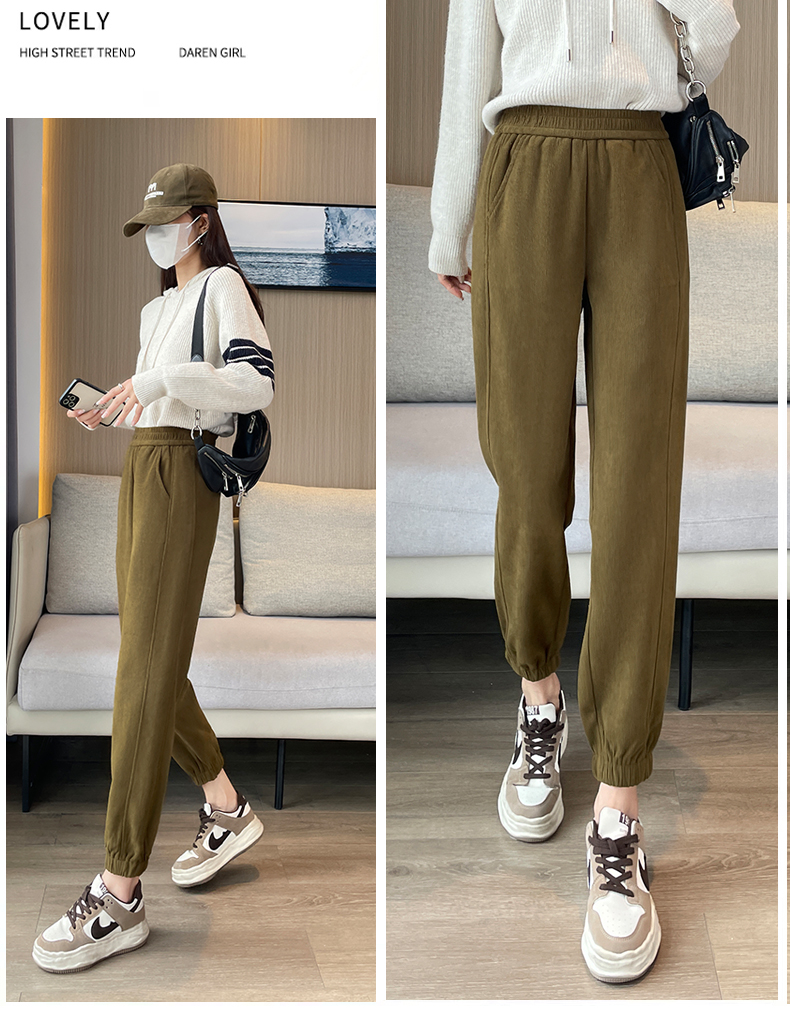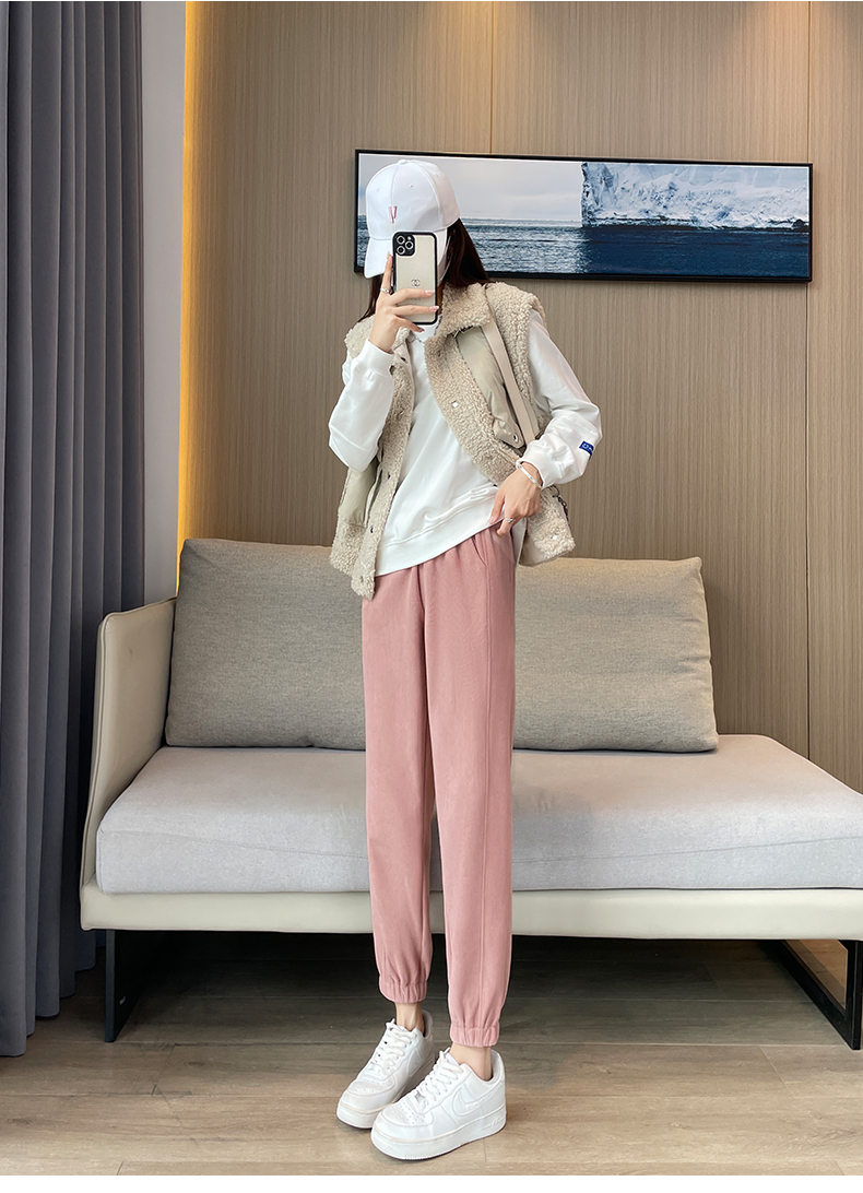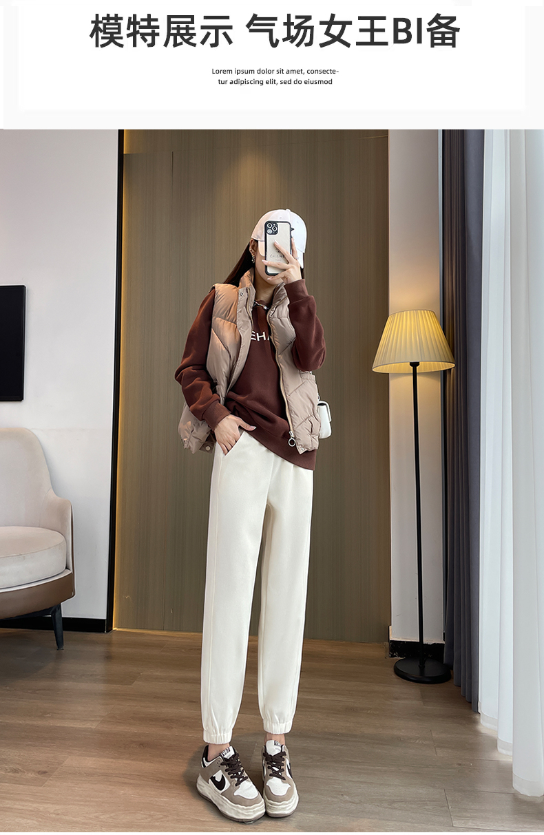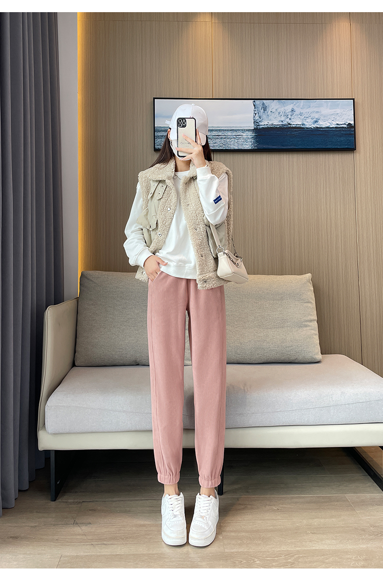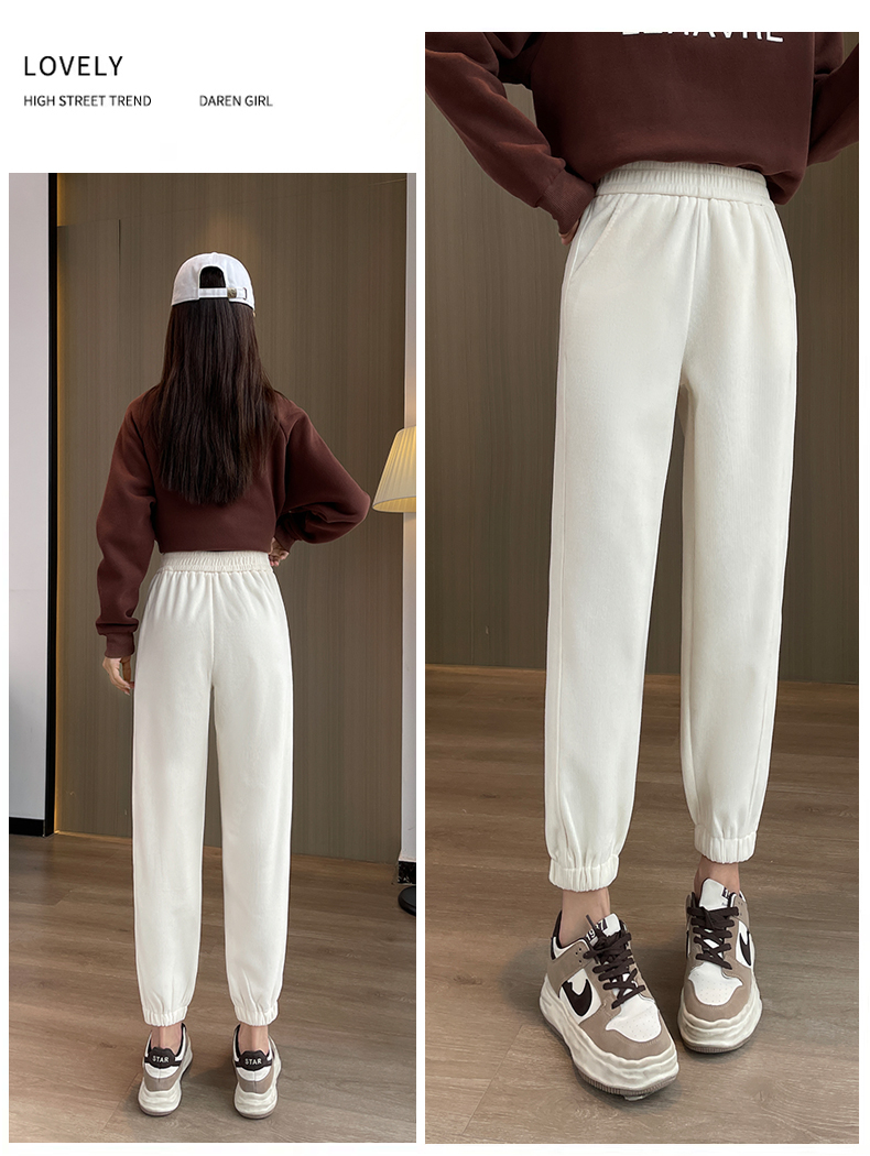 RM29472#白色防风运动裤秋冬季雪尼尔工装裤宽松束脚欧棉绒哈伦卫裤