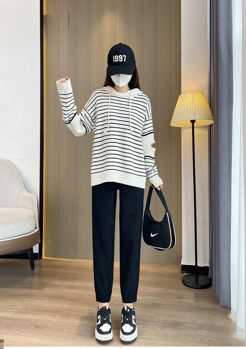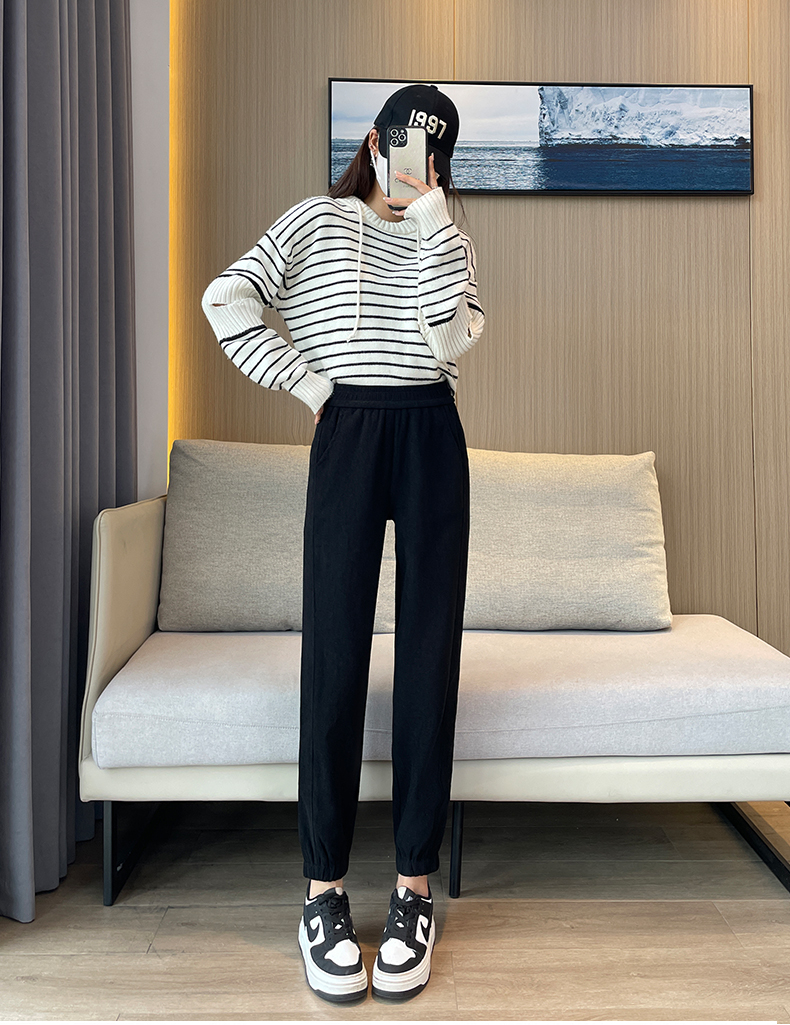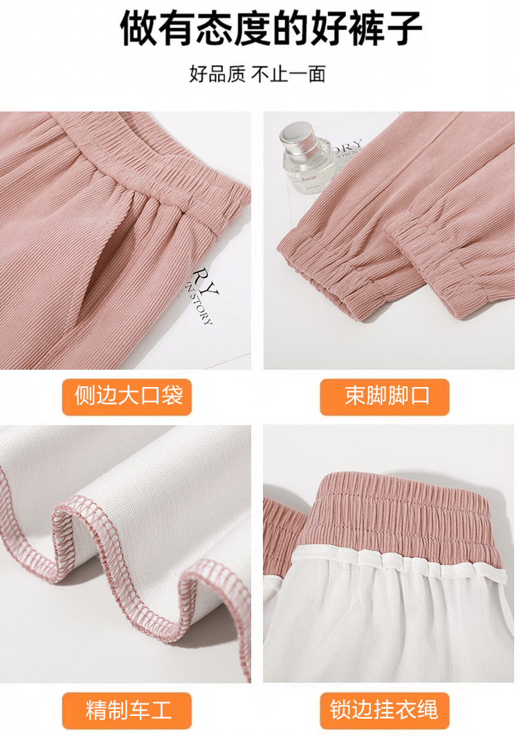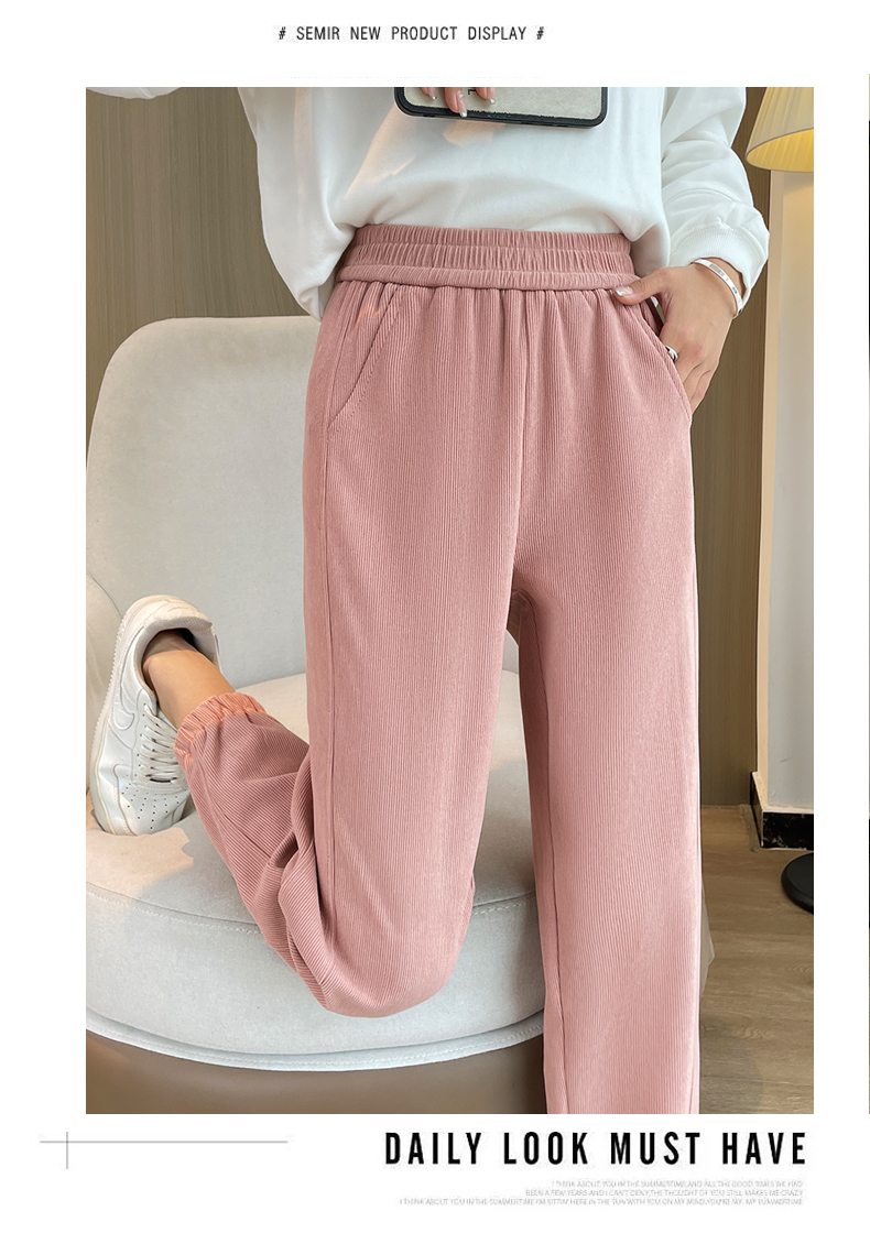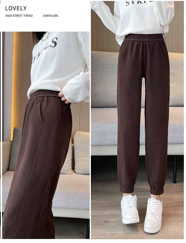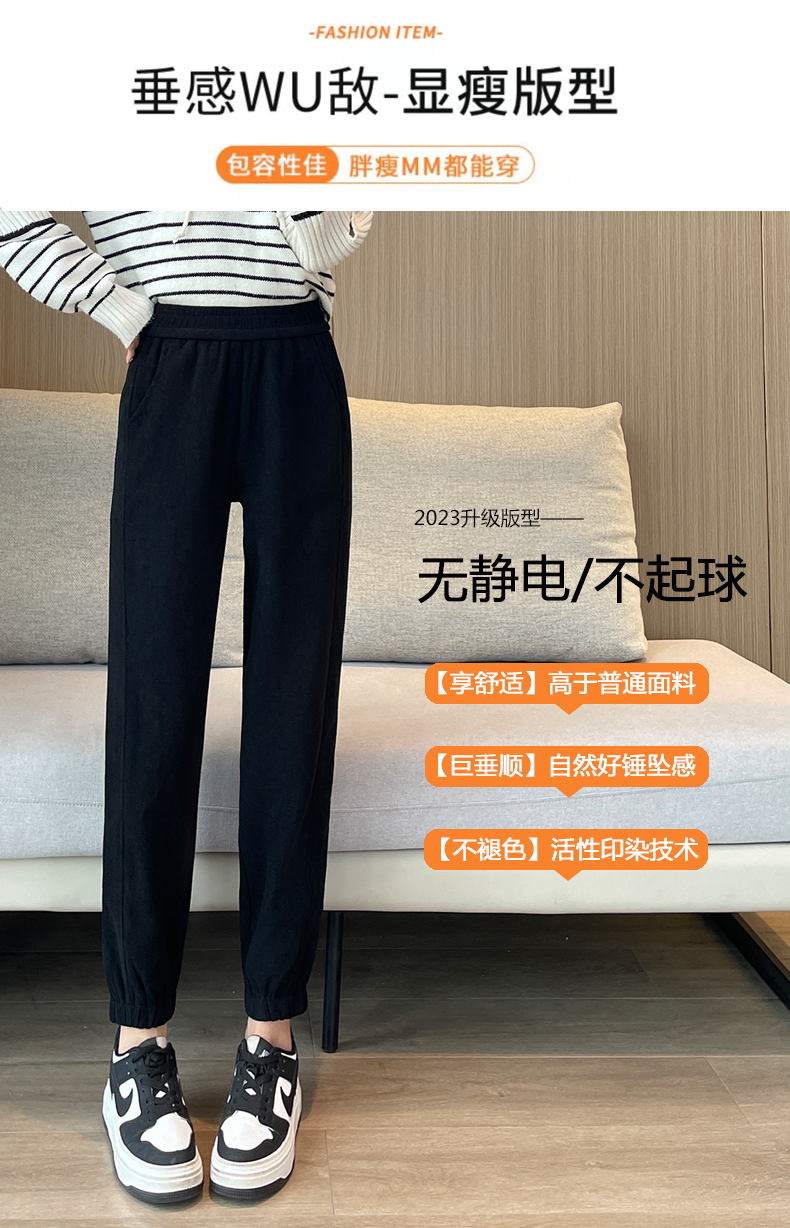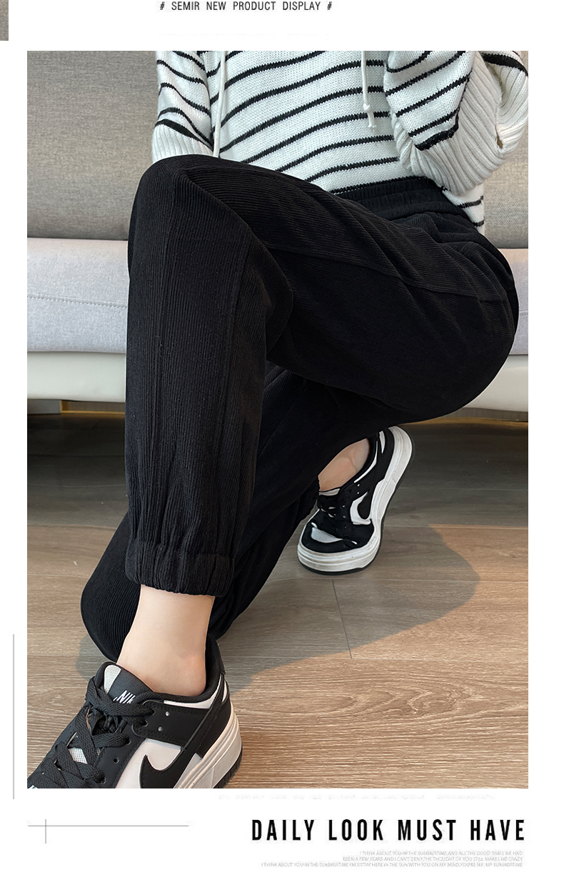 RM29472#白色防风运动裤秋冬季雪尼尔工装裤宽松束脚欧棉绒哈伦卫裤