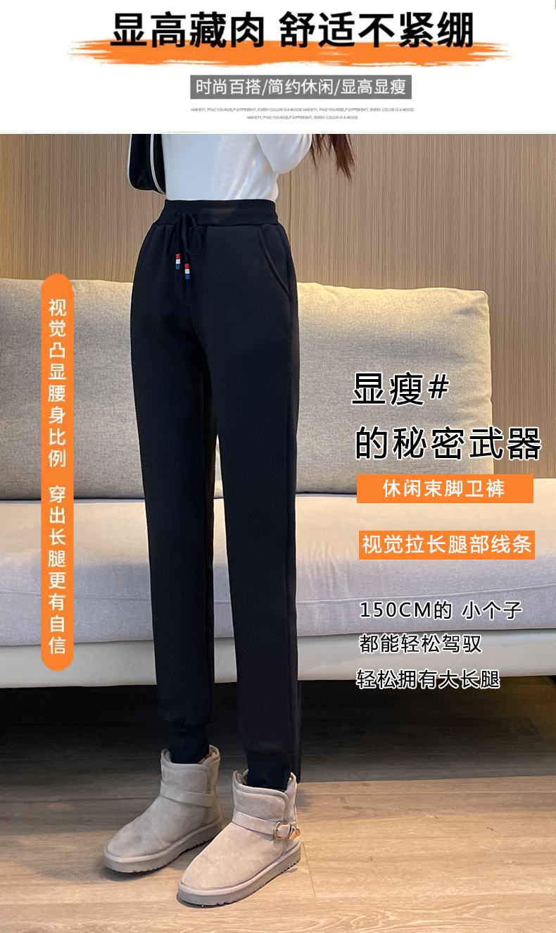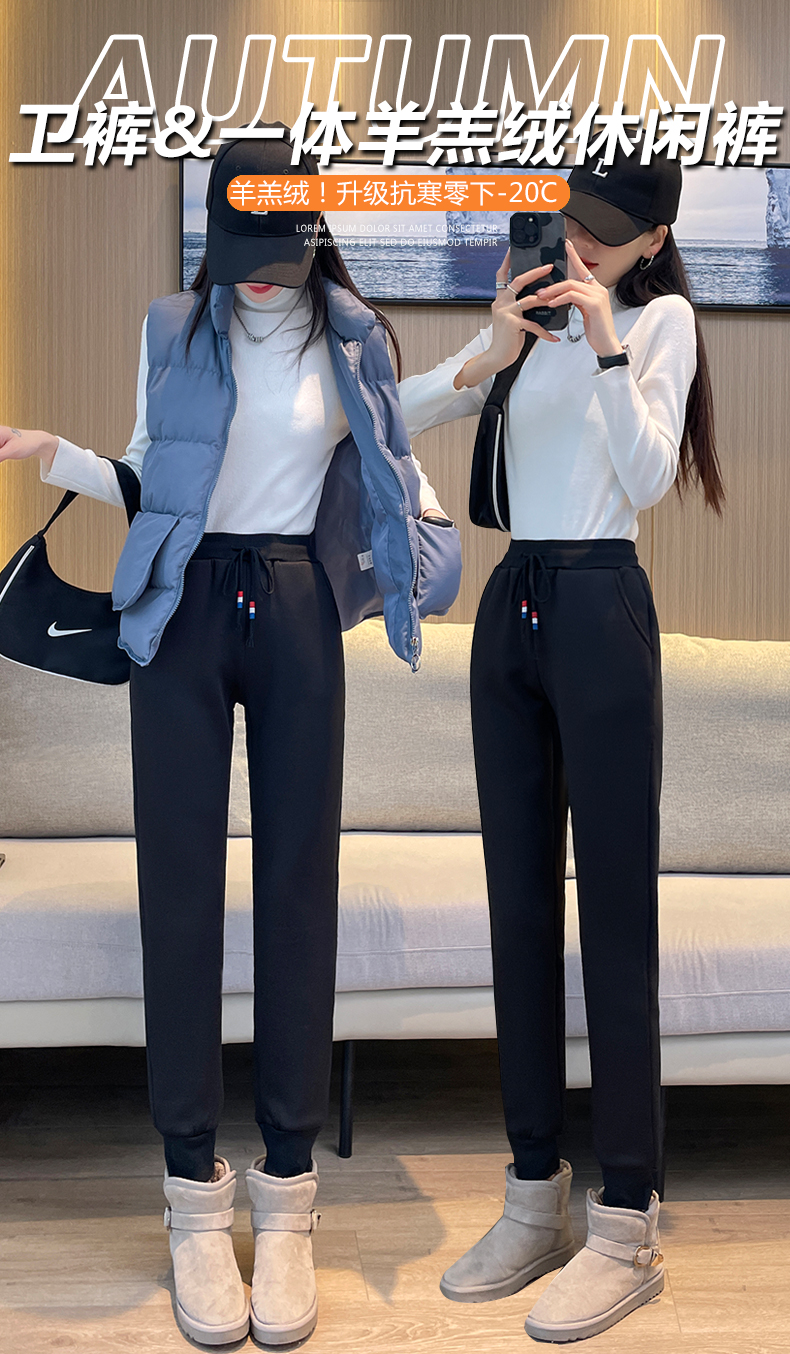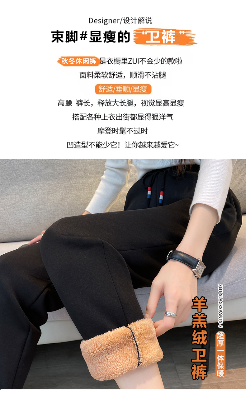 RM29473#加绒加厚羊羔绒毛卫裤女宽松棉裤冬季束脚灯笼裤休闲运动裤