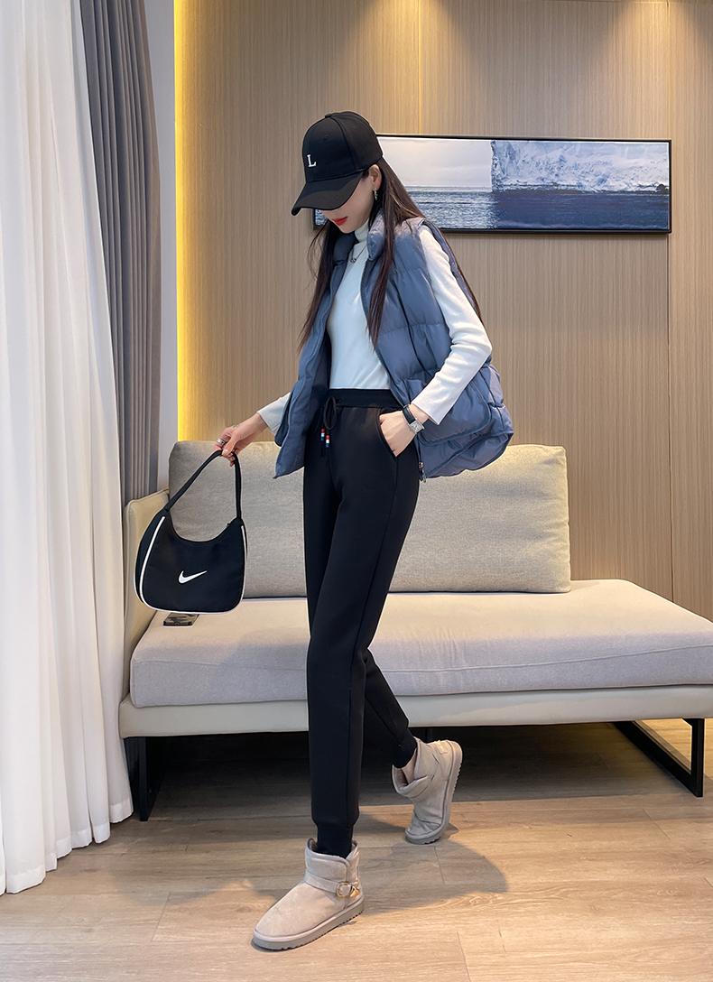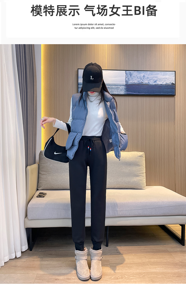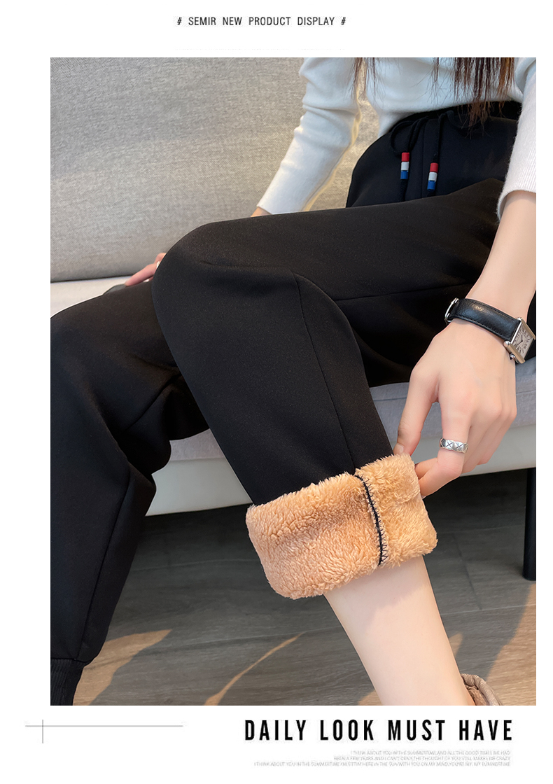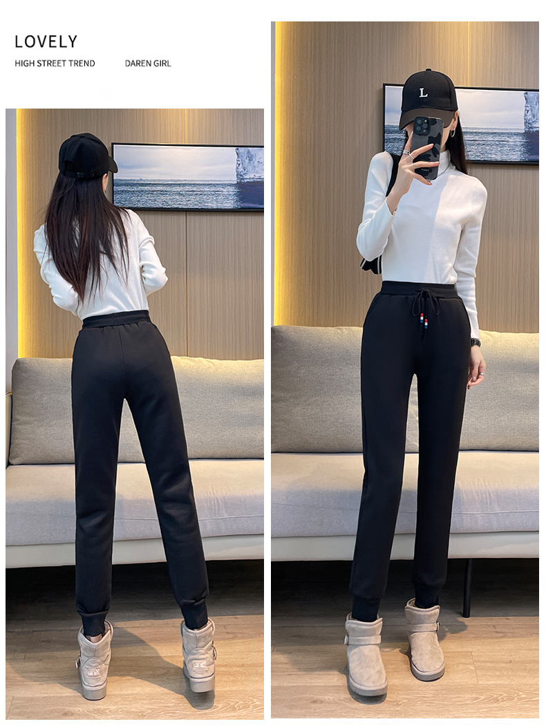 RM29473#加绒加厚羊羔绒毛卫裤女宽松棉裤冬季束脚灯笼裤休闲运动裤