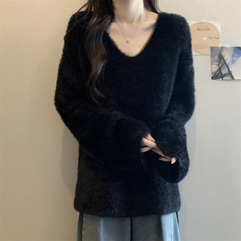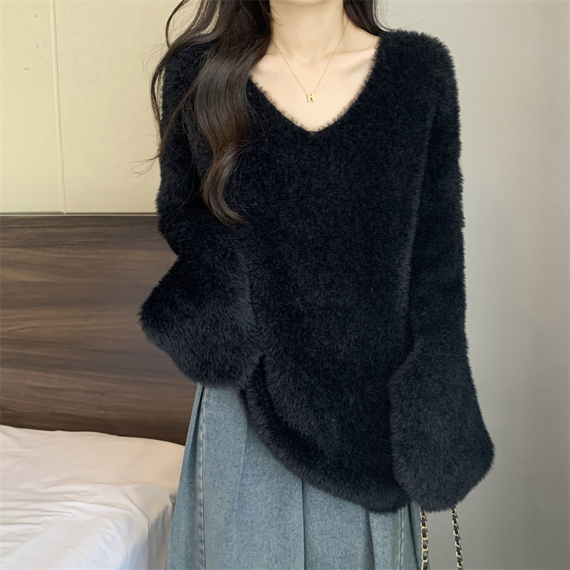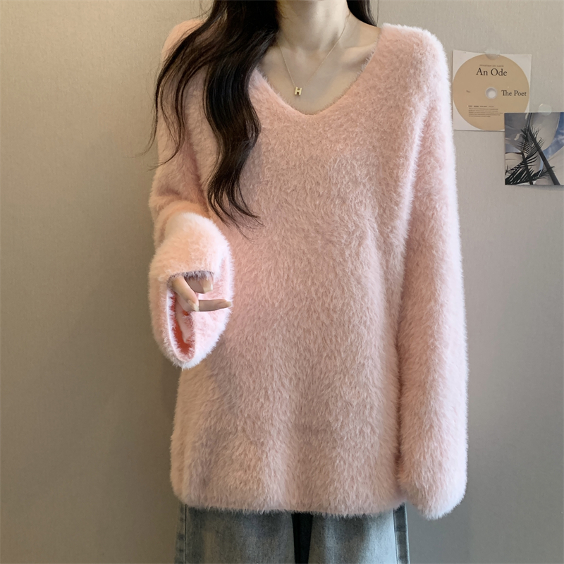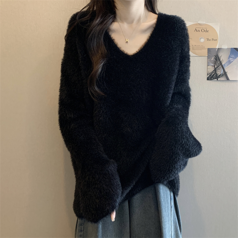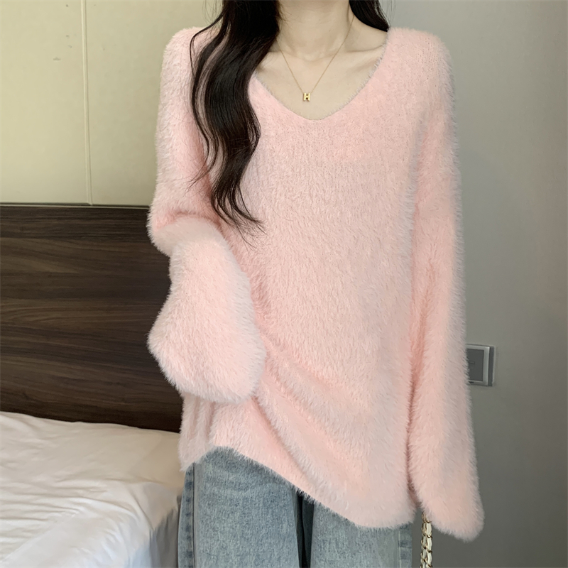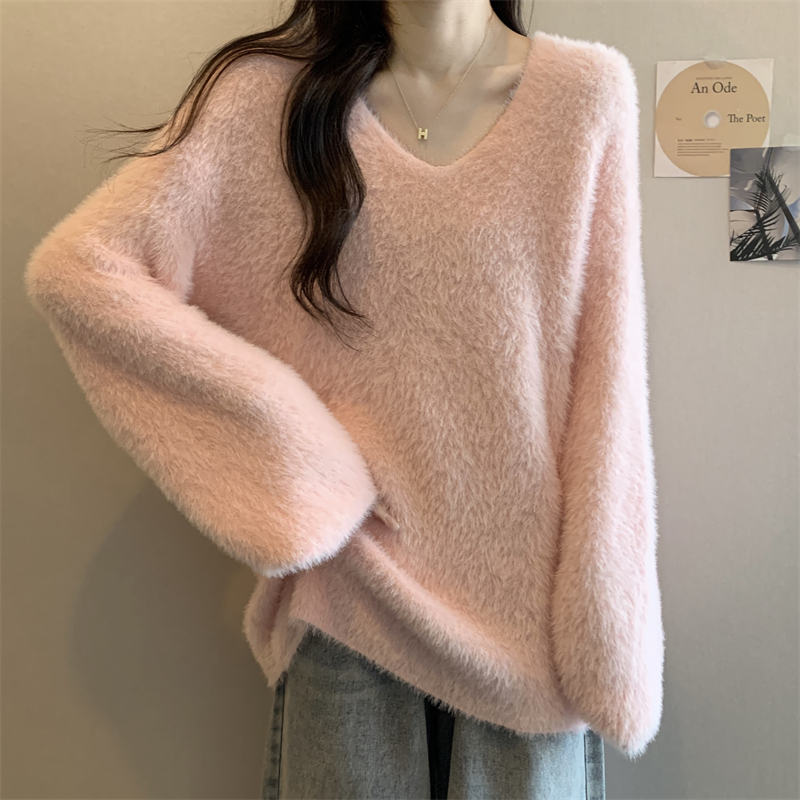 RM29532#新款温柔风软糯毛绒慵懒风V领仿貂毛毛衣上衣