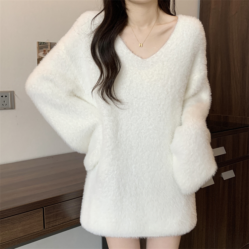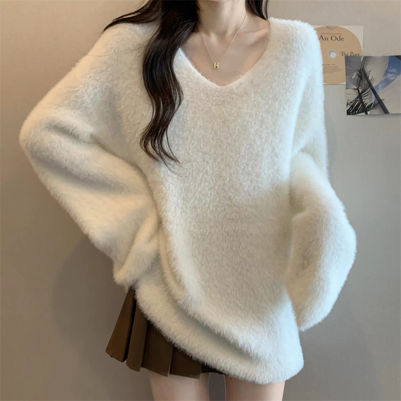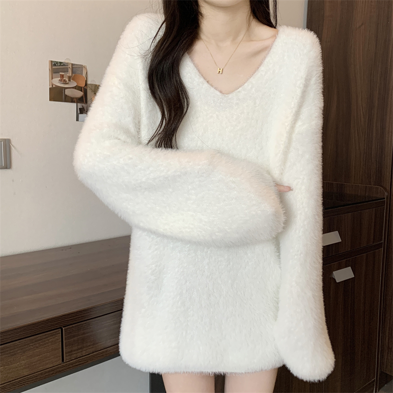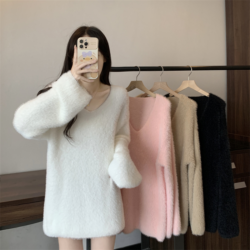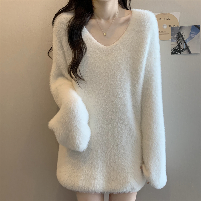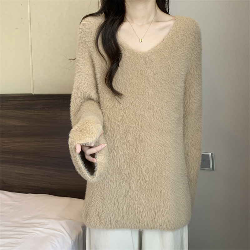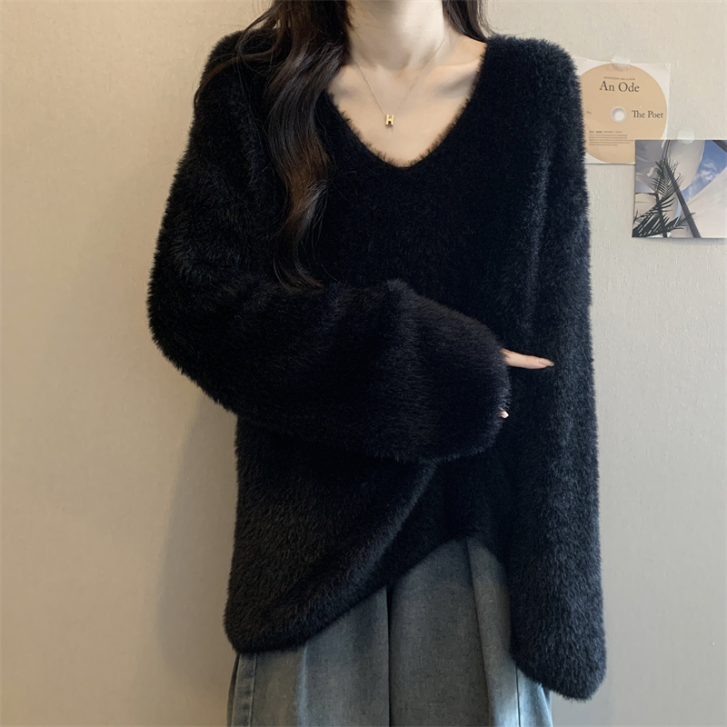 RM29532#新款温柔风软糯毛绒慵懒风V领仿貂毛毛衣上衣