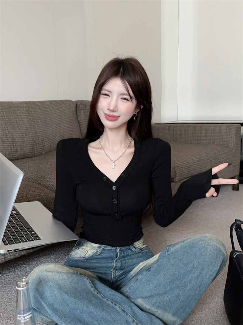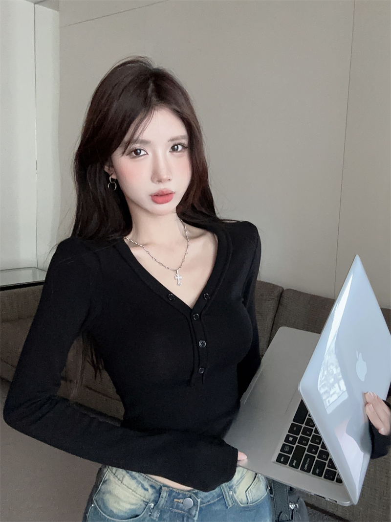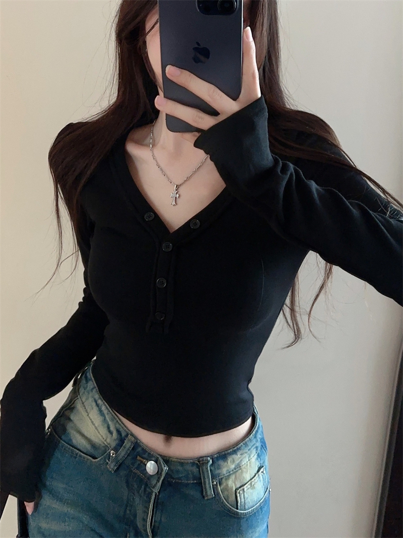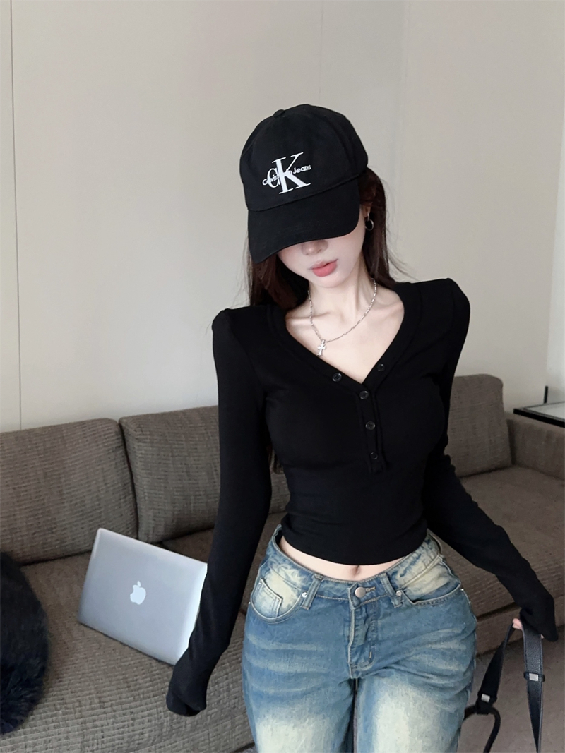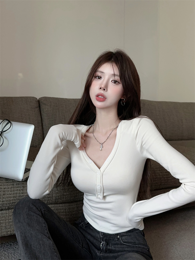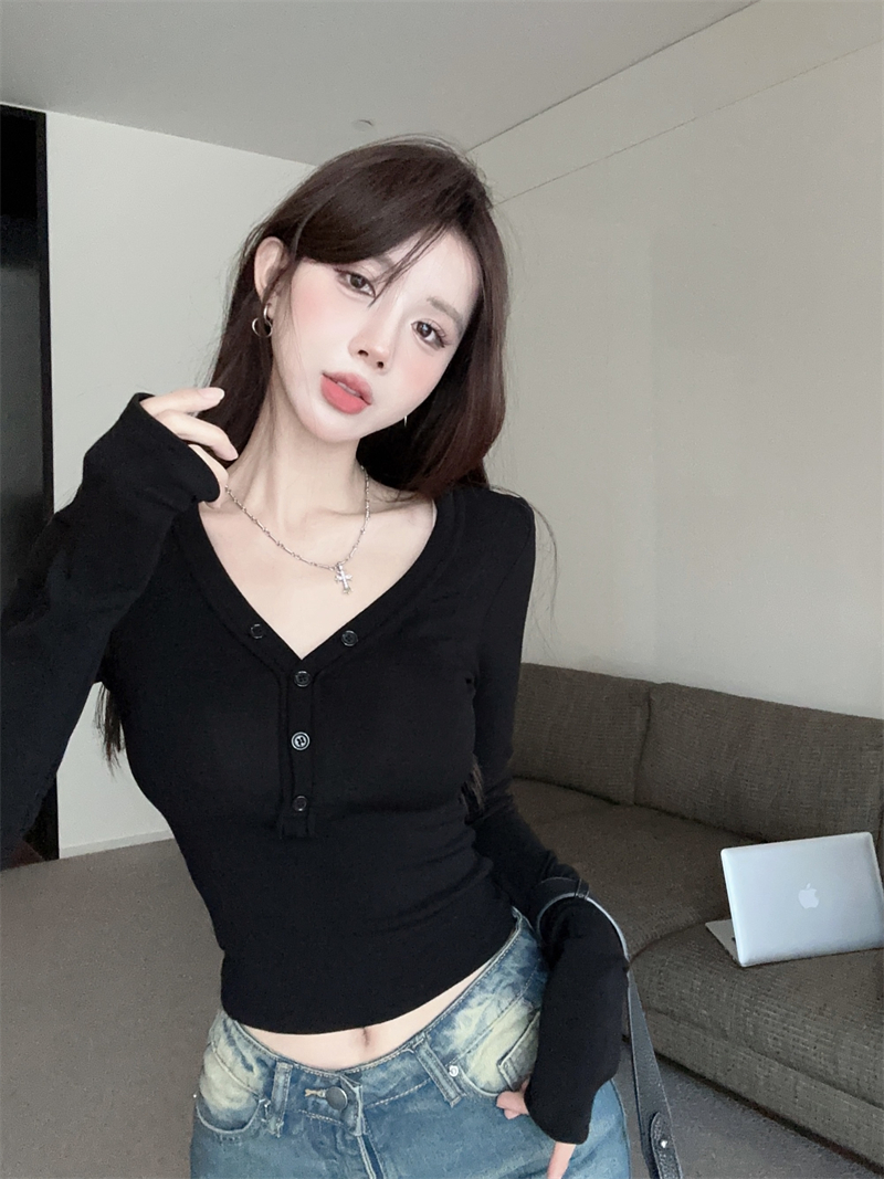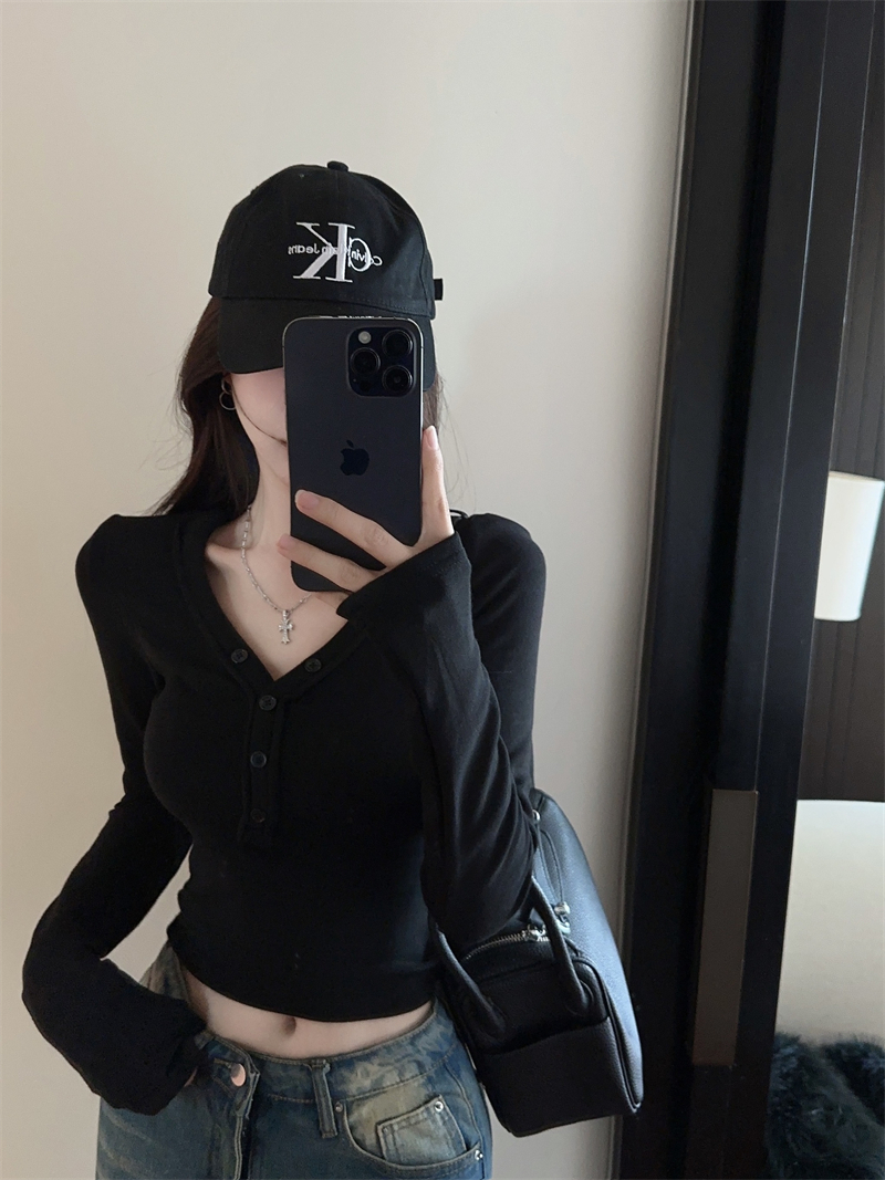 RM29543#美拉德磨毛正肩长袖T恤女秋冬修身短款内搭打底衫不规则上衣