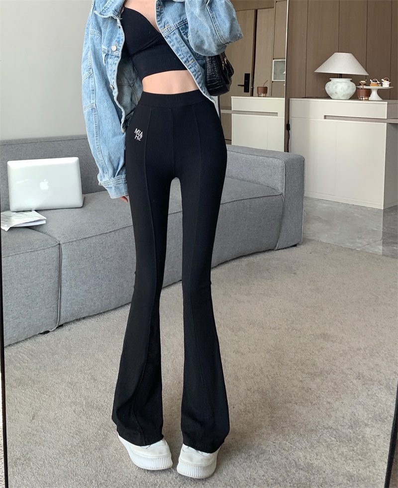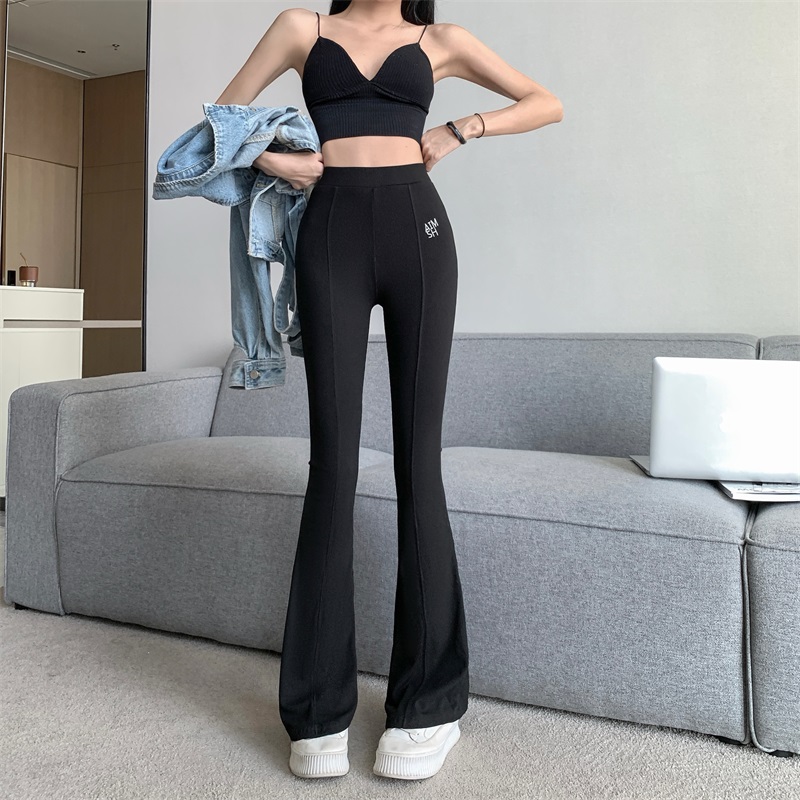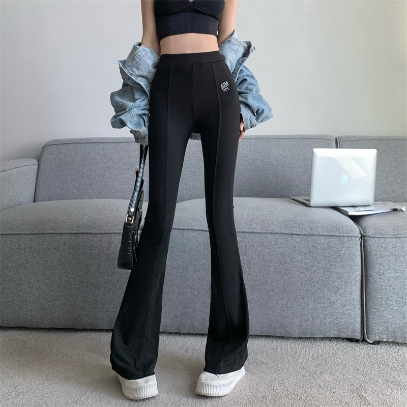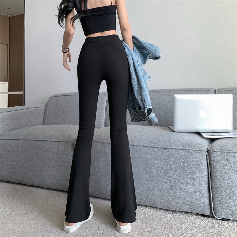 RM29555#高腰微喇叭裤女垂感阔腿裤弹力显瘦松紧休闲裤