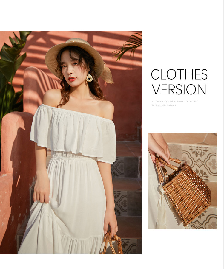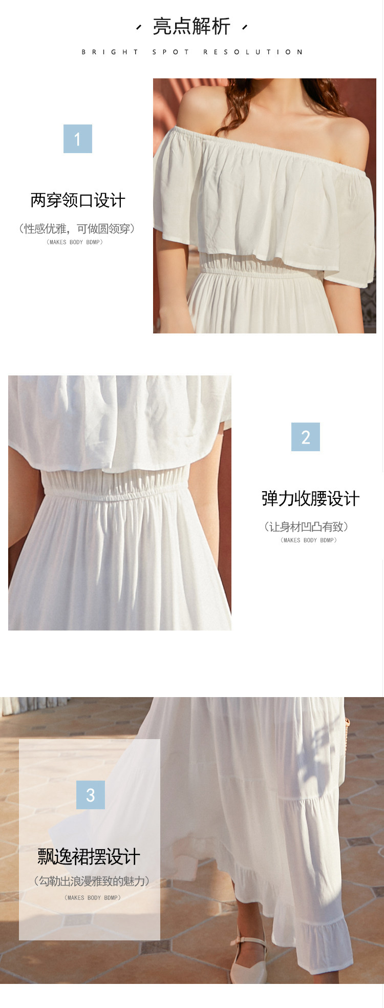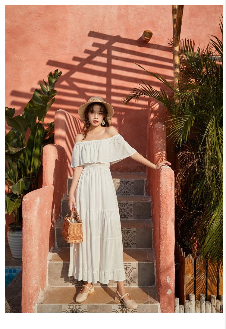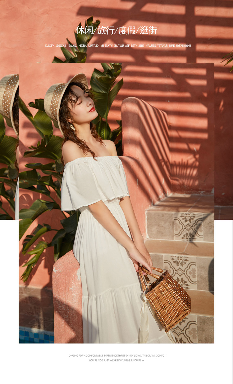 RY1995#沙滩裙一字肩二穿领口性感显瘦露背长款海边度假连衣裙超仙