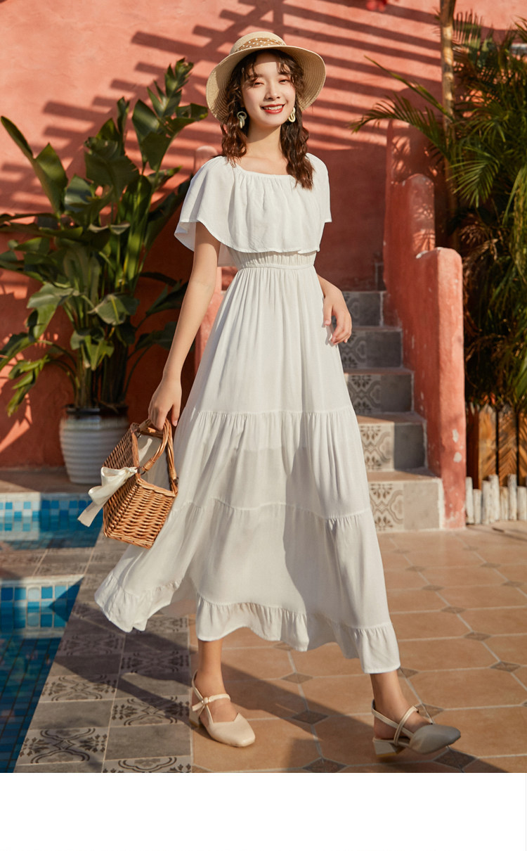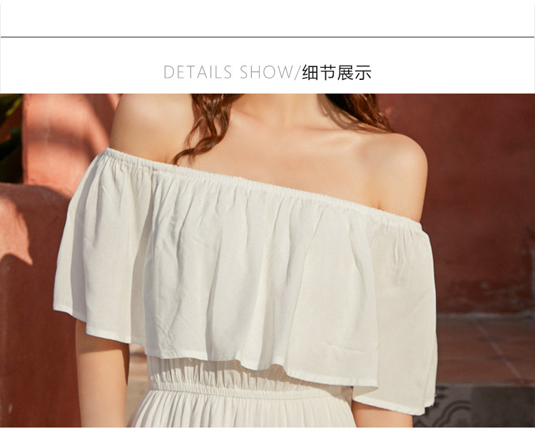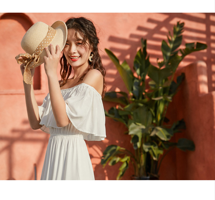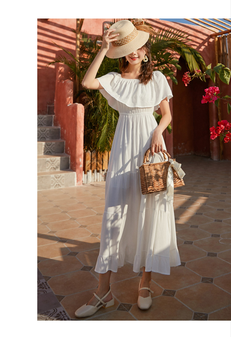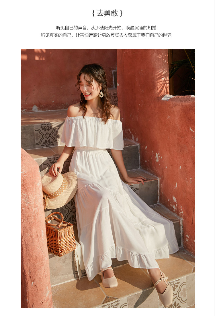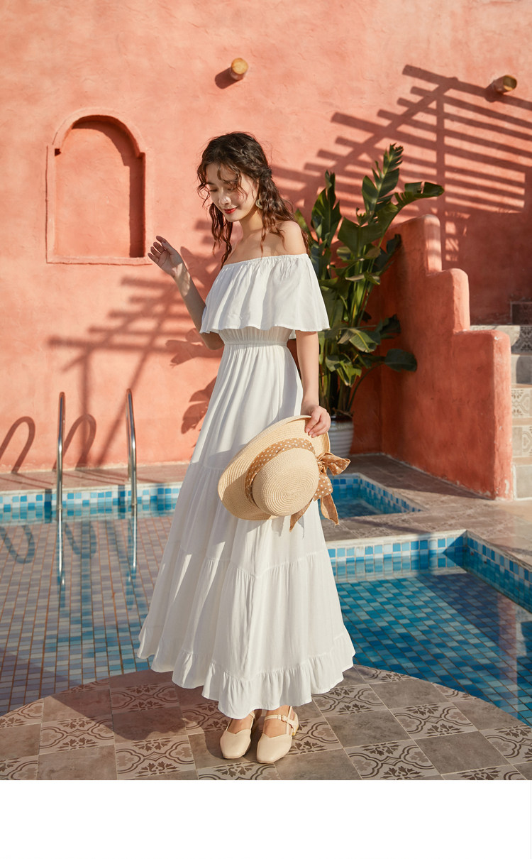 RY1995#沙滩裙一字肩二穿领口性感显瘦露背长款海边度假连衣裙超仙