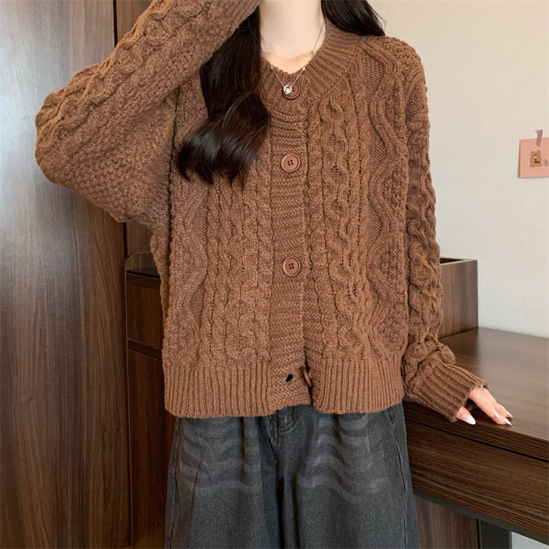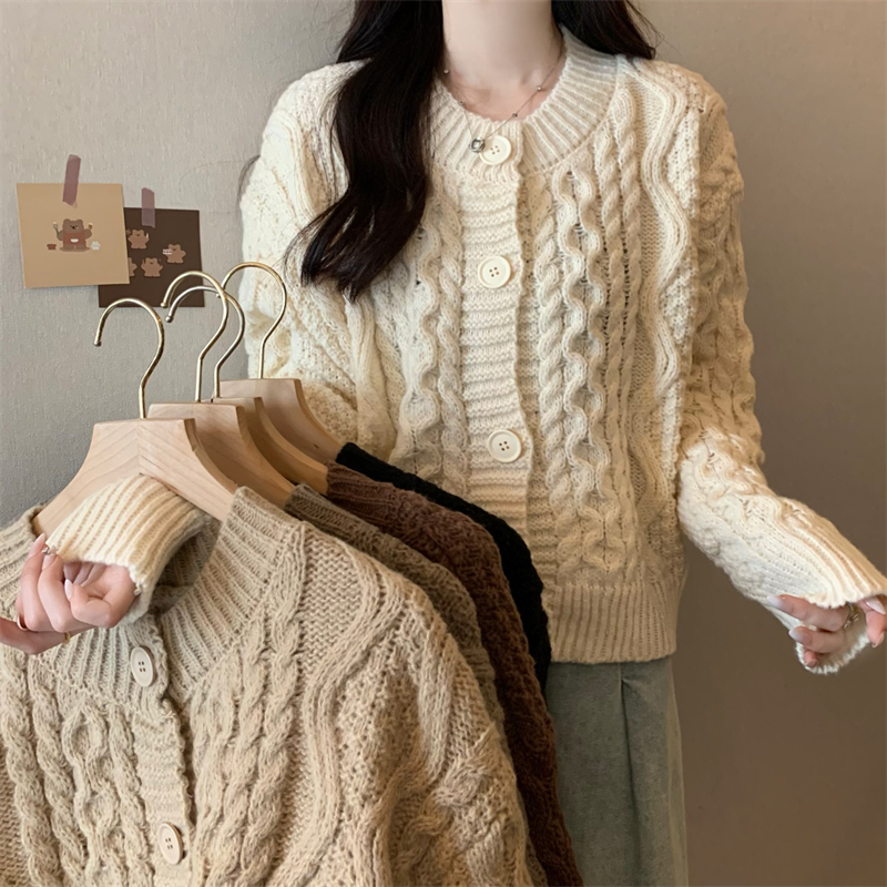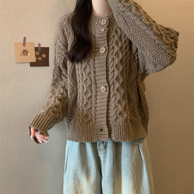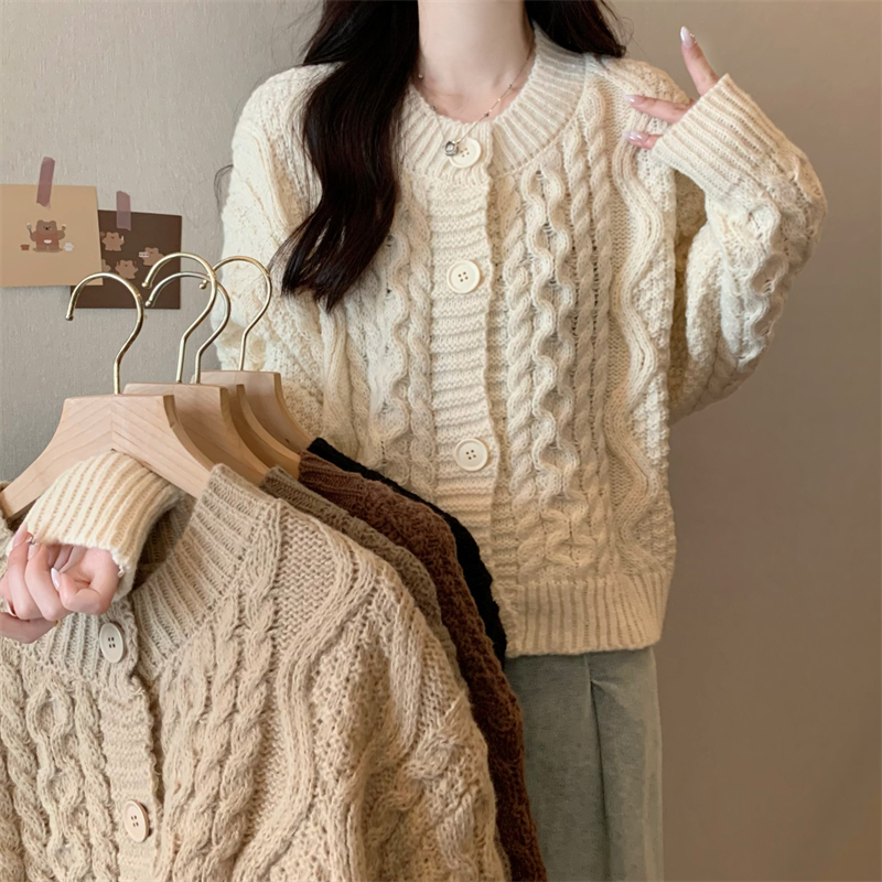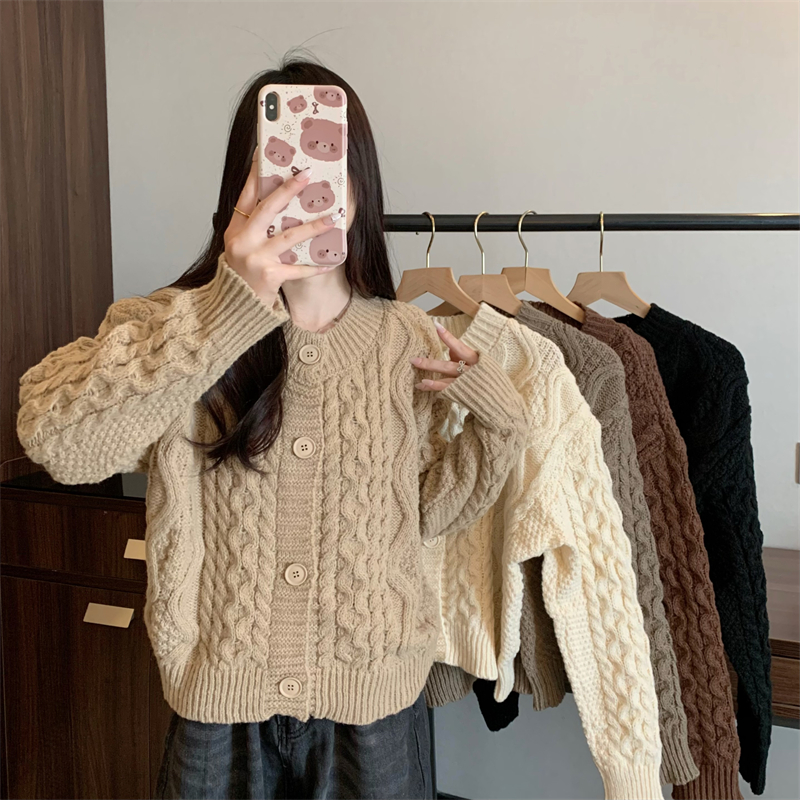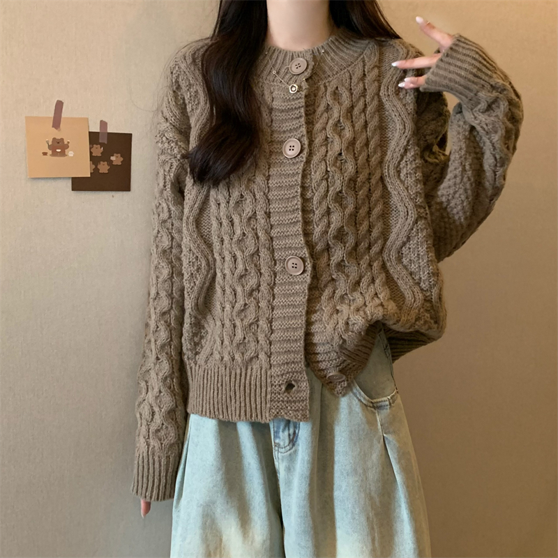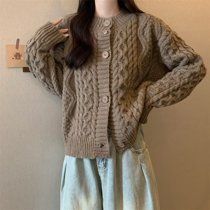 RM29620#新款韩版休闲百搭提花装饰开衫针加厚毛衣女上衣