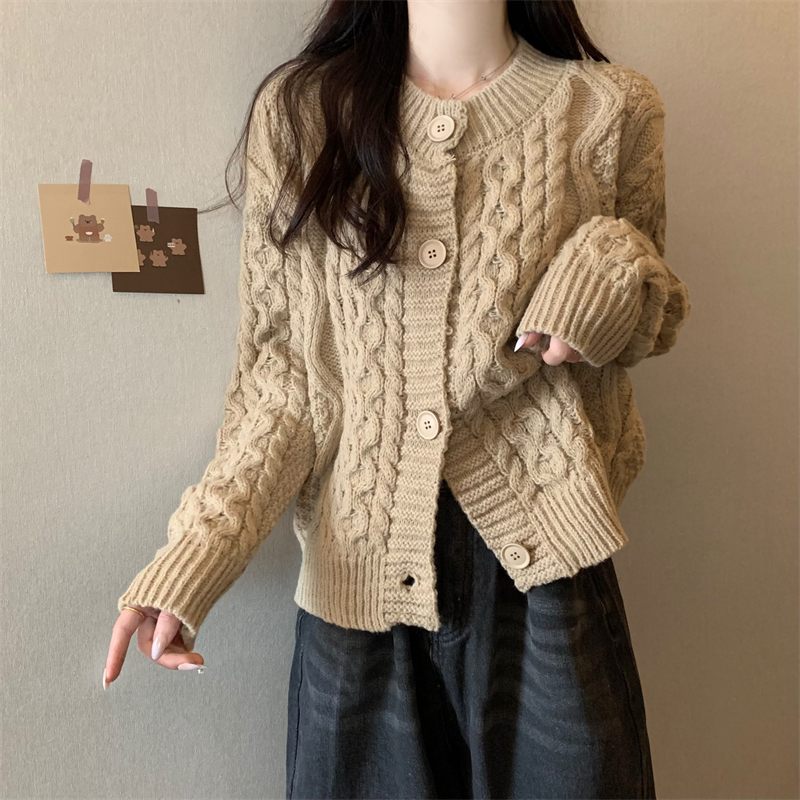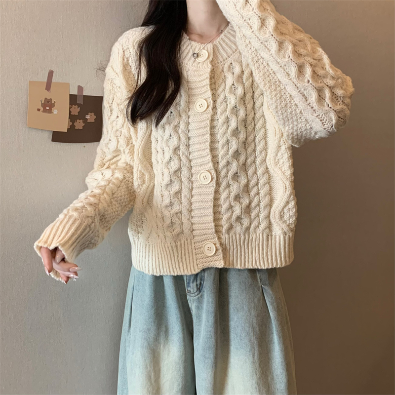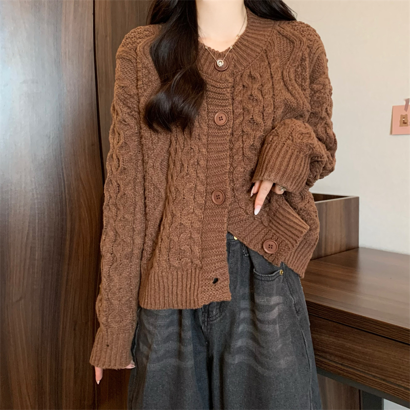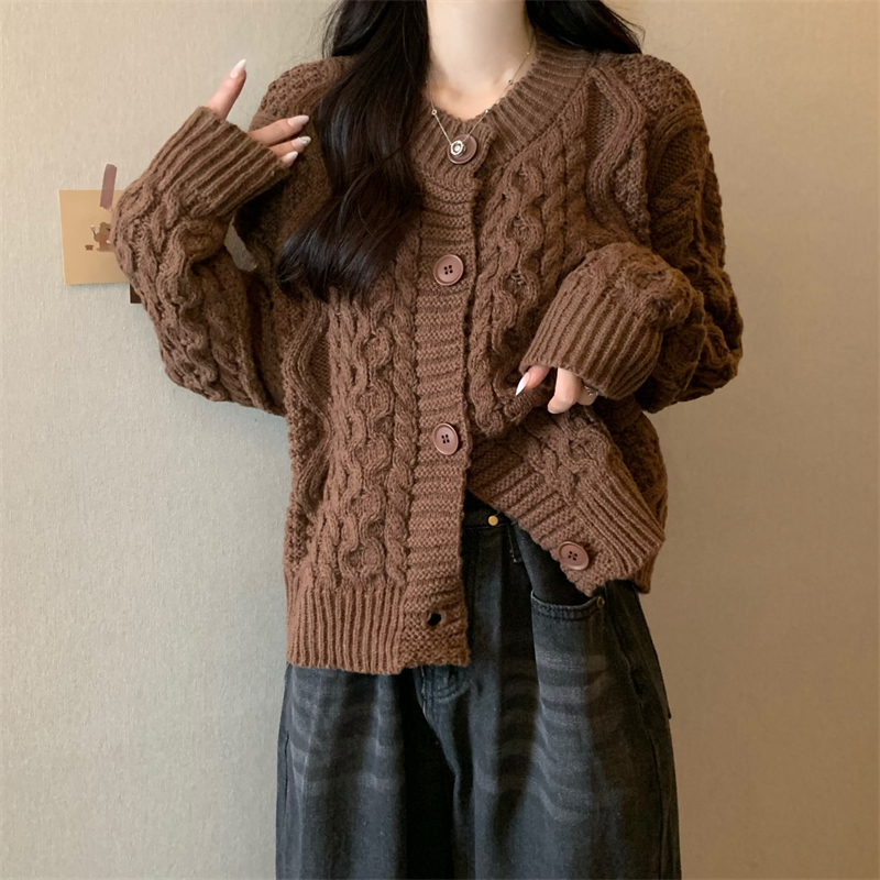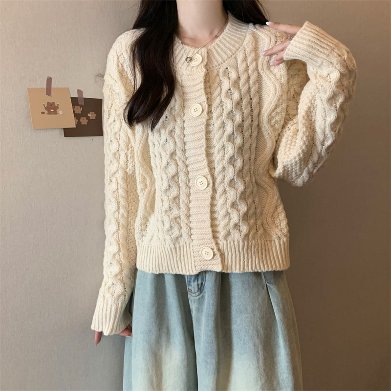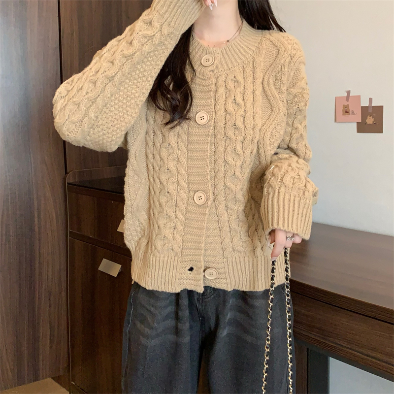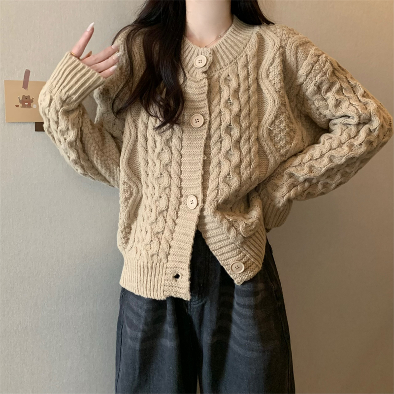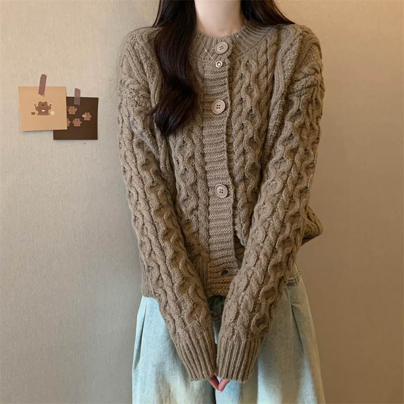 RM29620#新款韩版休闲百搭提花装饰开衫针加厚毛衣女上衣