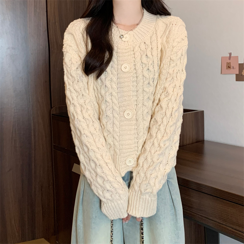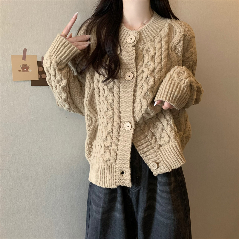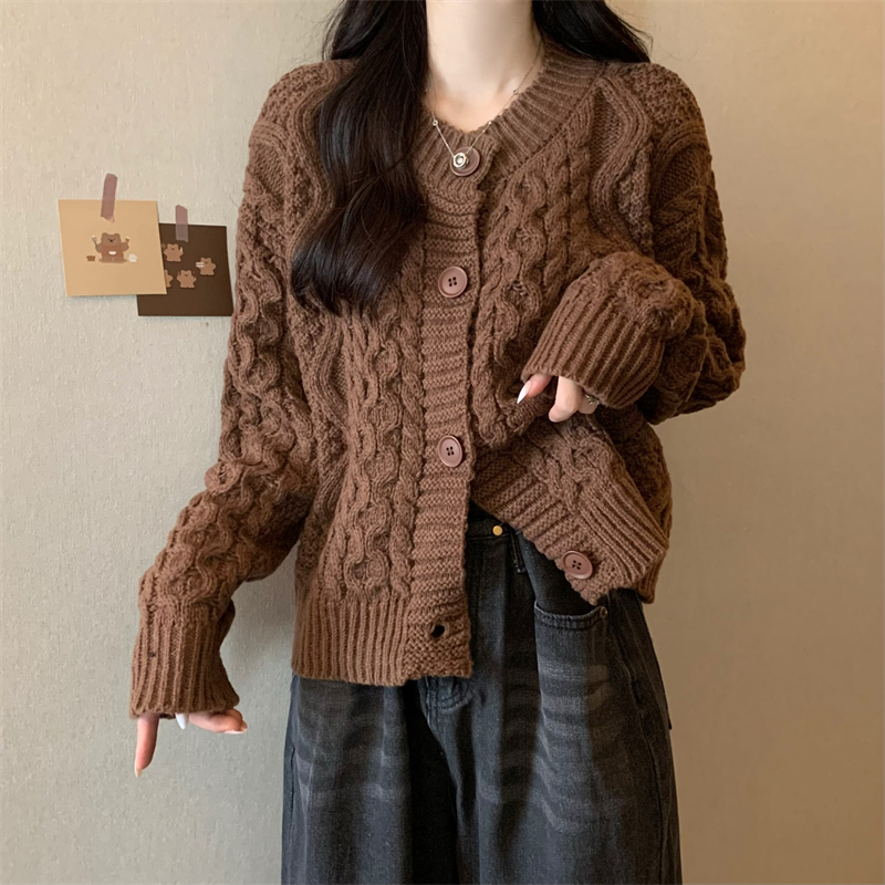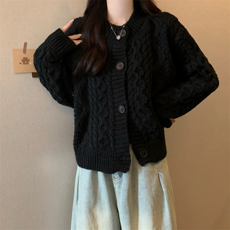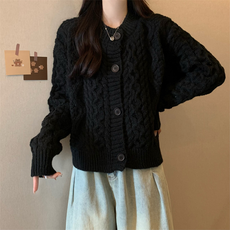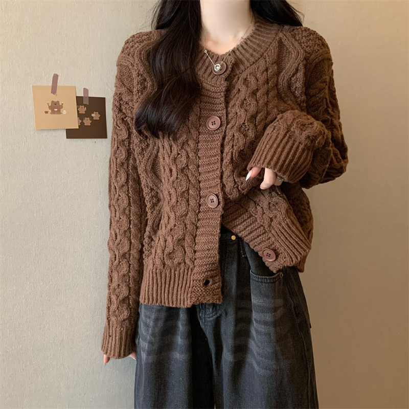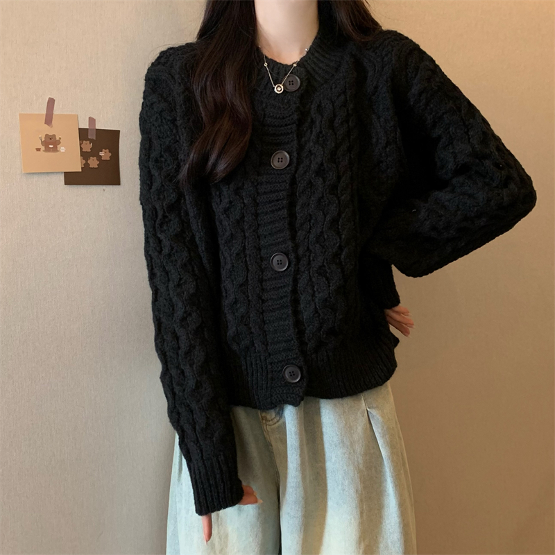 RM29620#新款韩版休闲百搭提花装饰开衫针加厚毛衣女上衣