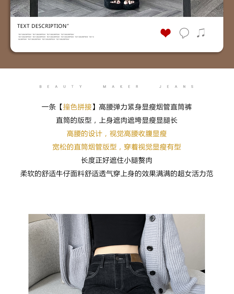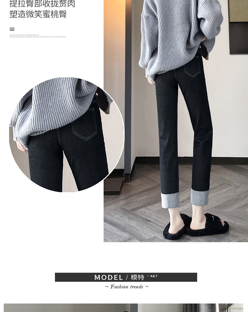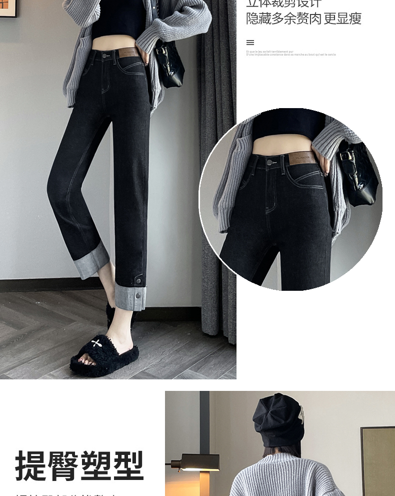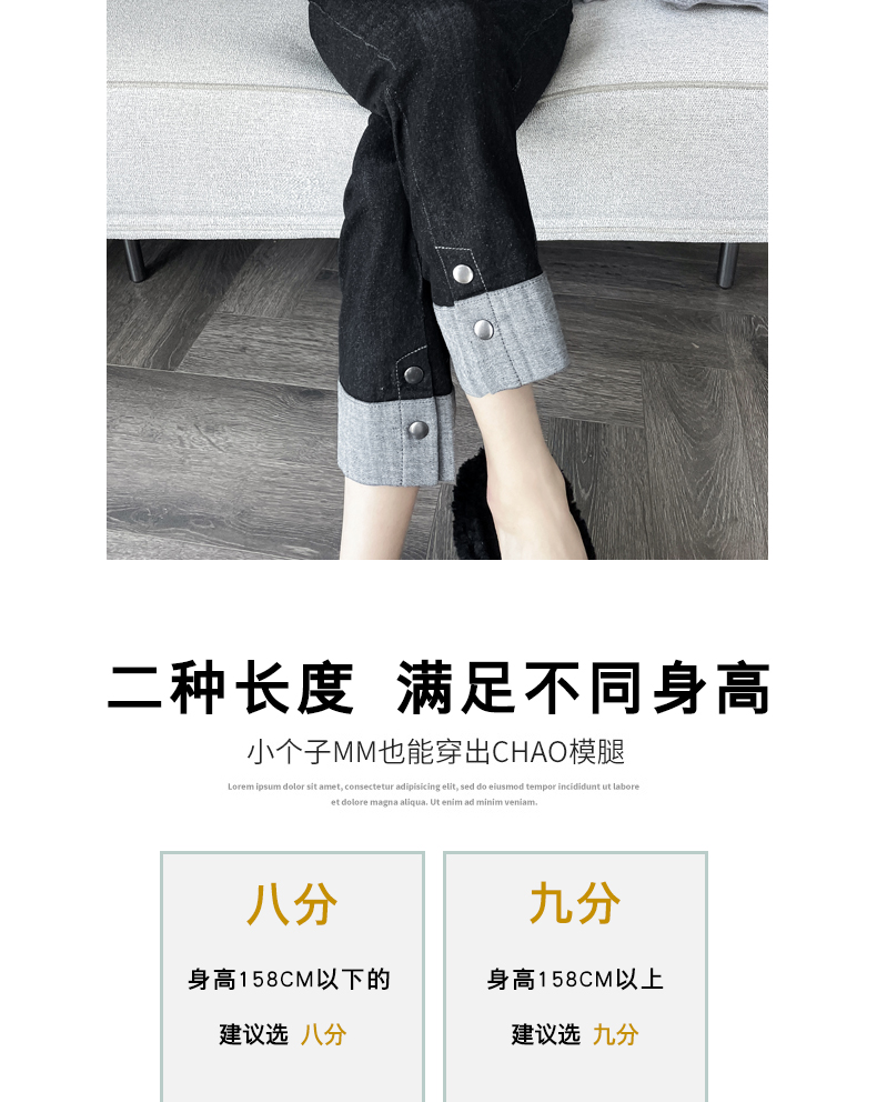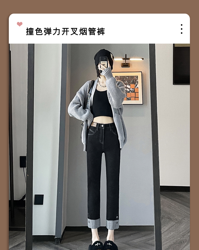 RM29633#弹力烟管裤女2023新款春秋冬装窄版高腰显瘦小个子九分直筒裤