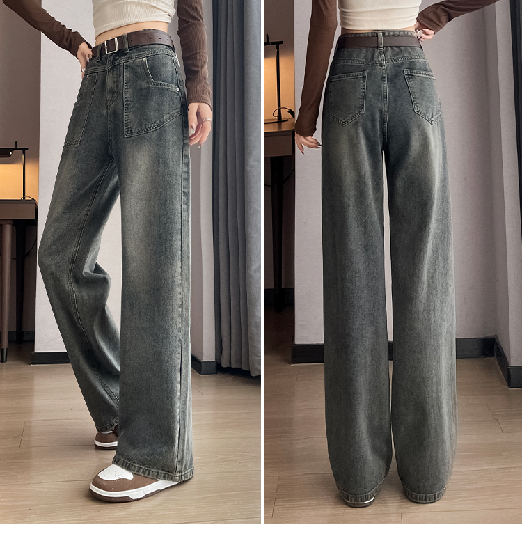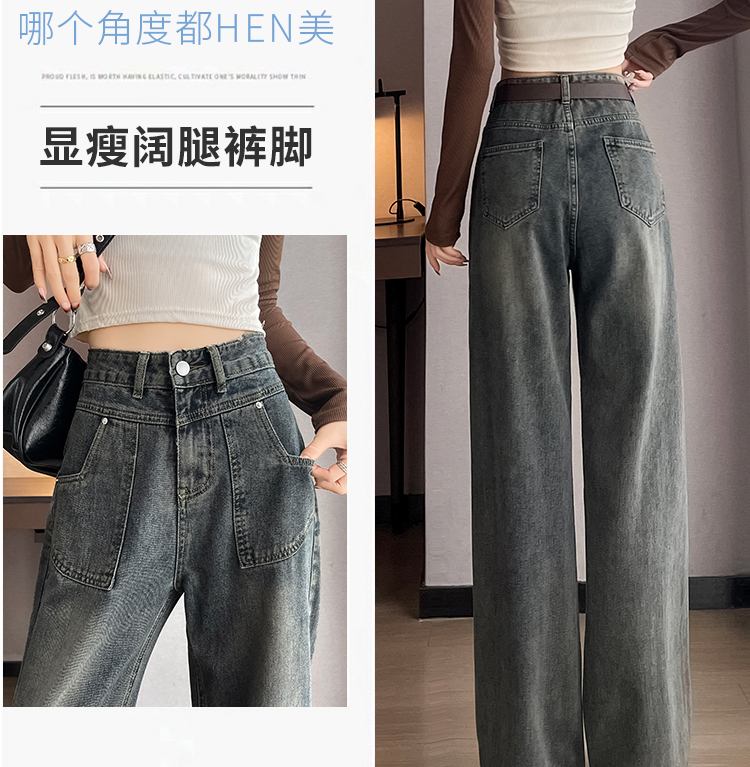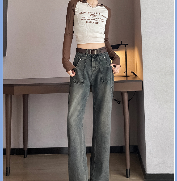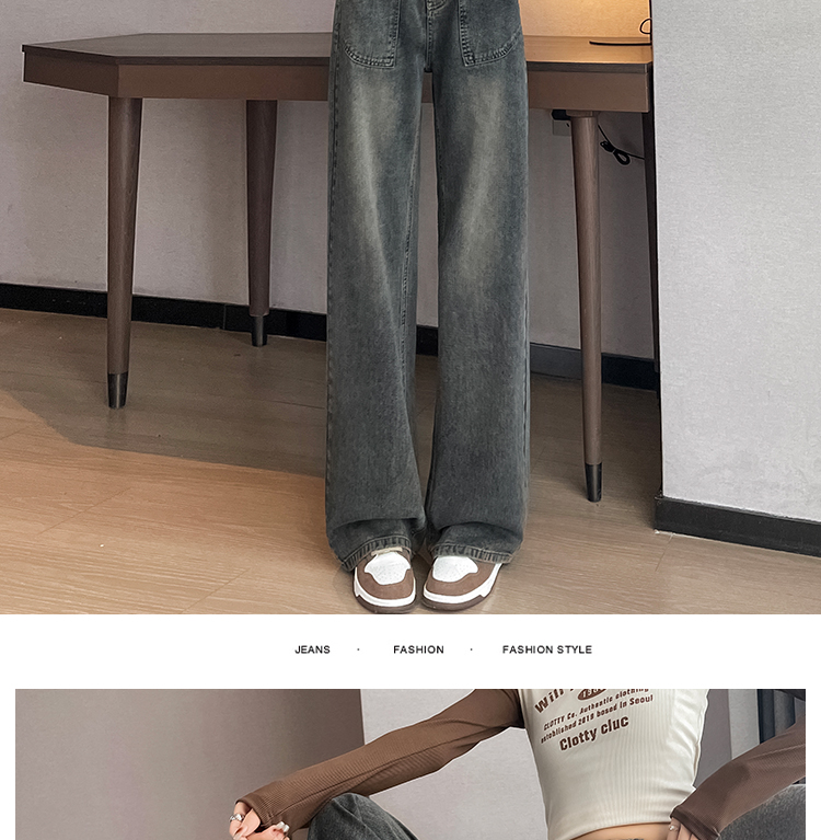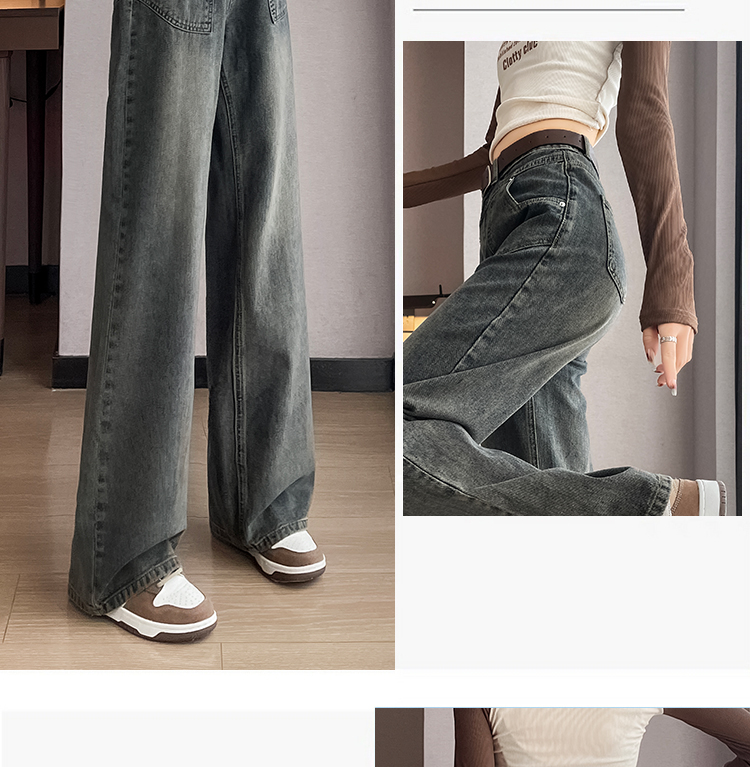 RM29635#水泥灰直筒牛仔裤女春秋冬季2023新款美式复古宽松高腰阔腿裤