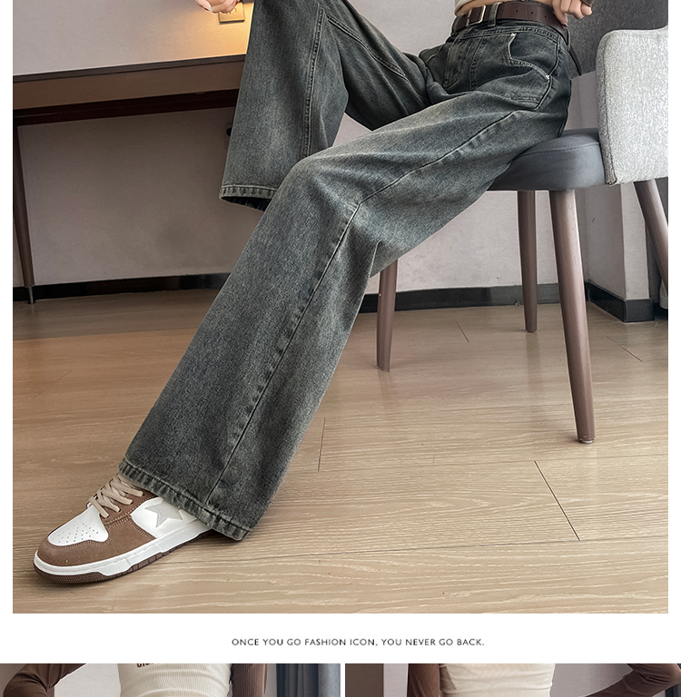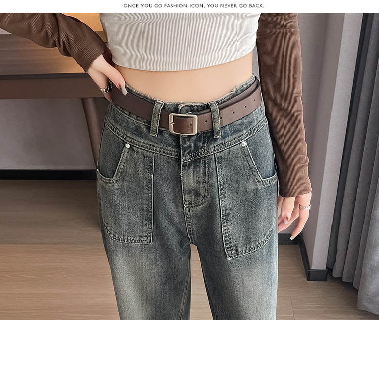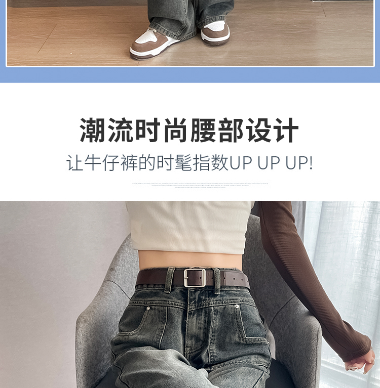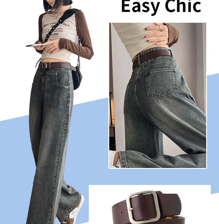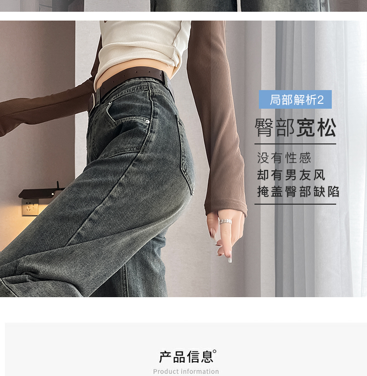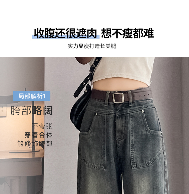 RM29635#水泥灰直筒牛仔裤女春秋冬季2023新款美式复古宽松高腰阔腿裤