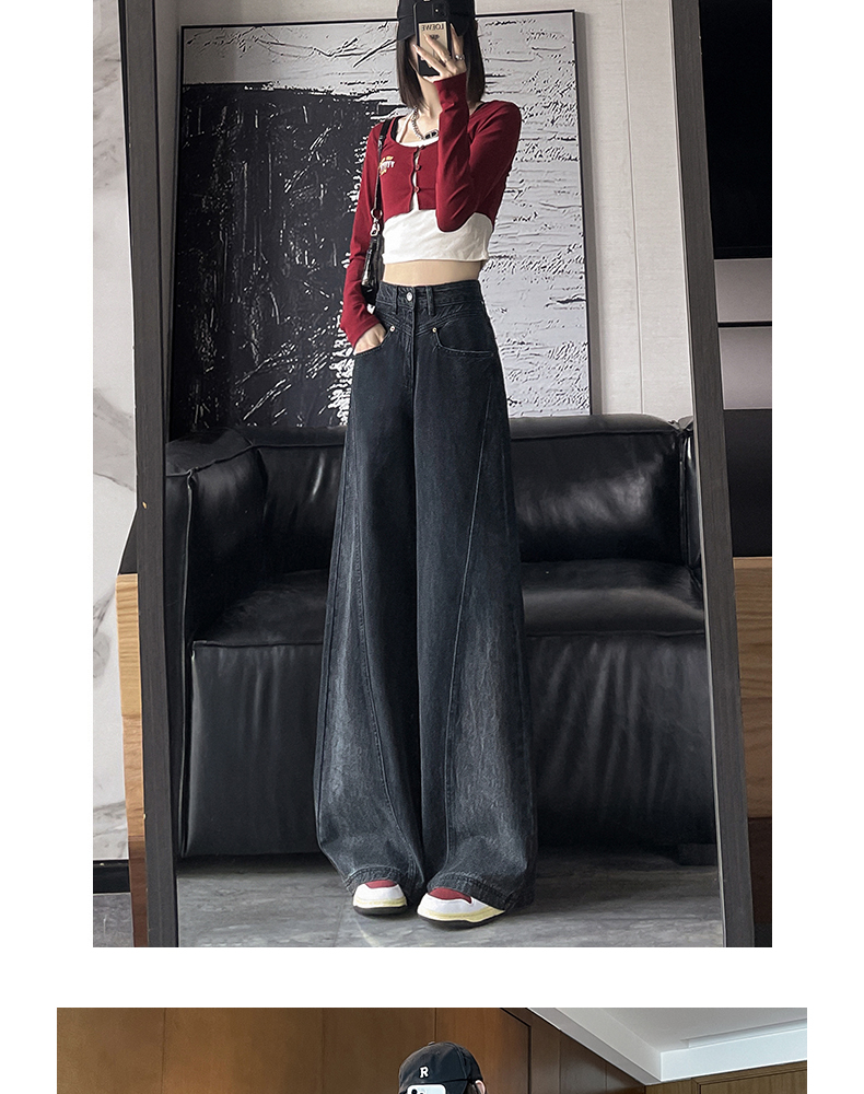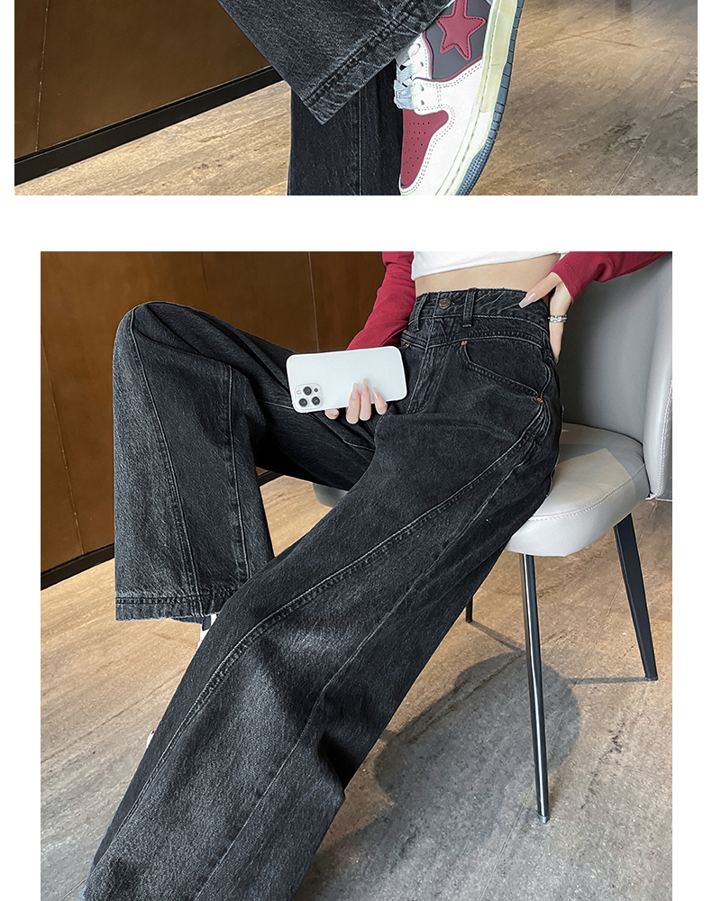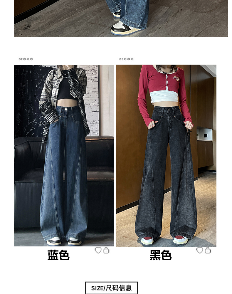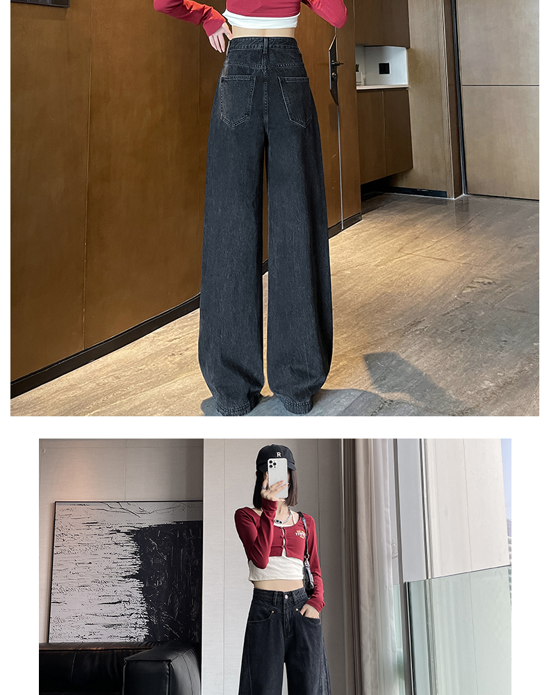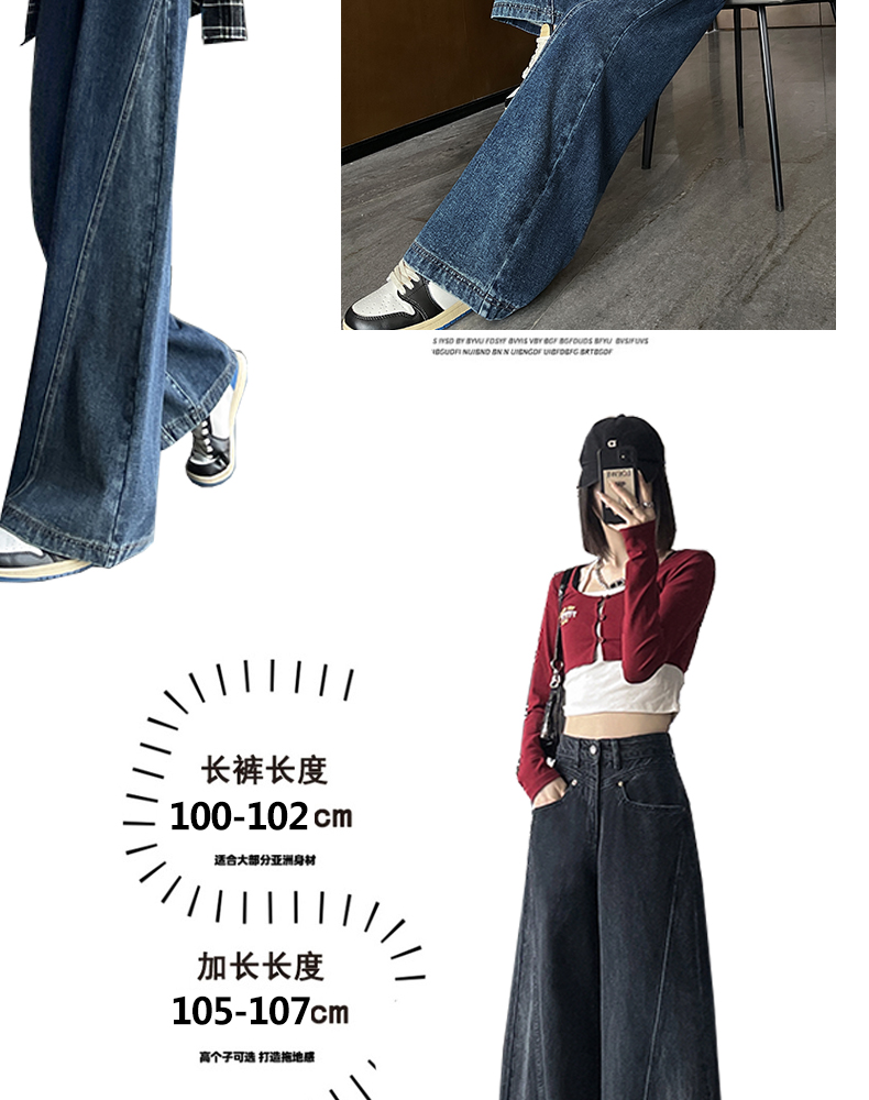 RM29636#港风复古高腰大阔腿牛仔裤女2023新款宽松显瘦设计感拖地裤子