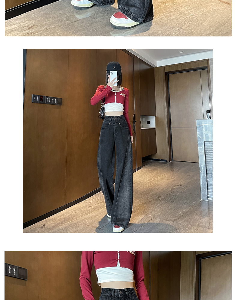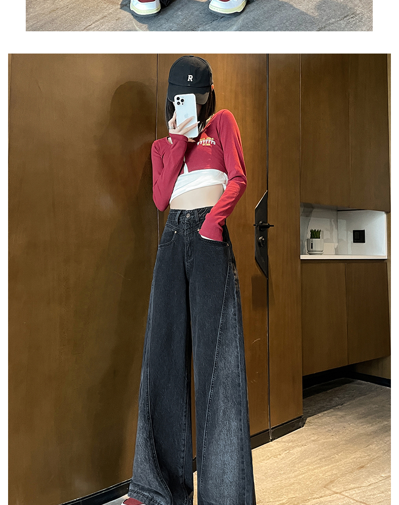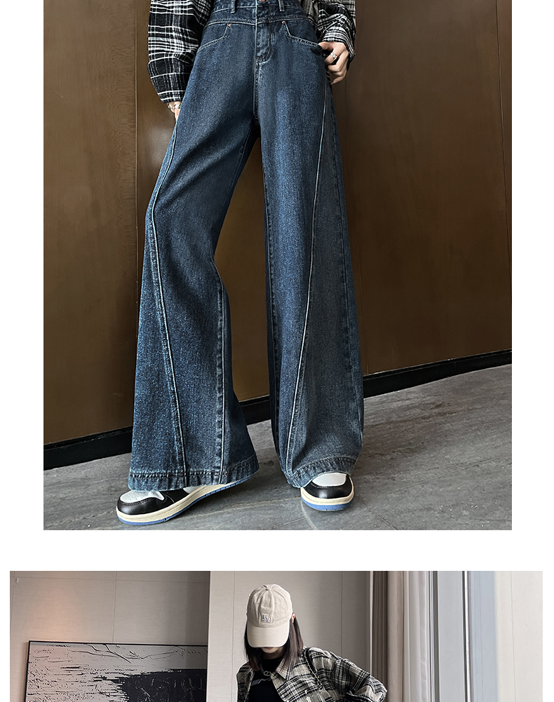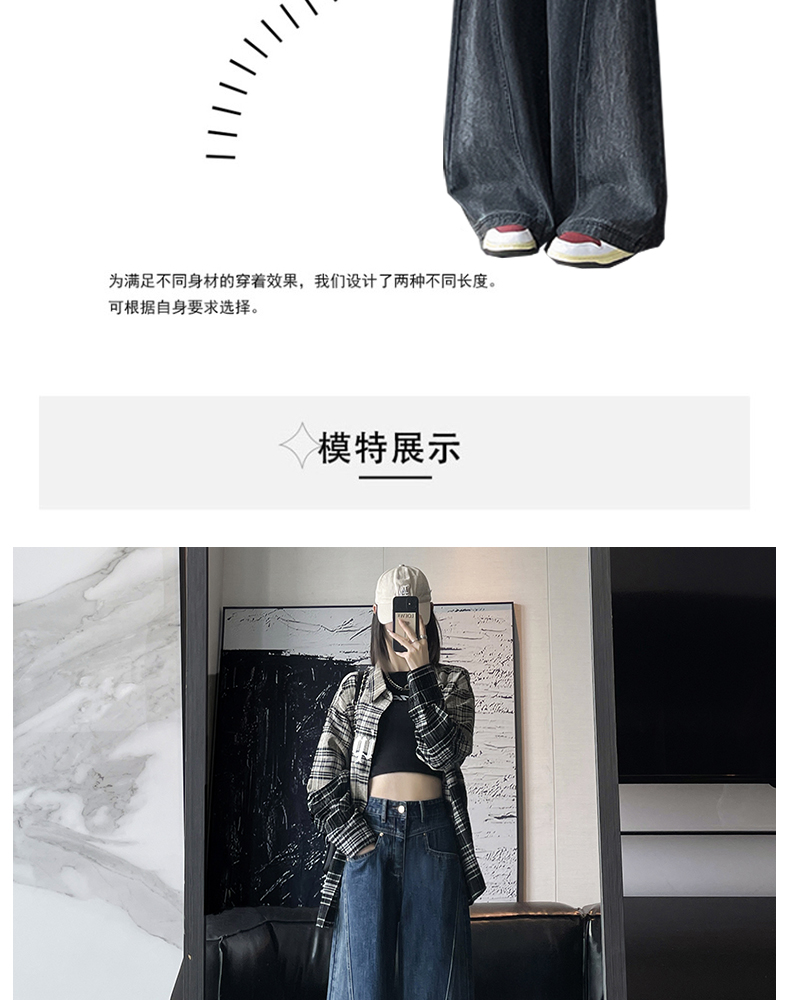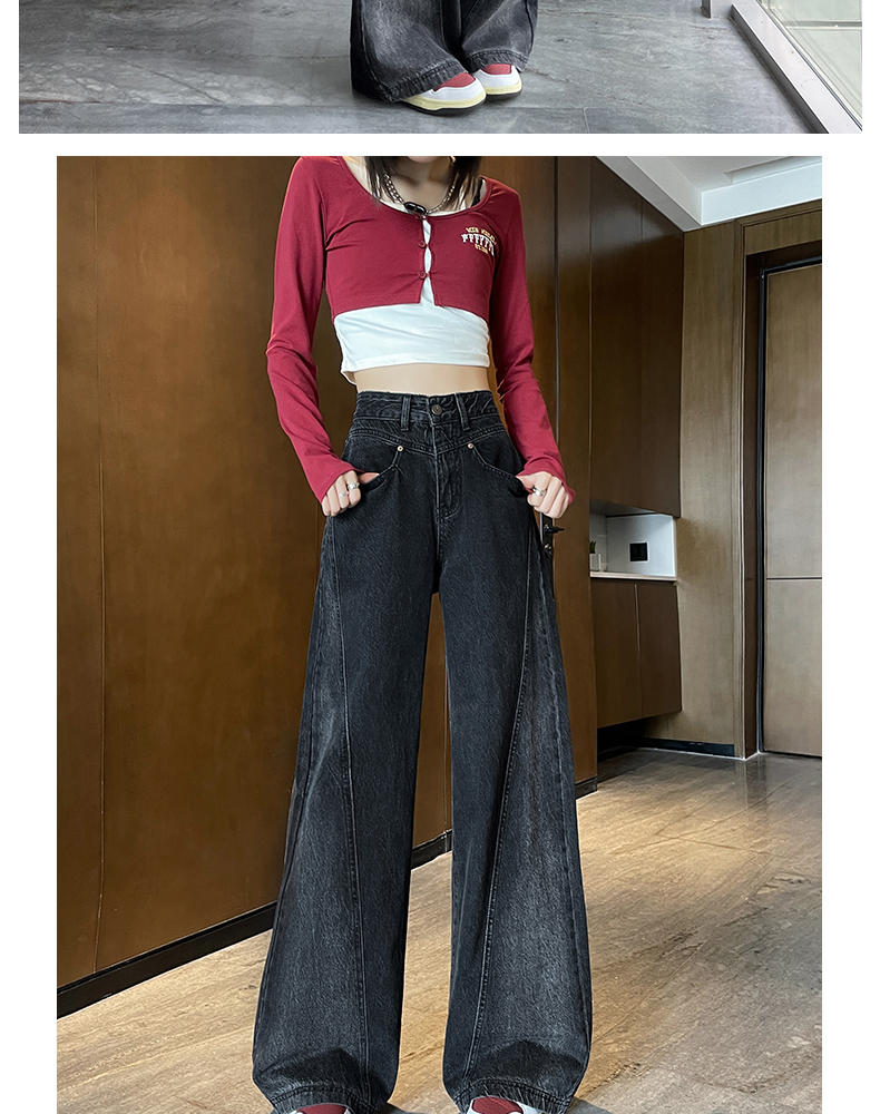 RM29636#港风复古高腰大阔腿牛仔裤女2023新款宽松显瘦设计感拖地裤子