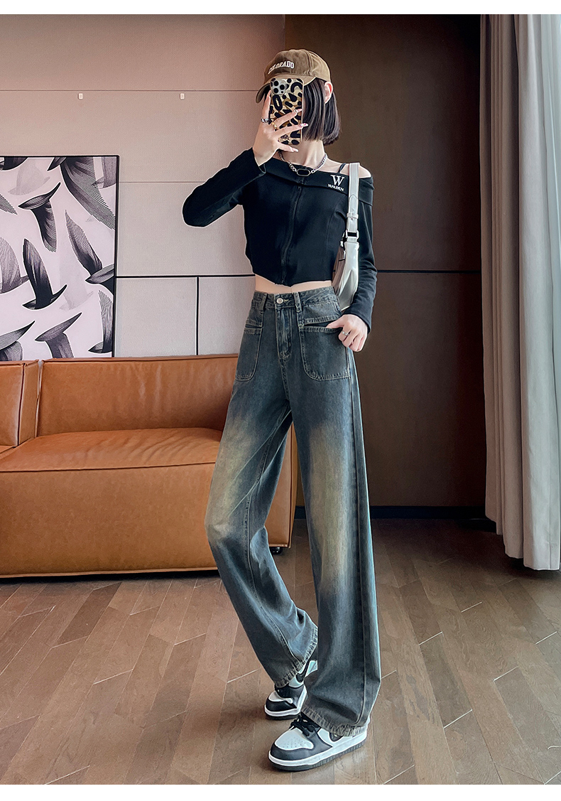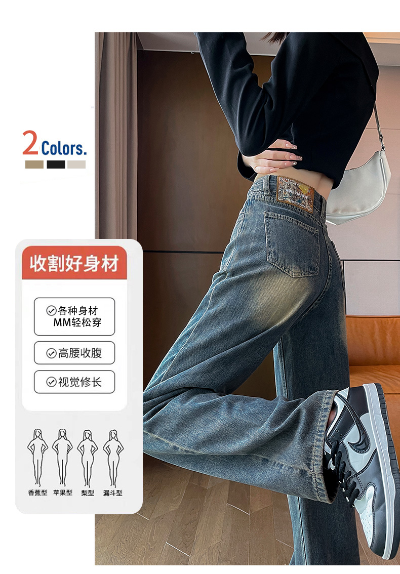 RM29637#复古阔腿牛仔裤女2023新款秋冬高腰宽松直筒垂感窄版拖地裤子