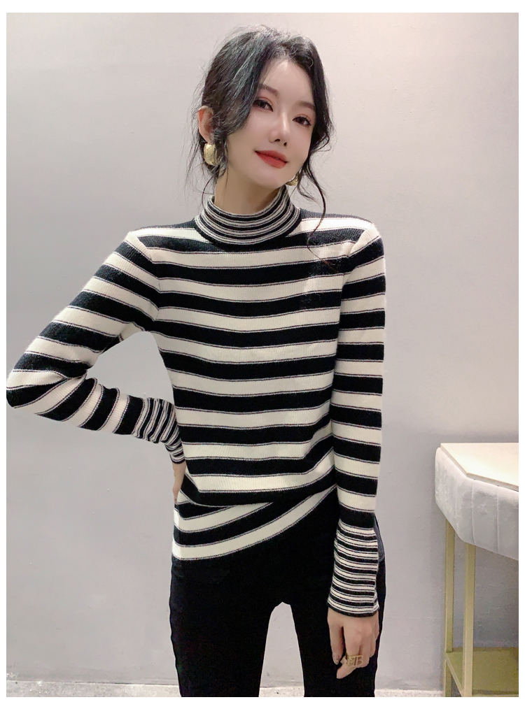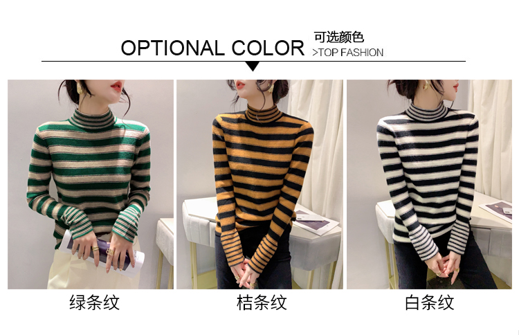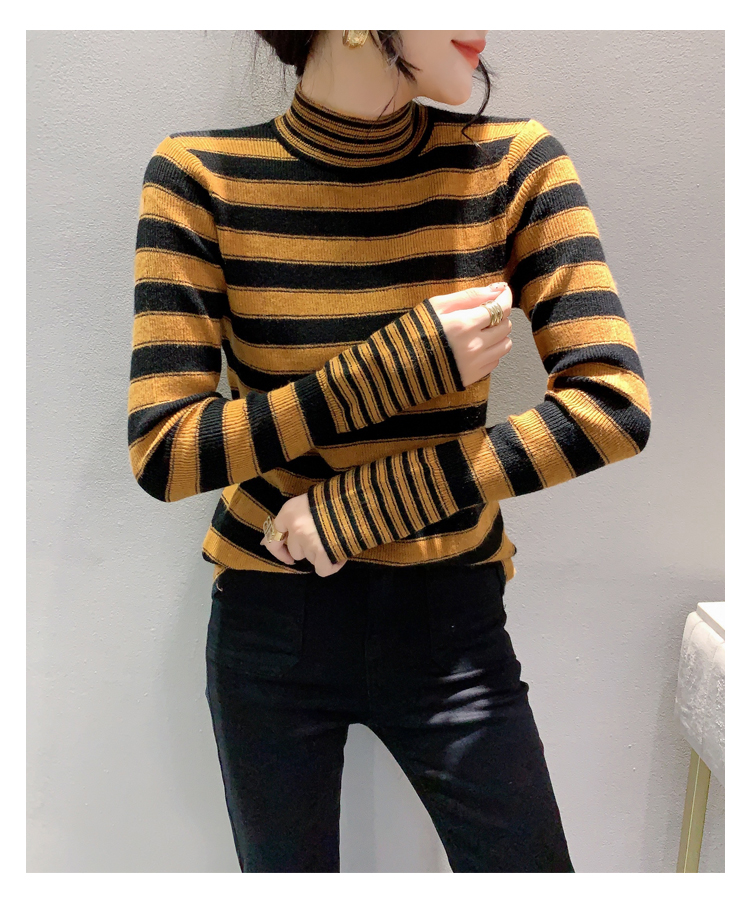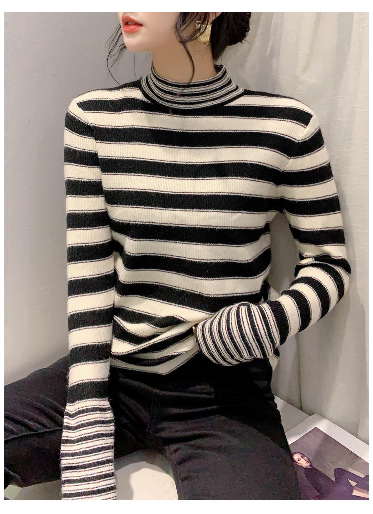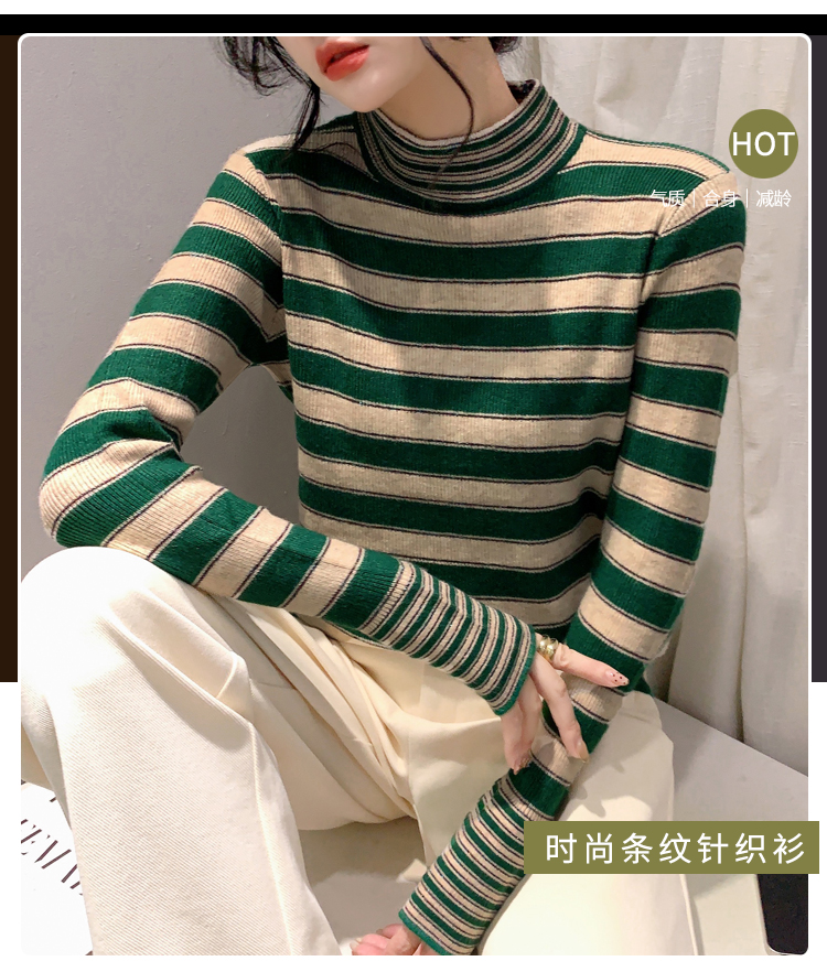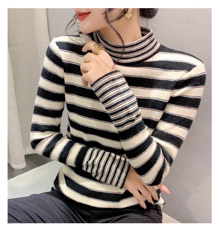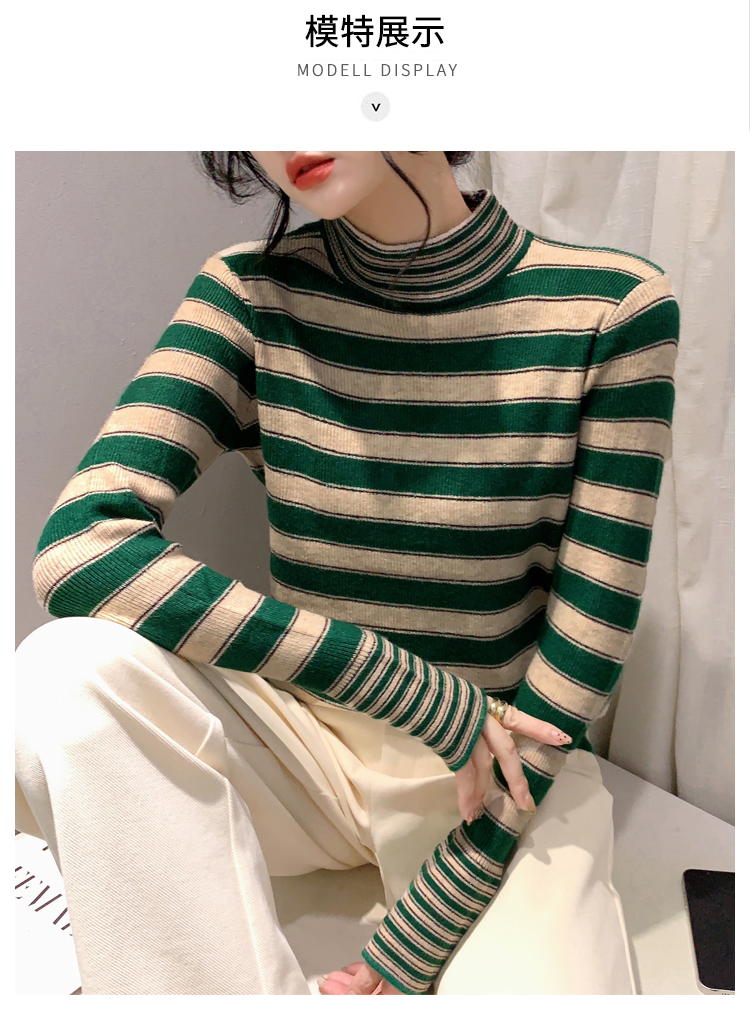 RM29666#新款百搭条纹针织衫半高领修身打底衫女长袖毛衣