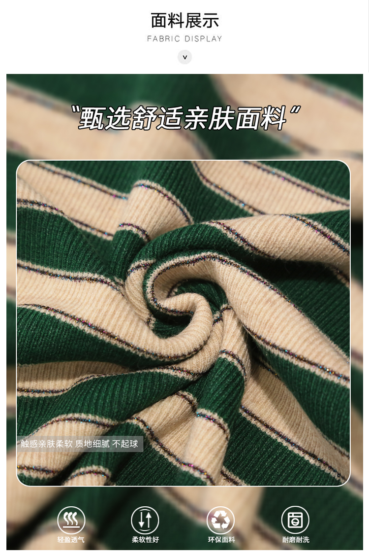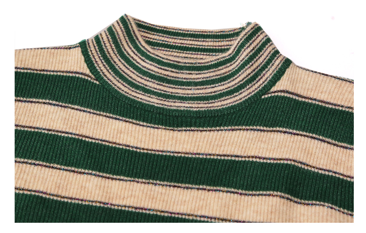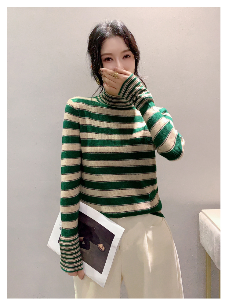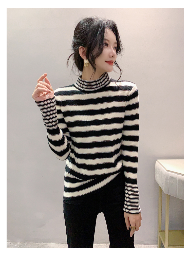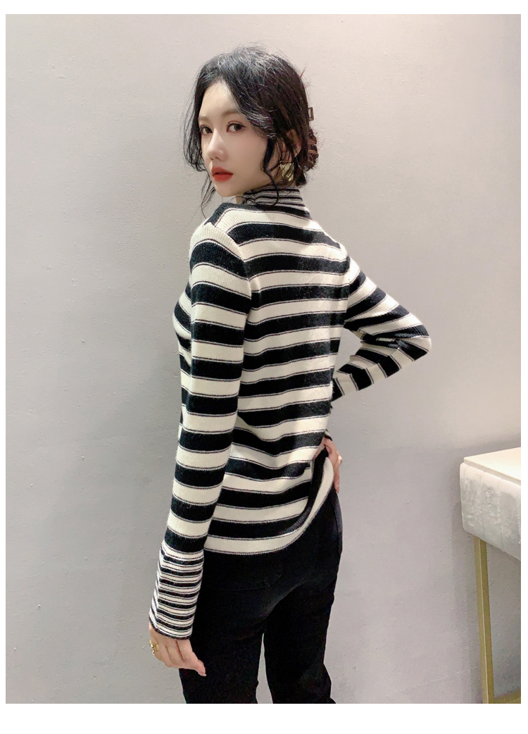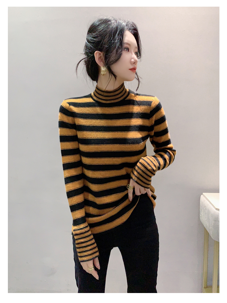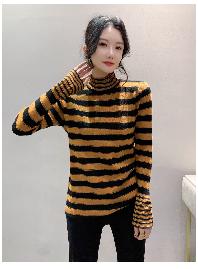 RM29666#新款百搭条纹针织衫半高领修身打底衫女长袖毛衣