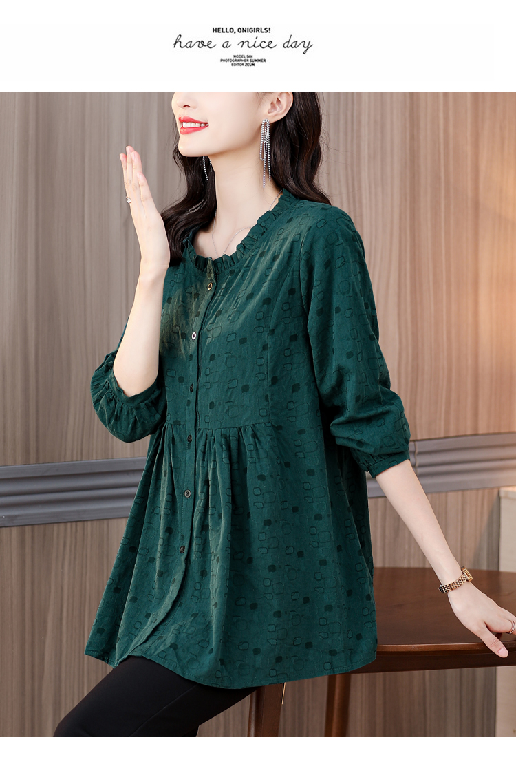 RM29678#新款大码女装荷叶领宽松显瘦时髦绣花衬衫