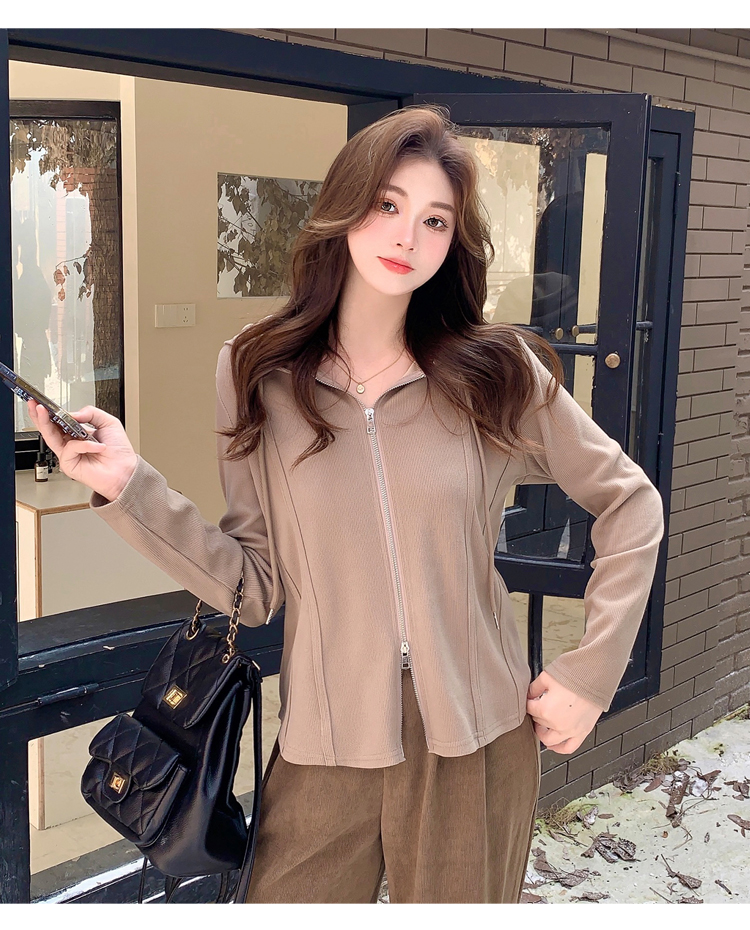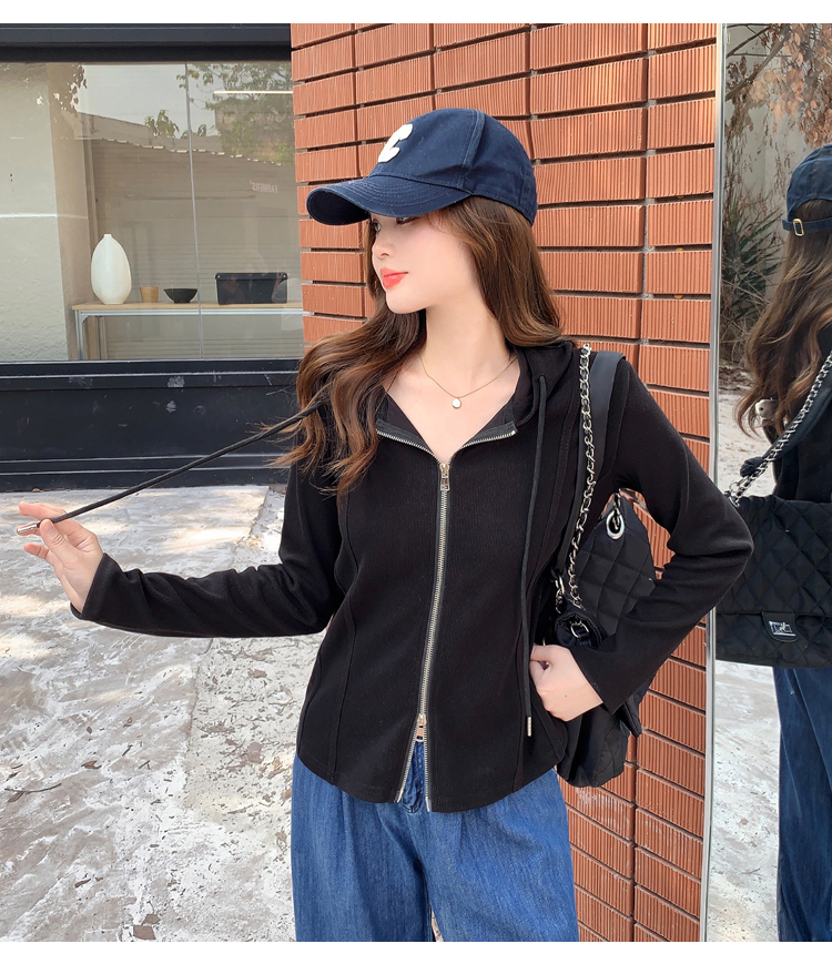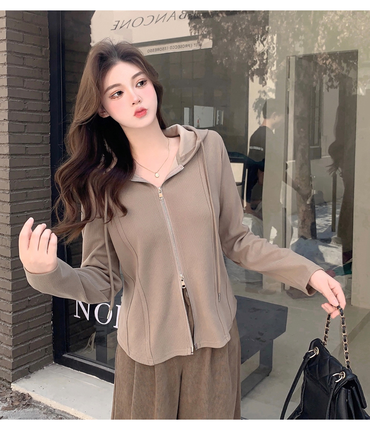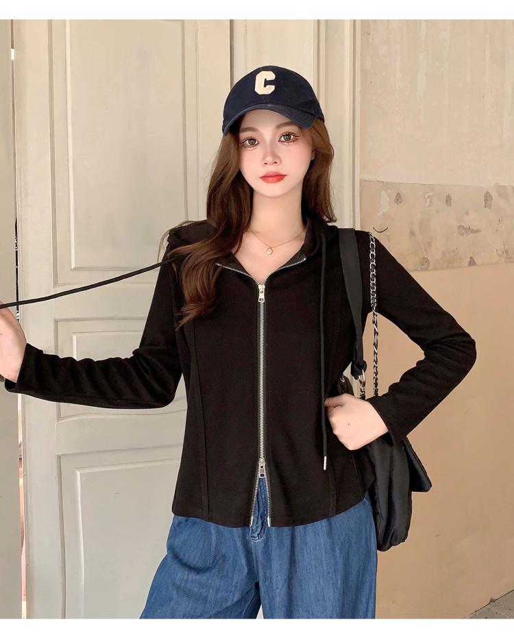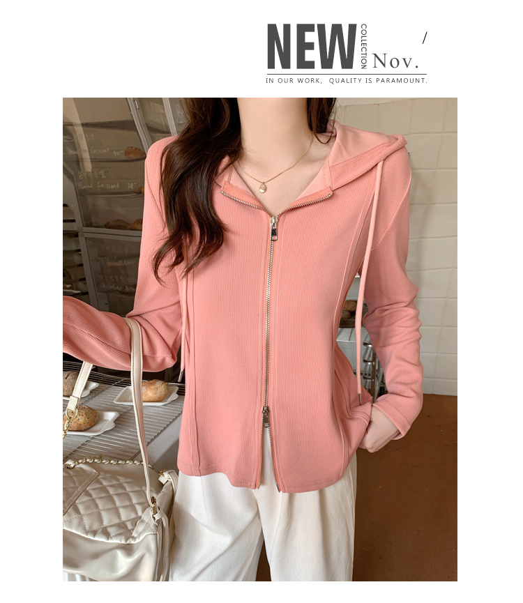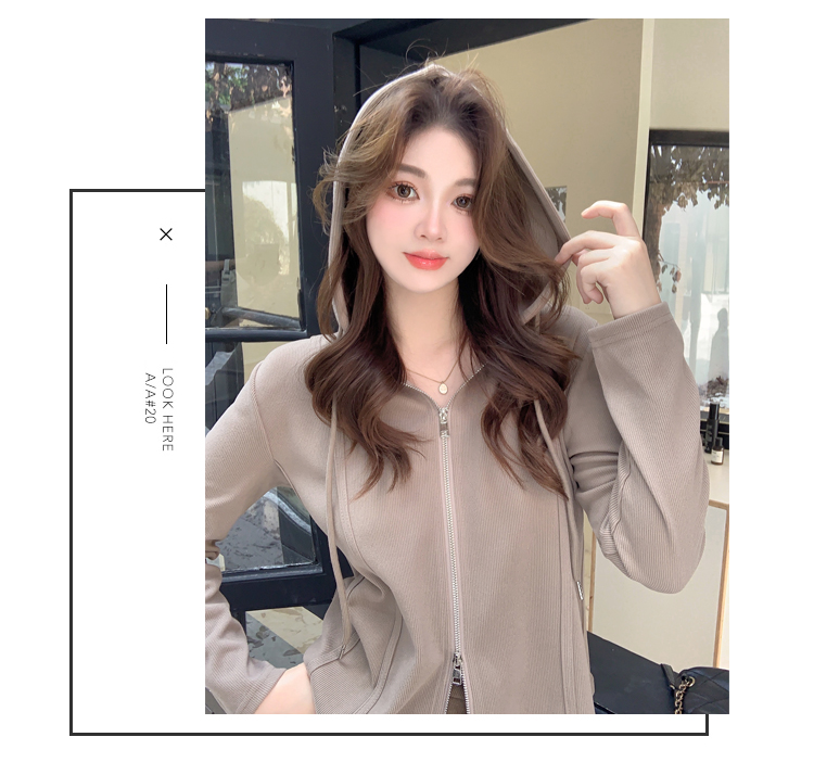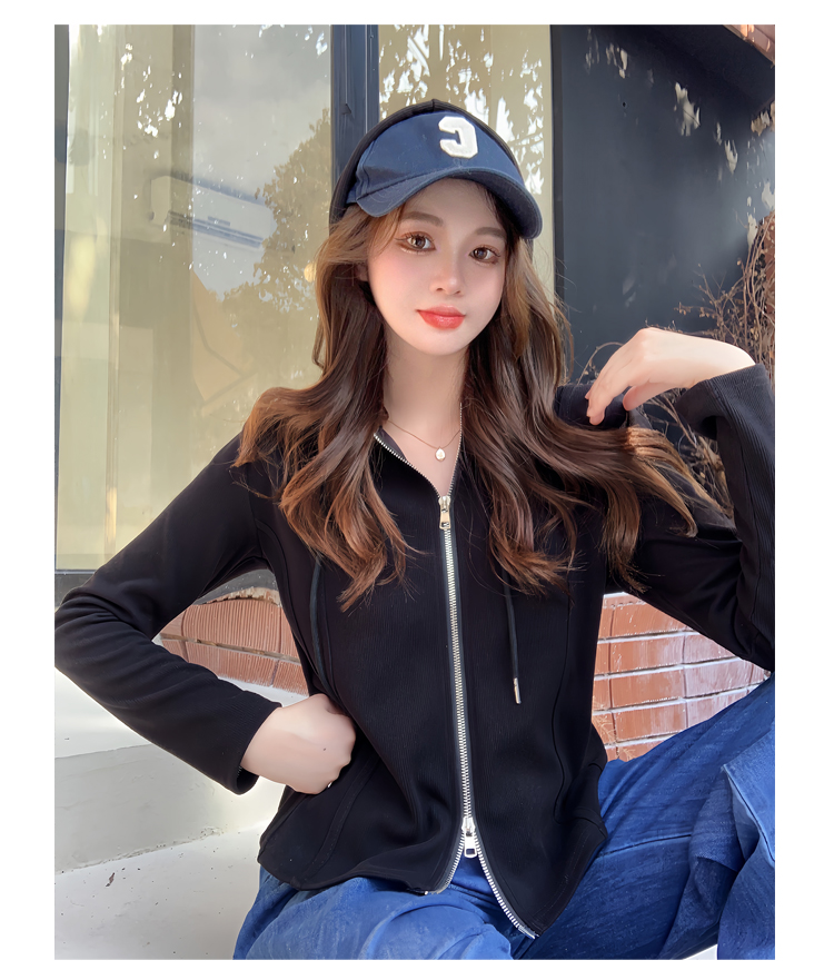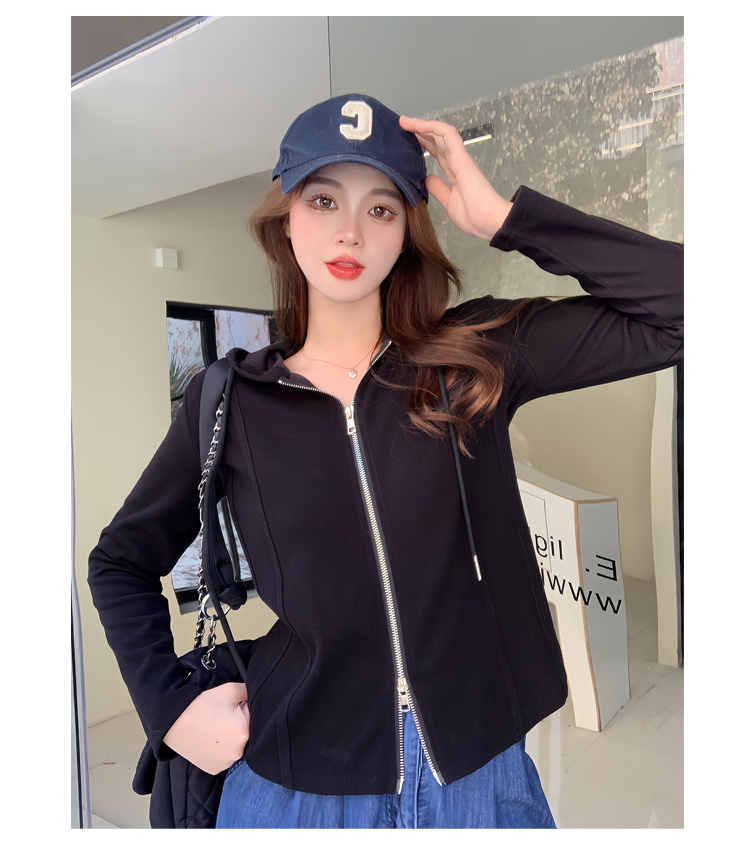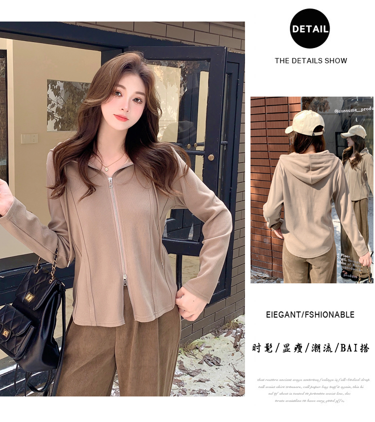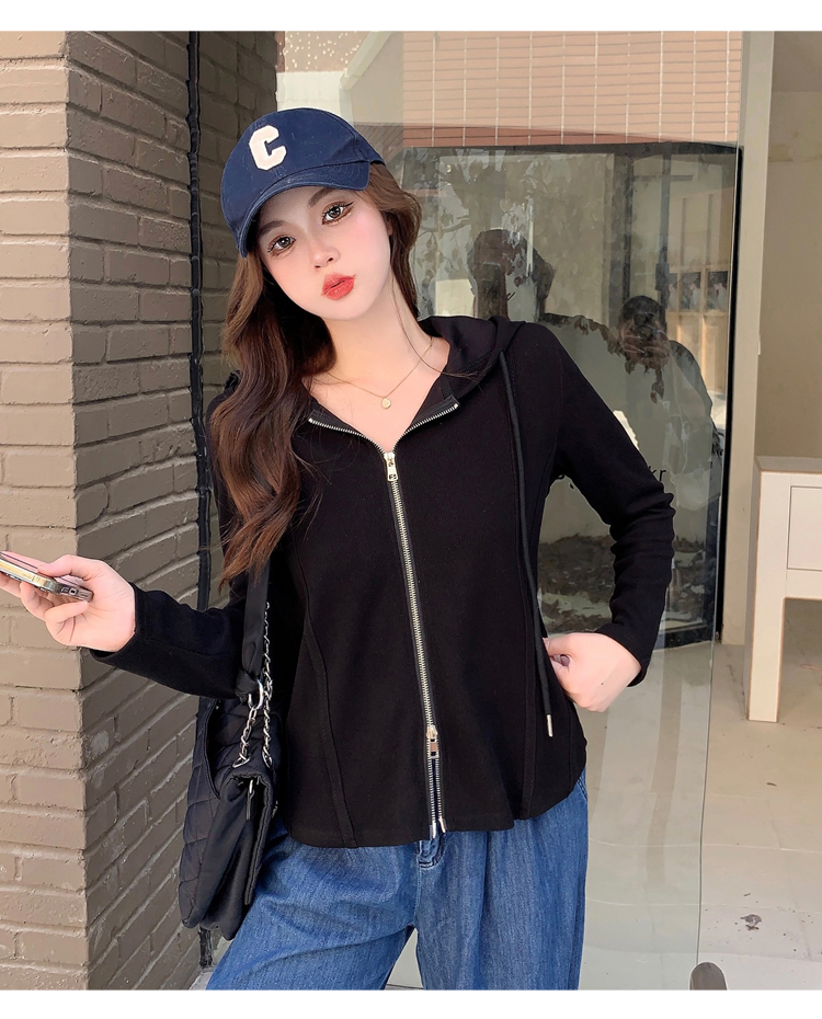 RM29711#大码秋季长袖t恤女百搭双开拉链显瘦连帽休闲开衫外套潮