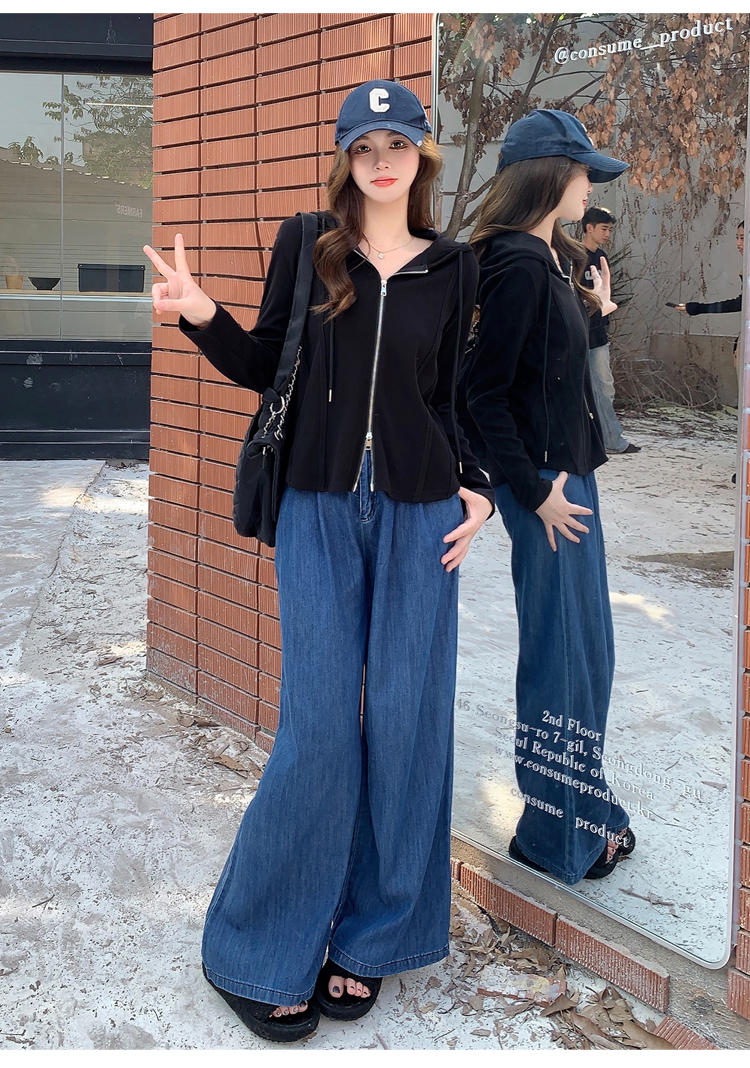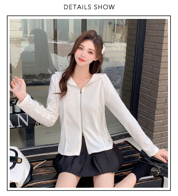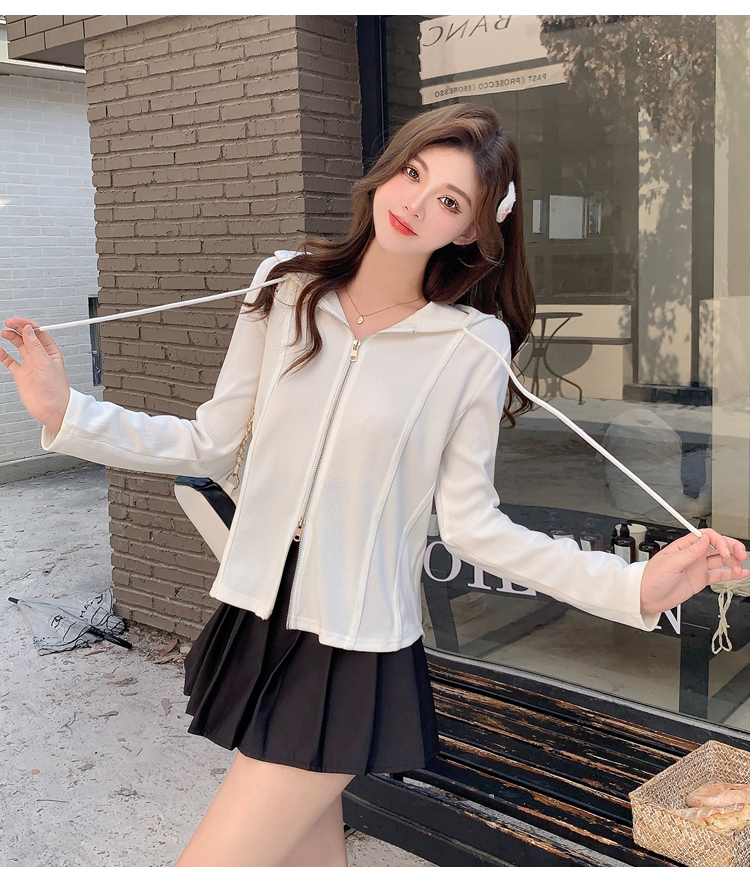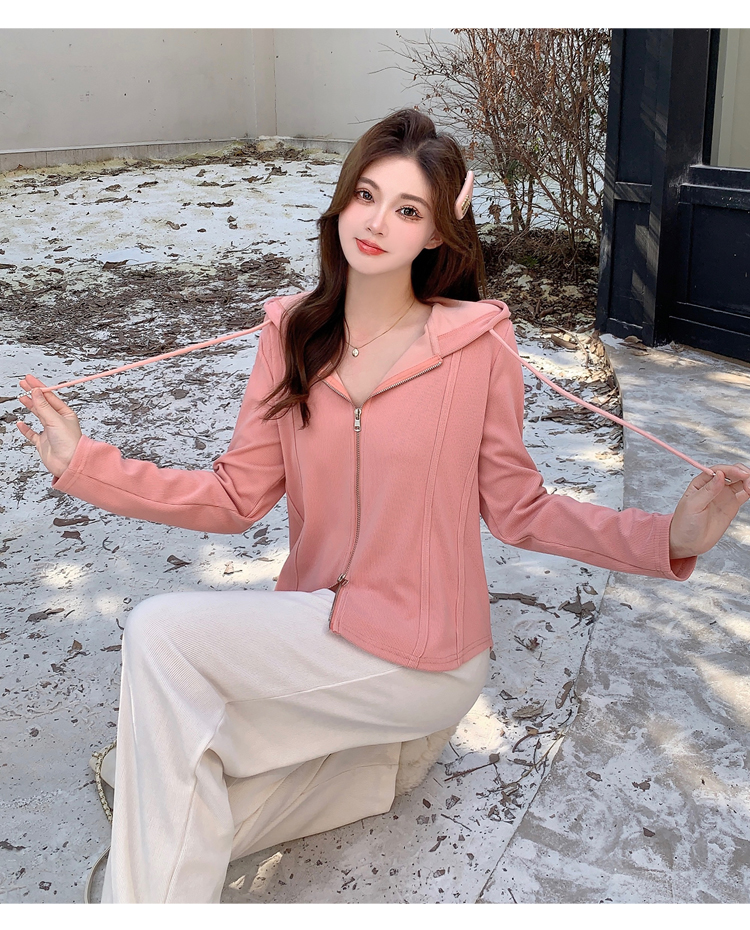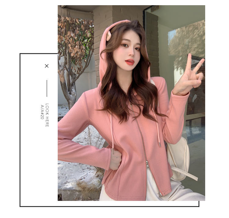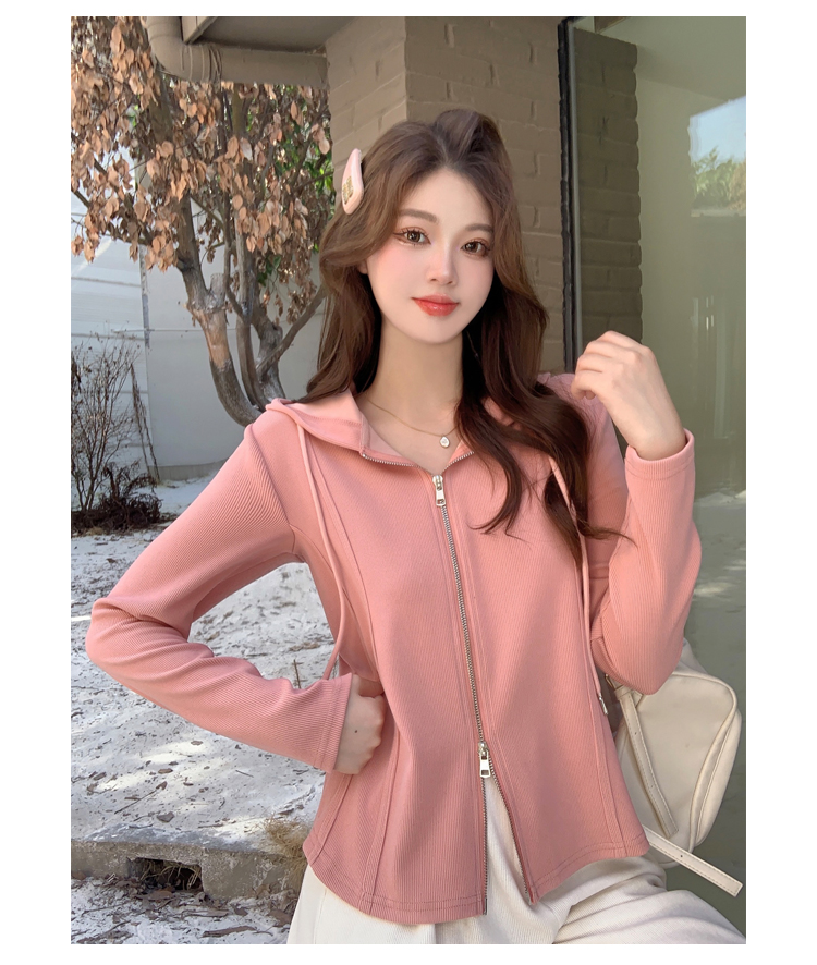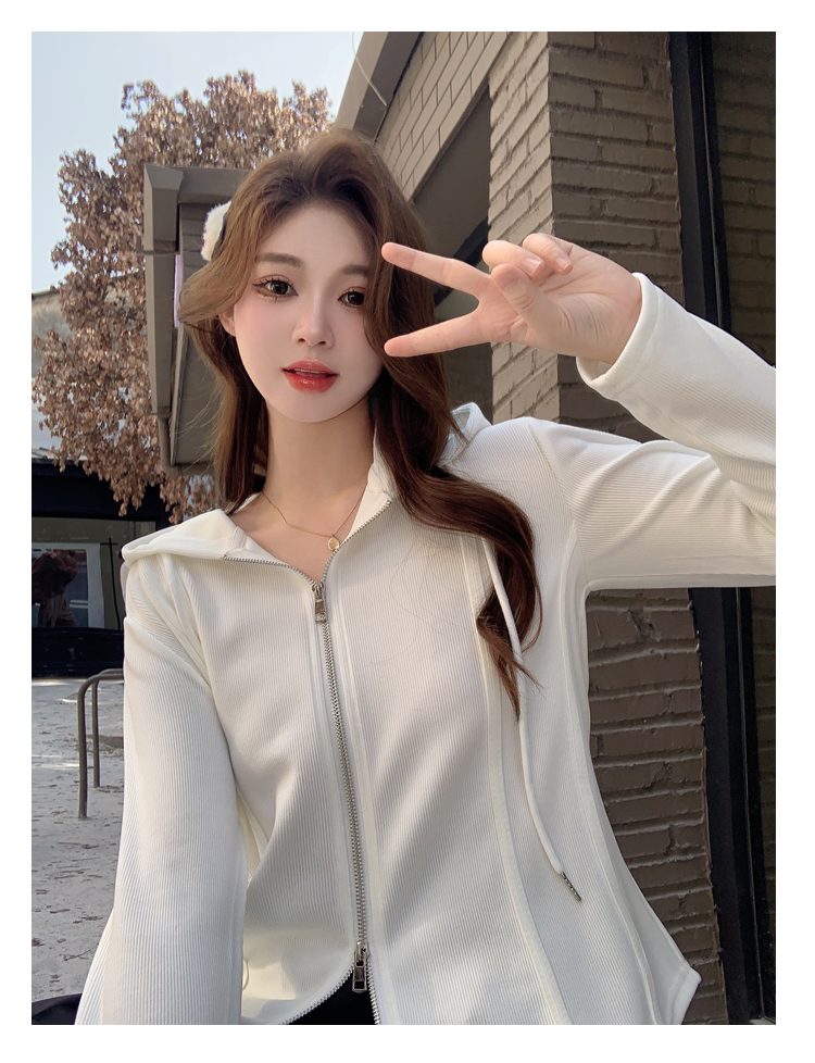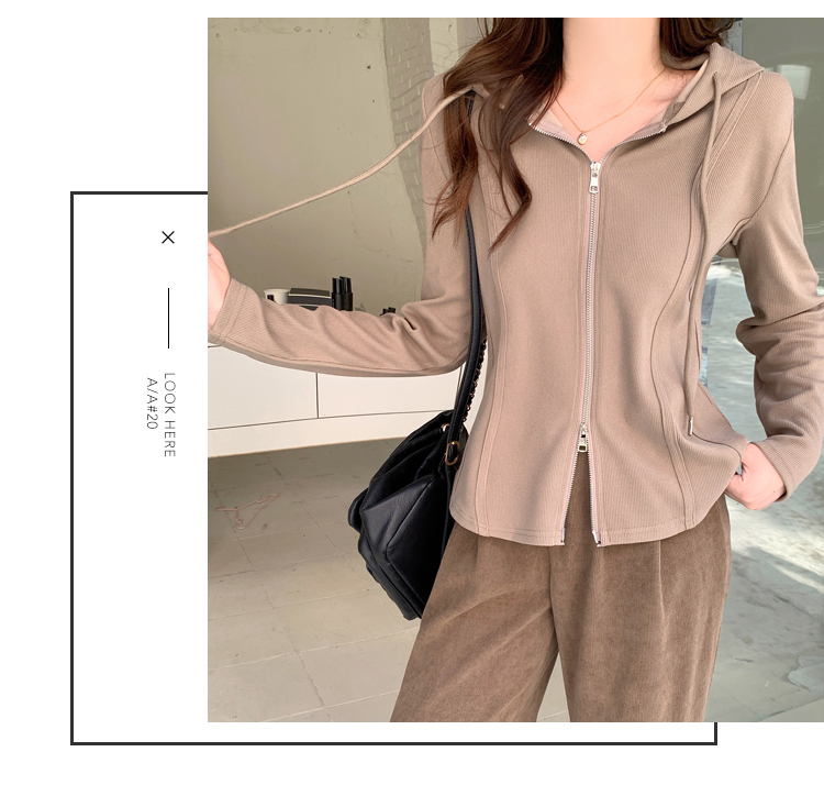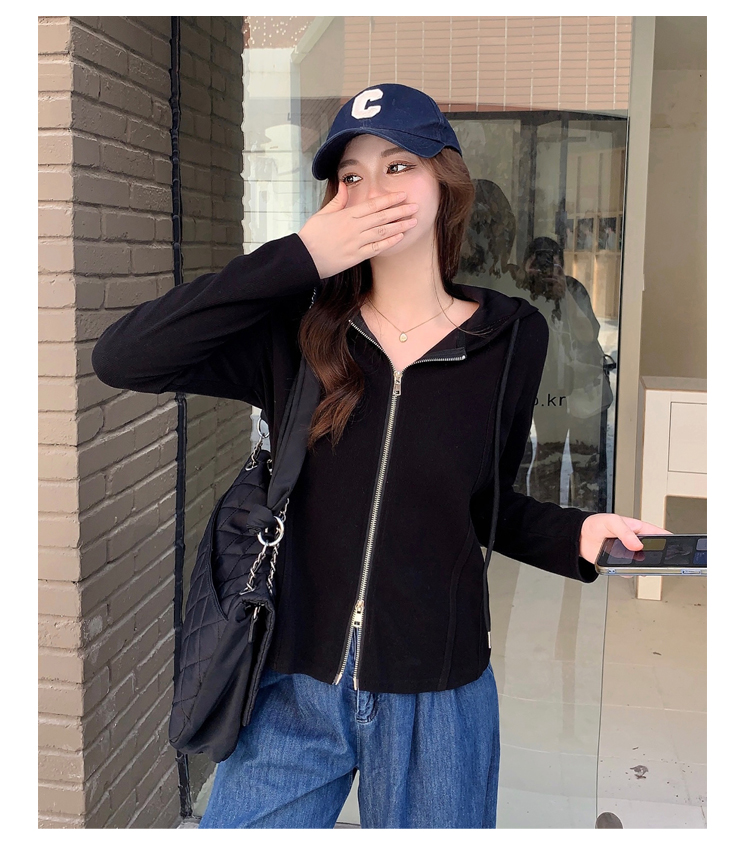 RM29711#大码秋季长袖t恤女百搭双开拉链显瘦连帽休闲开衫外套潮