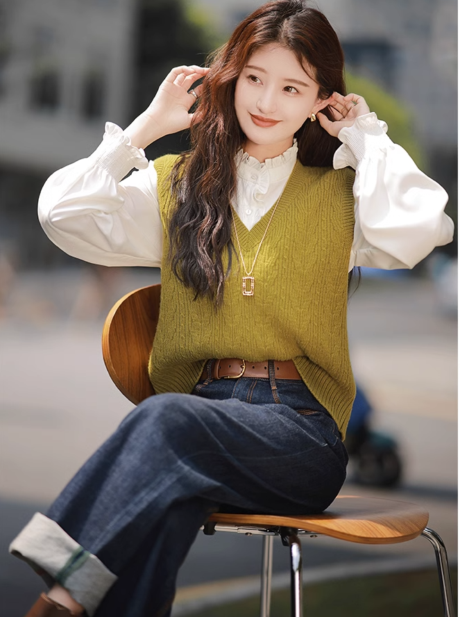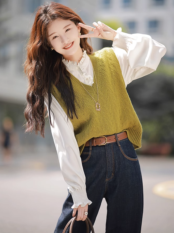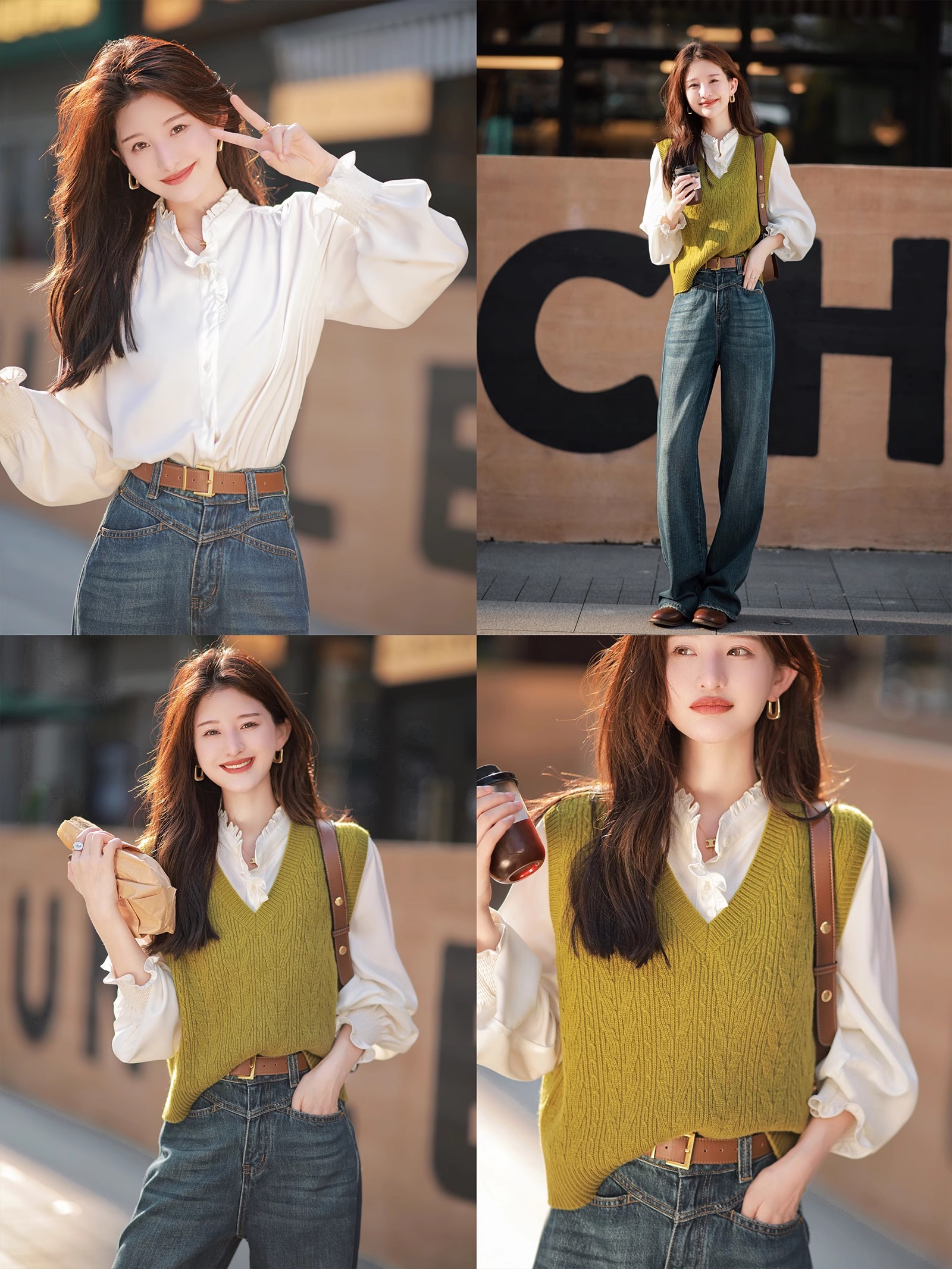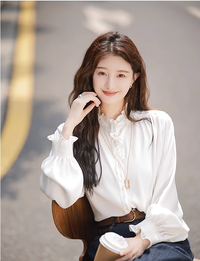 RM29722#衬衫亢皱面料 优雅木耳边设计 H版衬衫