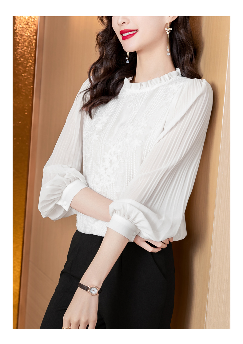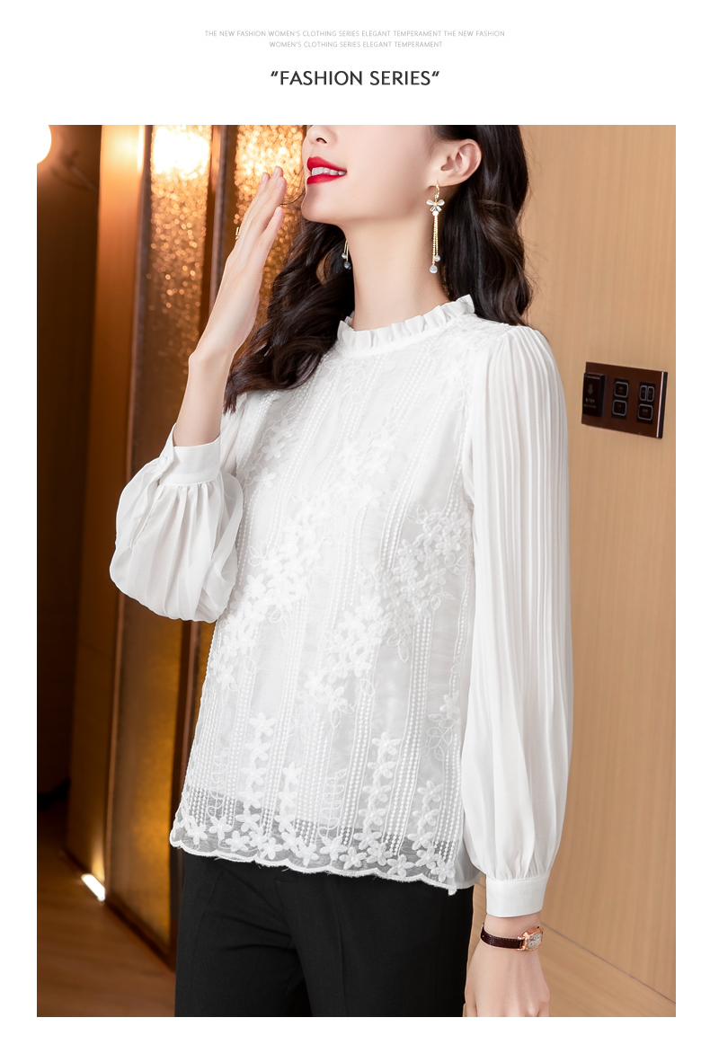 RM29724#新款蕾丝雪纺衬衫春装潮欧货打底衫百搭上衣