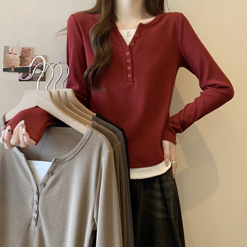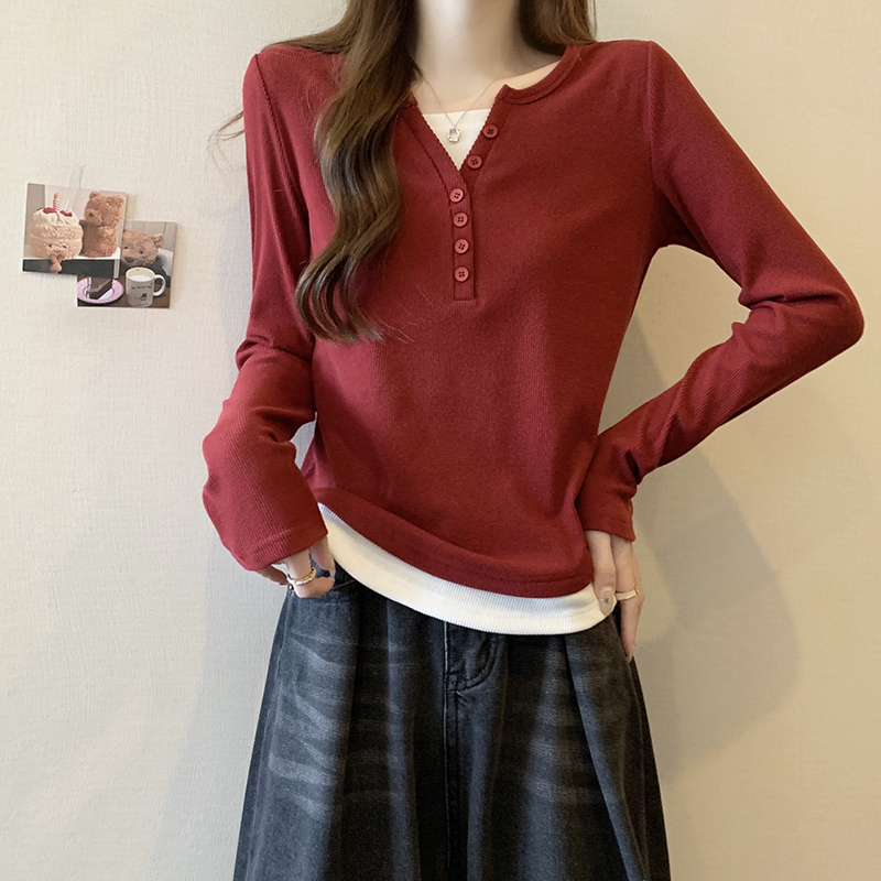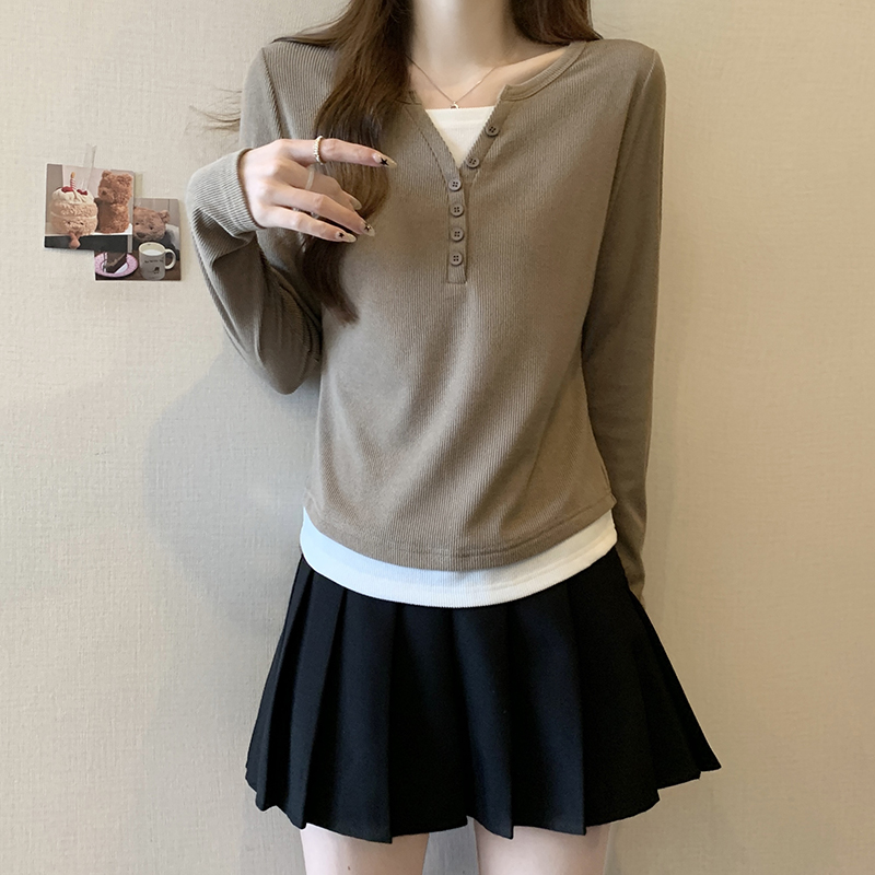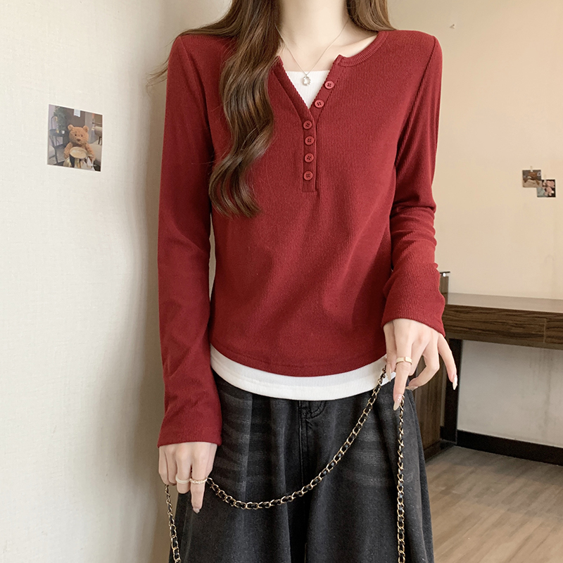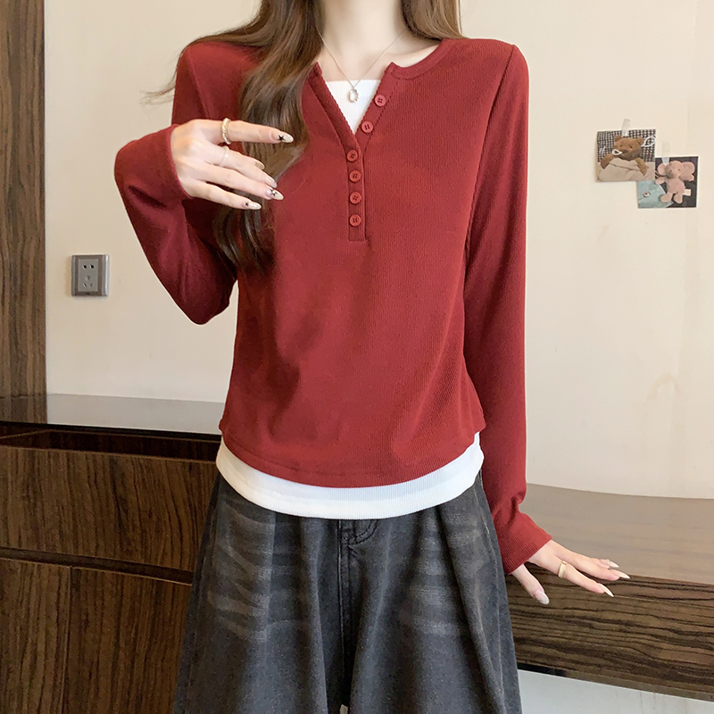RM29731#新款胖mm辣妹百搭设计感假两件外穿正肩打底T恤上衣