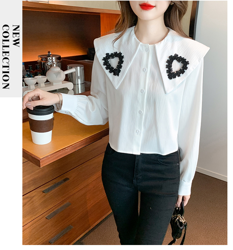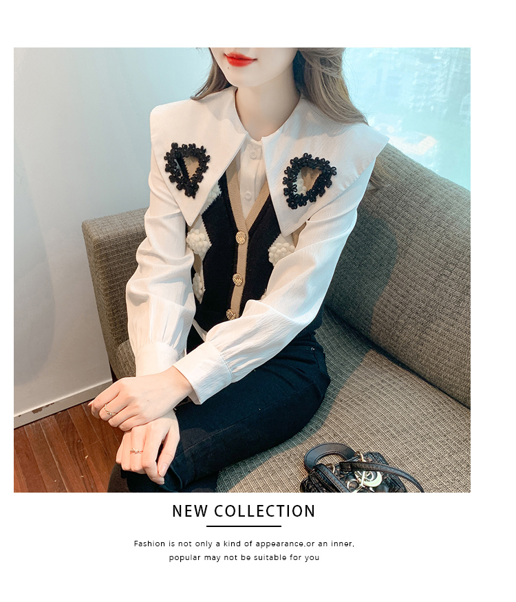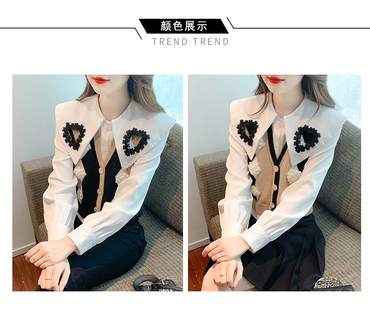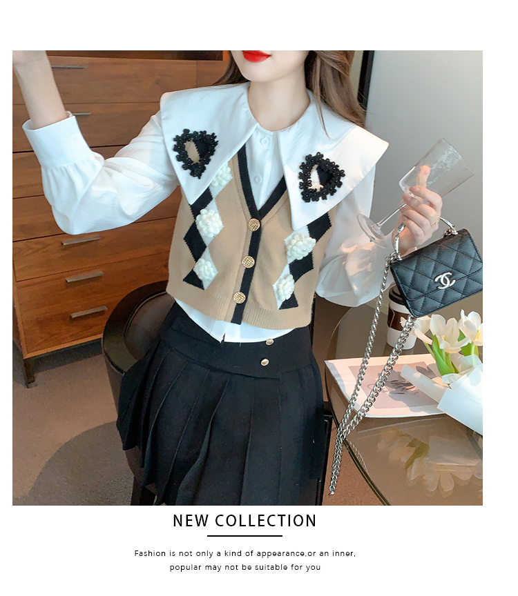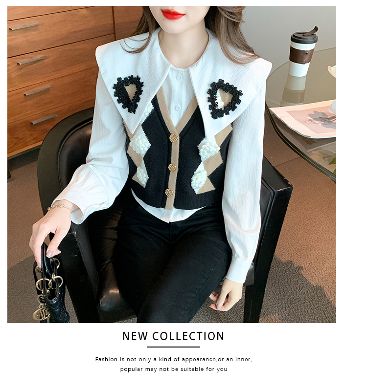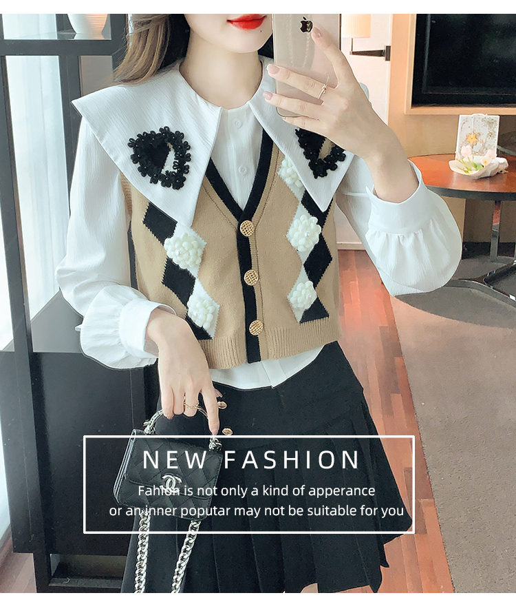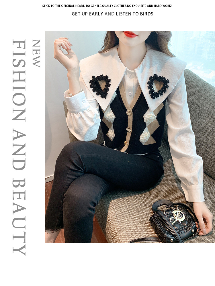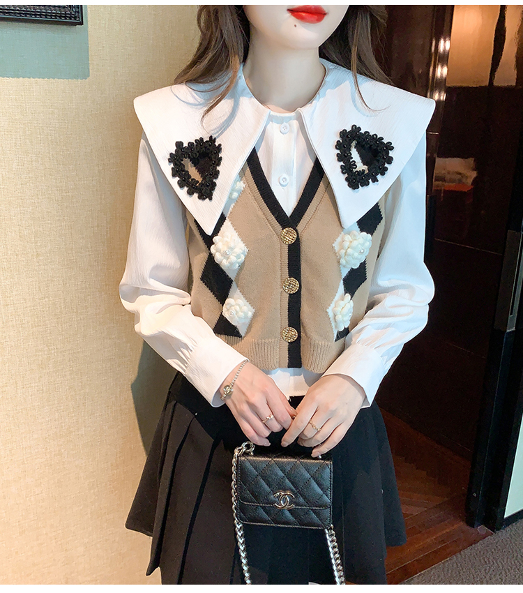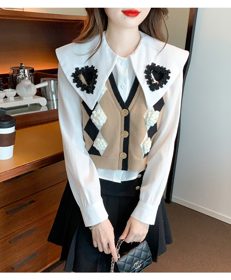 RM29747#娃娃领衬衫+超重工针织马甲两件套上衣女