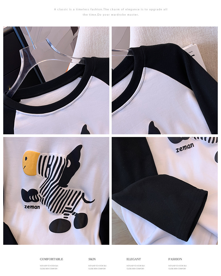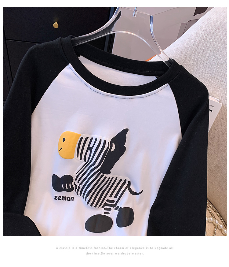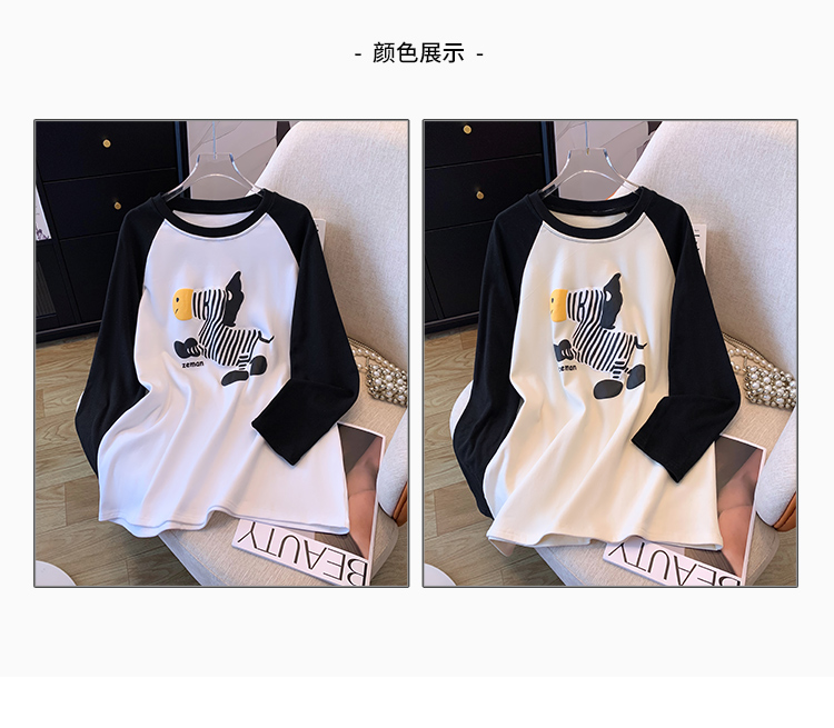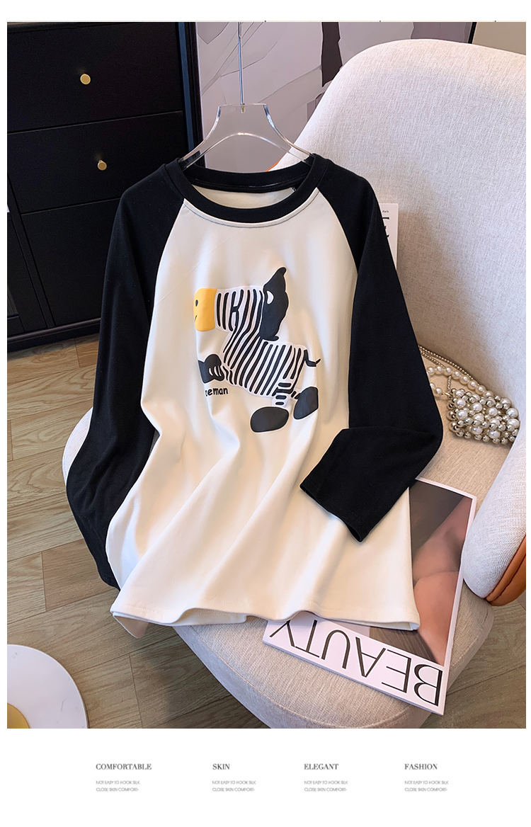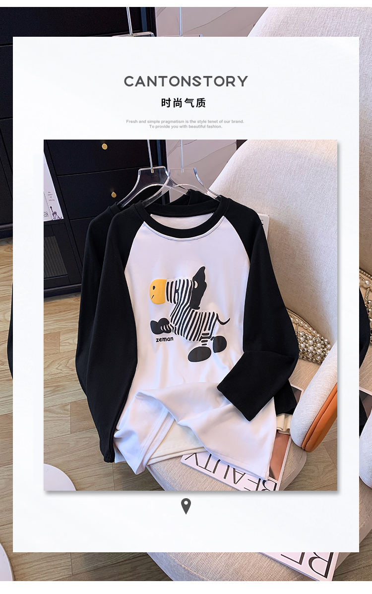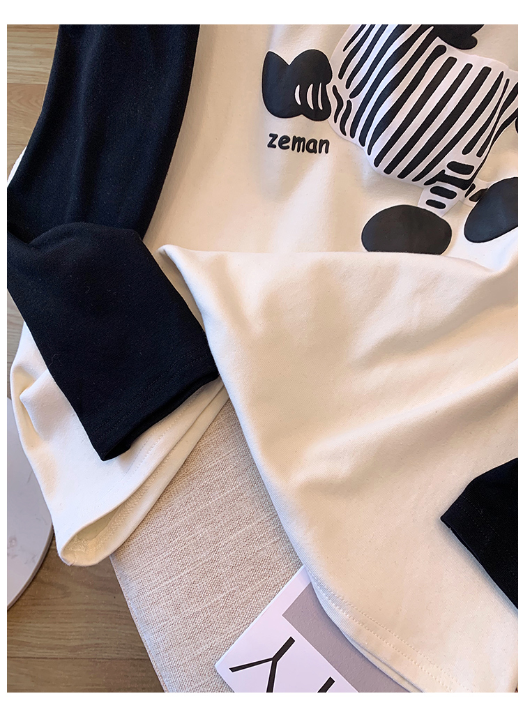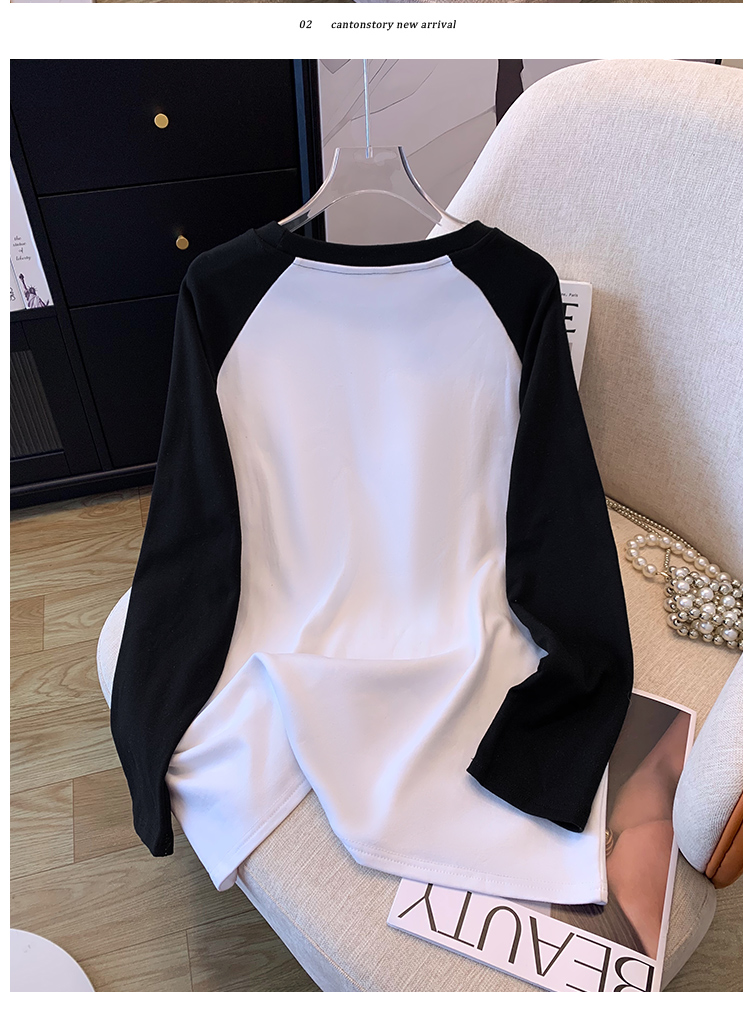 RM29754#撞色长袖T恤女秋冬新款内搭加绒中长款宽松圆领打底衫