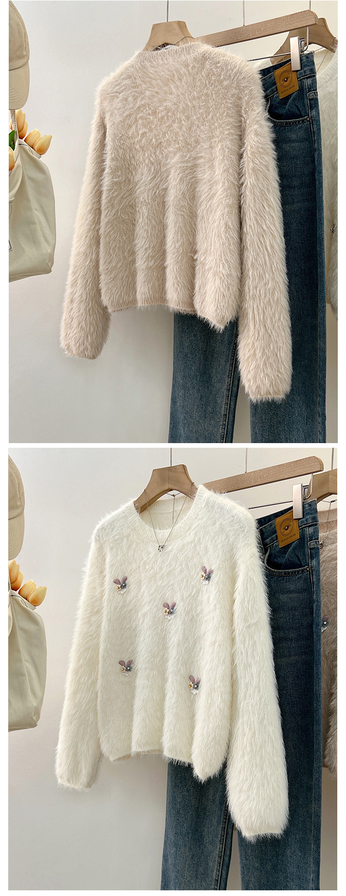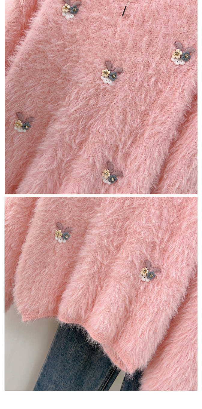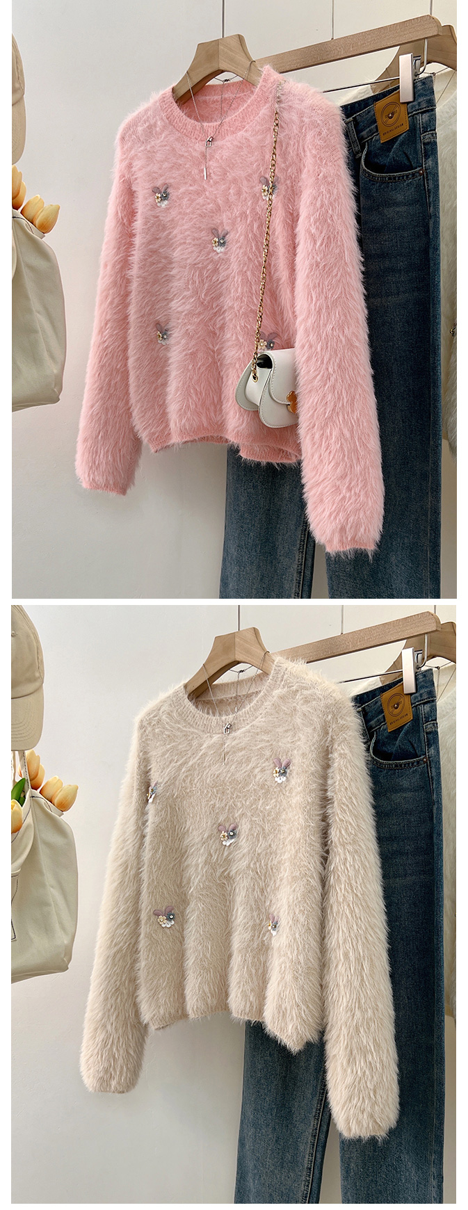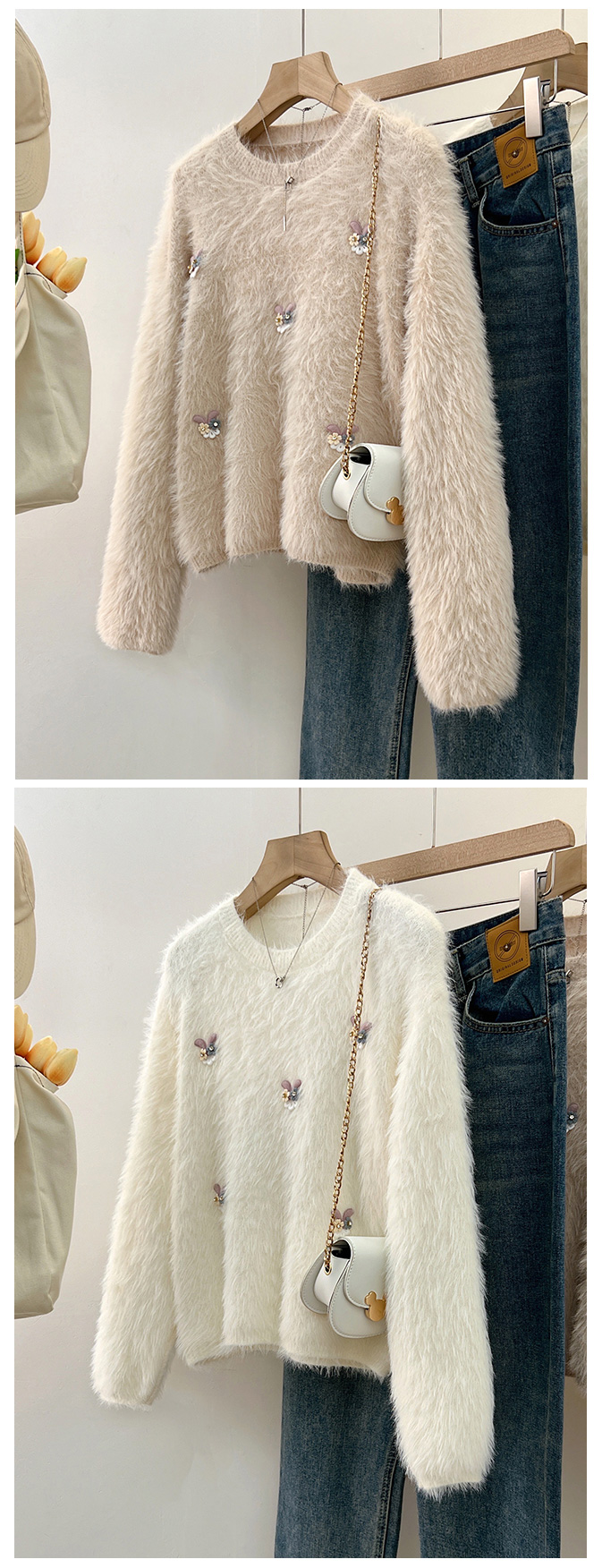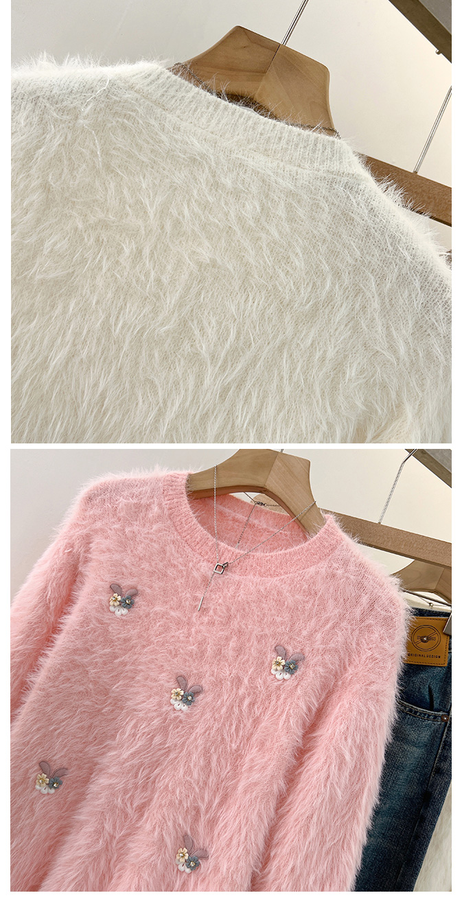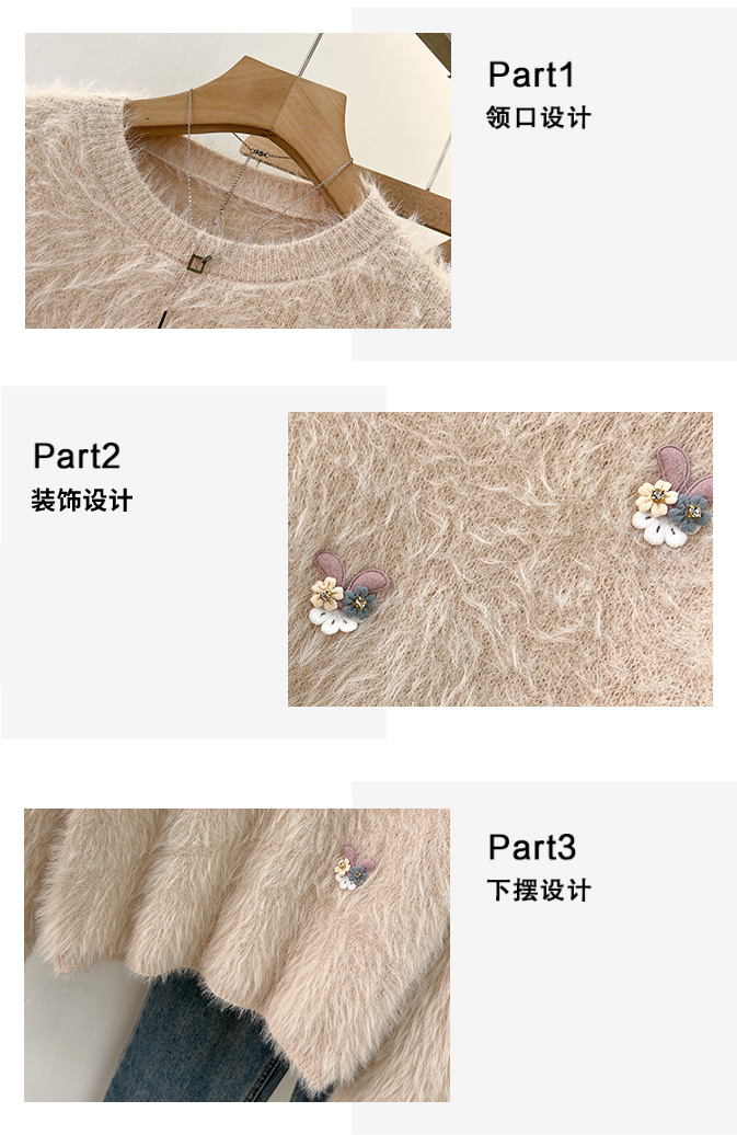 RM29757#小清新水貂绒兔子套头毛衣女2023秋冬新款宽松保暖打底针织衫