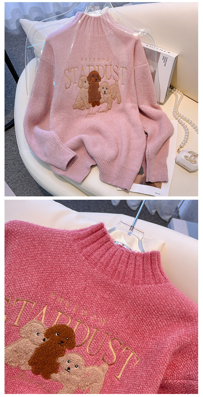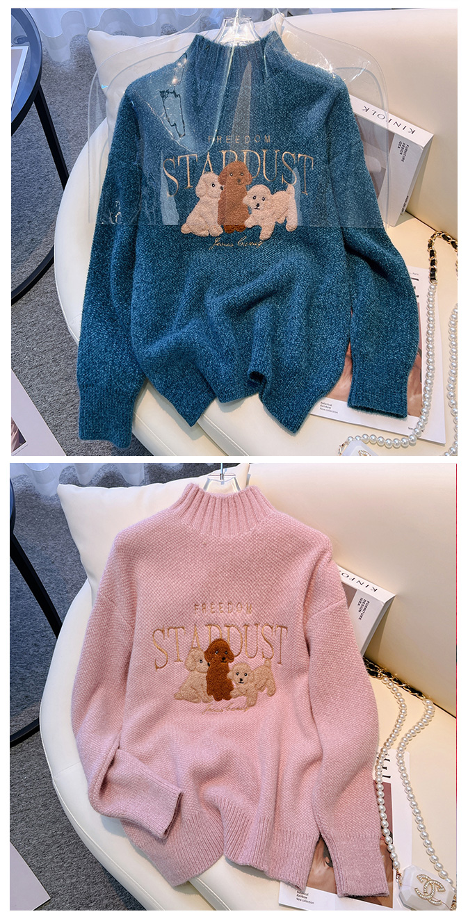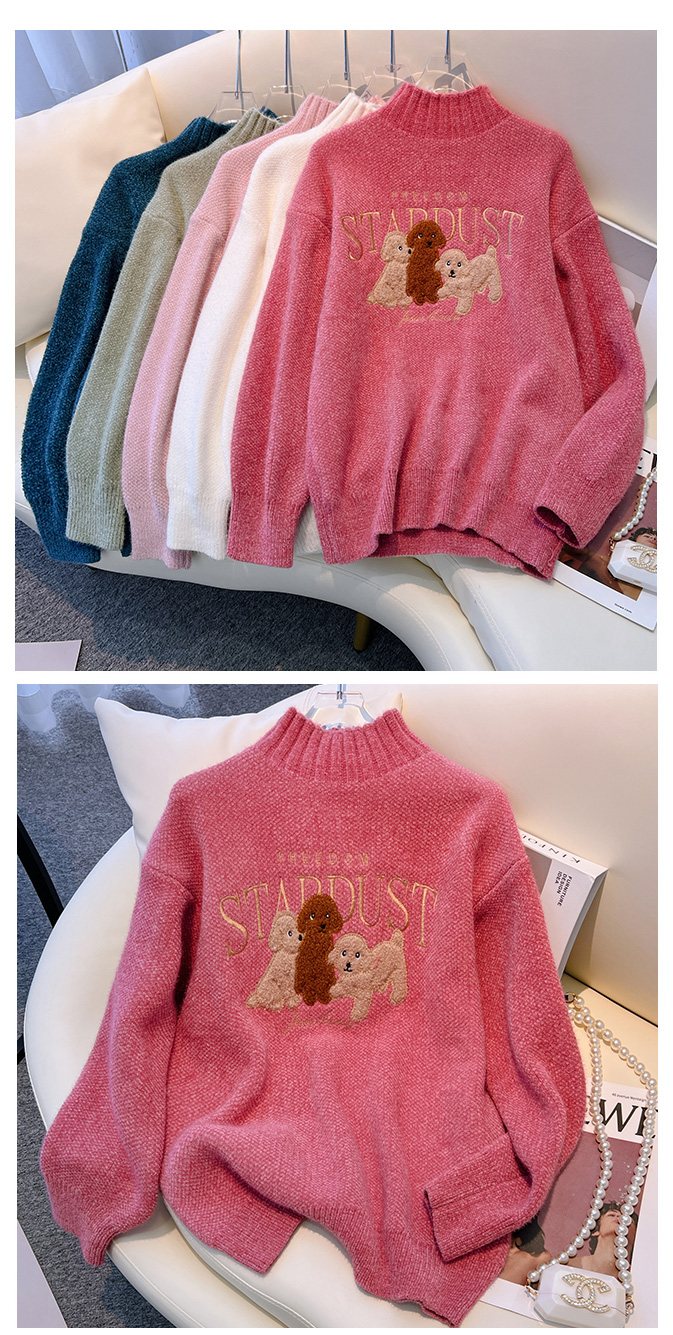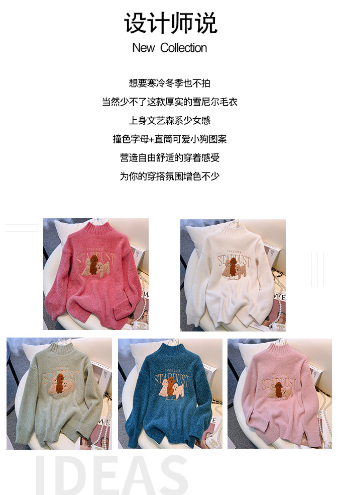RM29759#雪尼尔套头毛衣女2022秋冬新款半高领学院风长袖针织衫