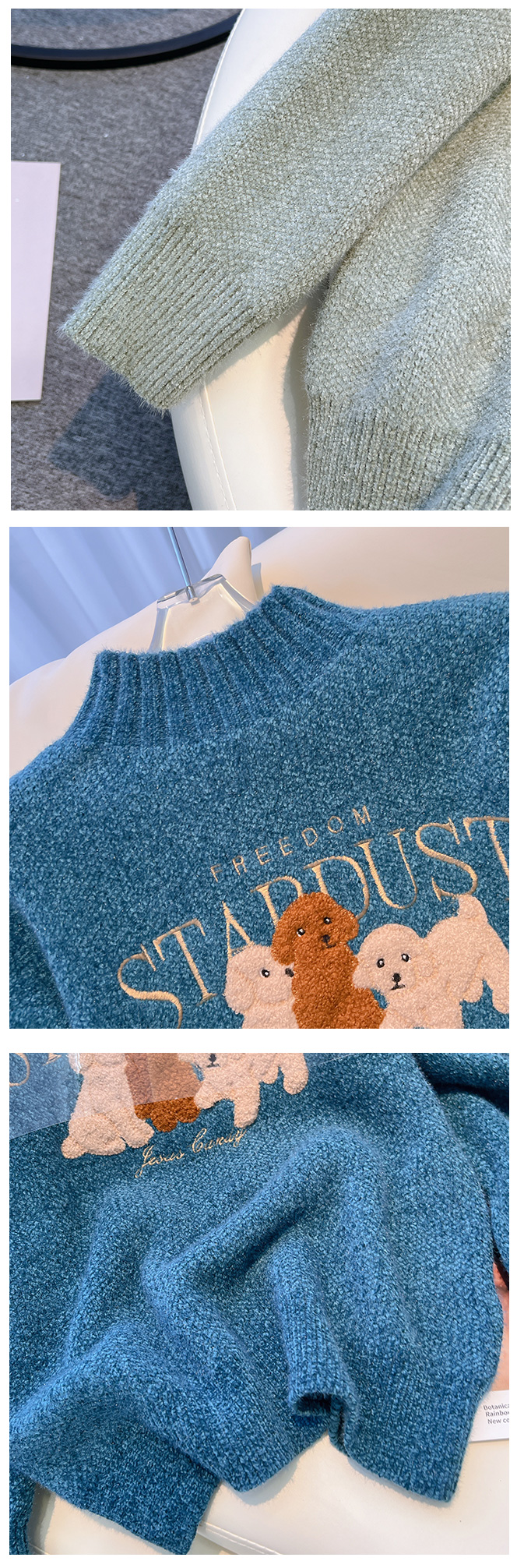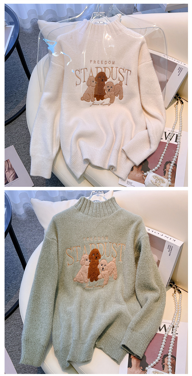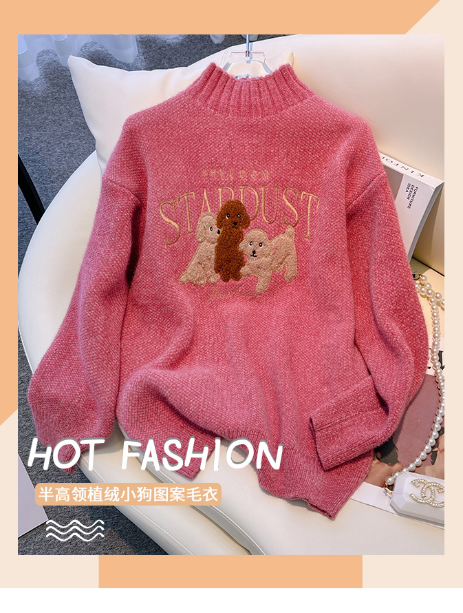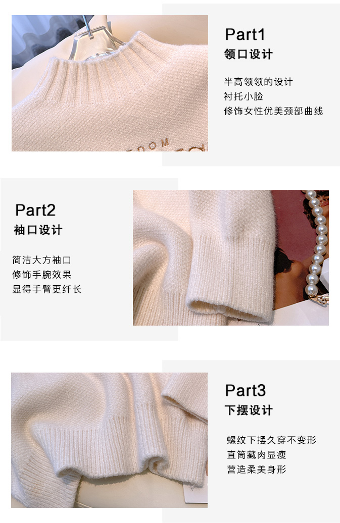 RM29759#雪尼尔套头毛衣女2022秋冬新款半高领学院风长袖针织衫
