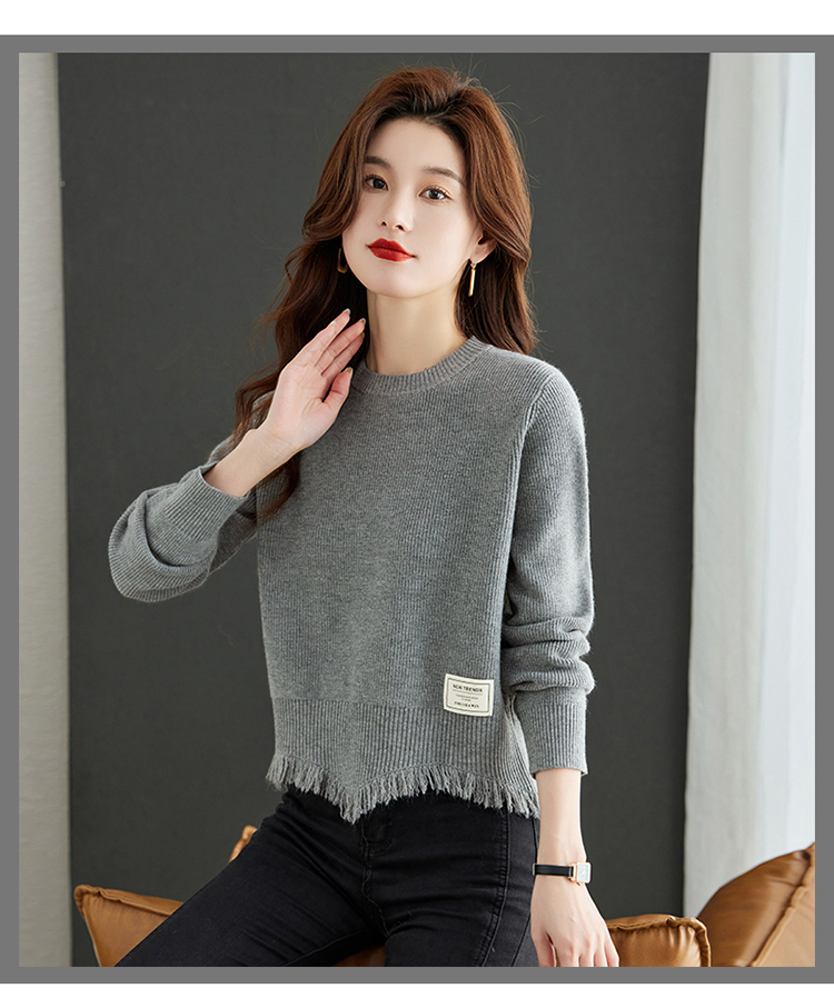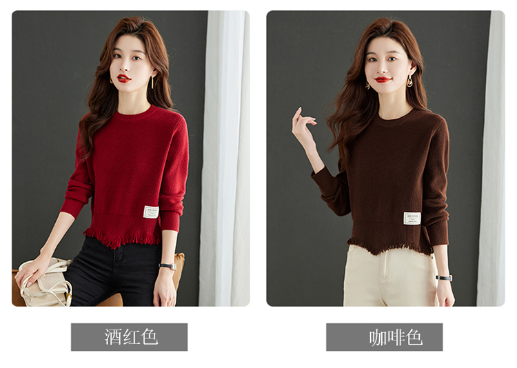 RM29767#小个子短款高腰洋气卡腰上衣女士针织衫秋冬2023新款红色减龄毛衣