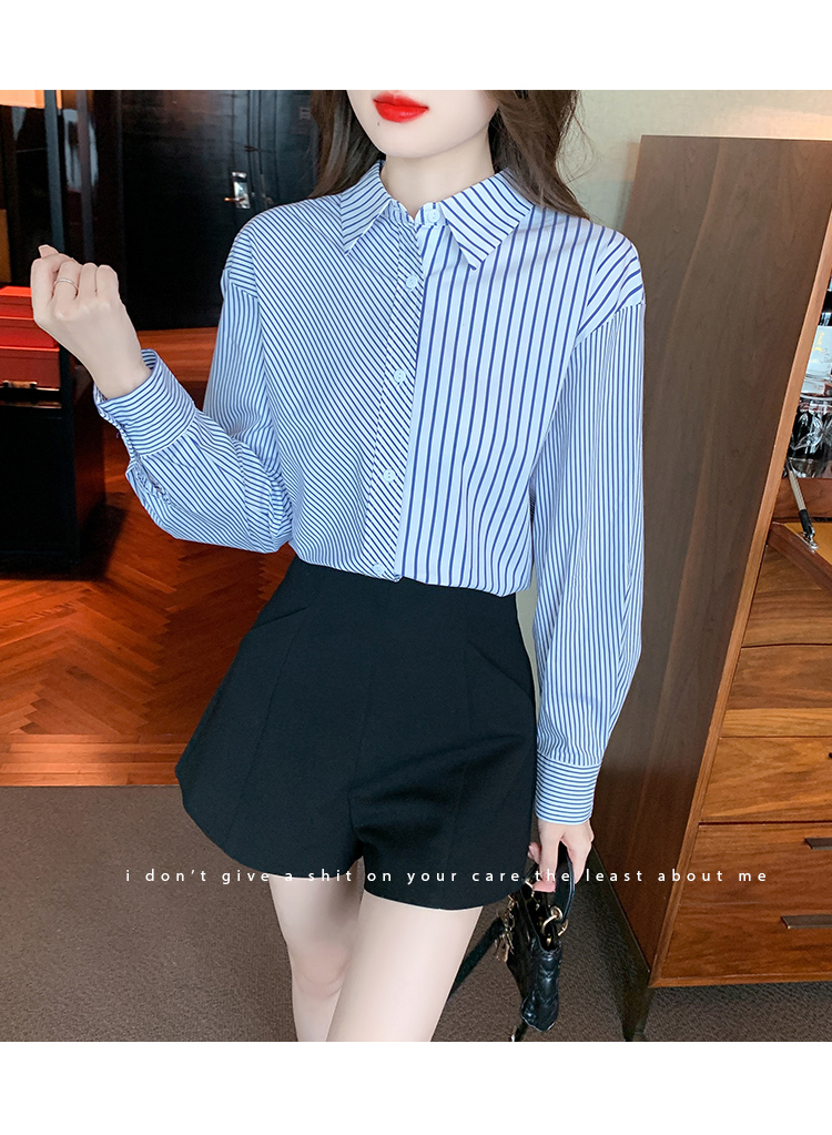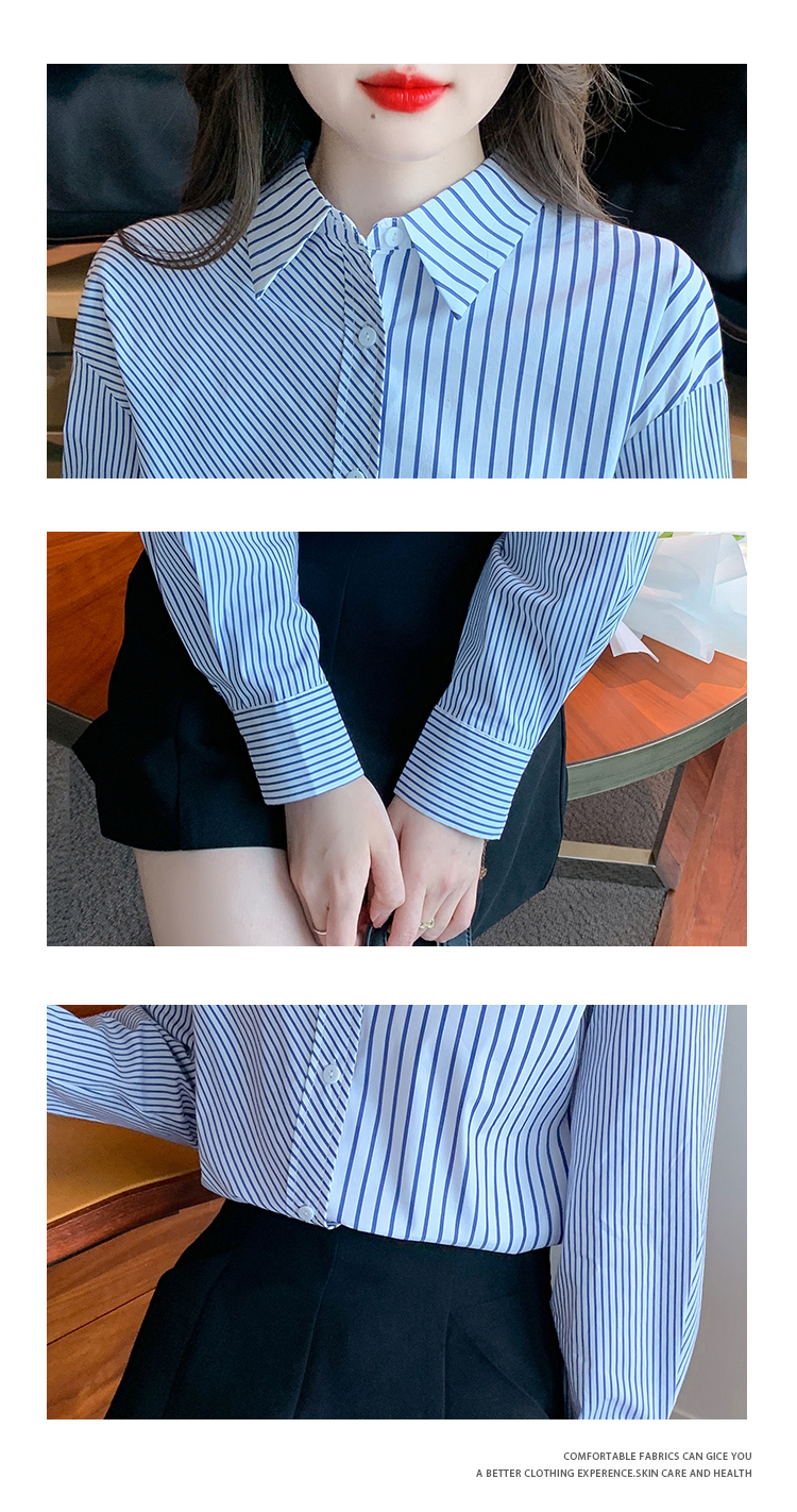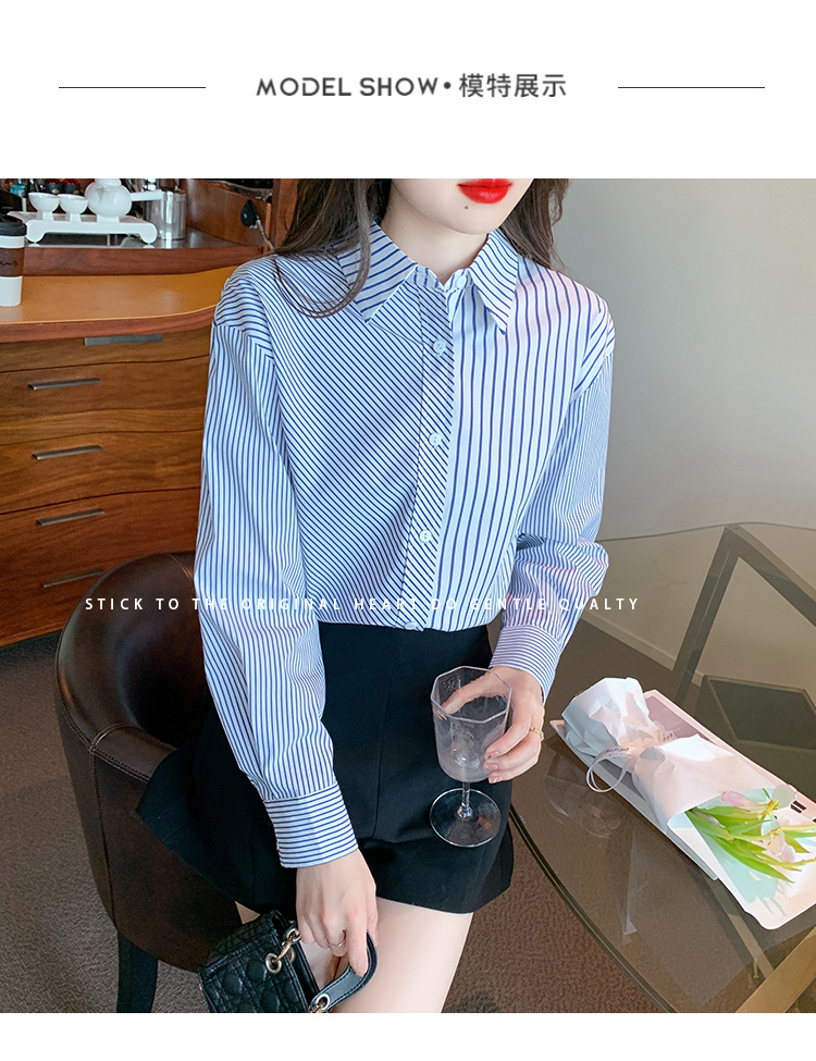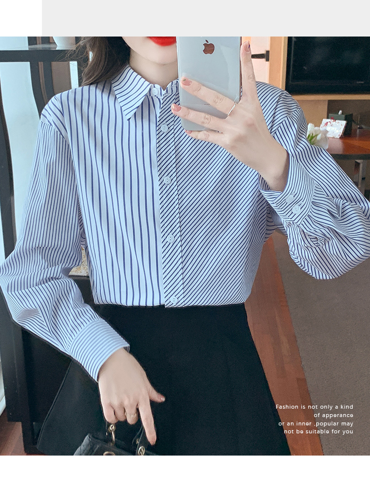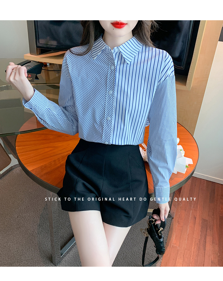 RM29778#法式气质衬衣条纹衬衫小众简约百搭通勤上衣