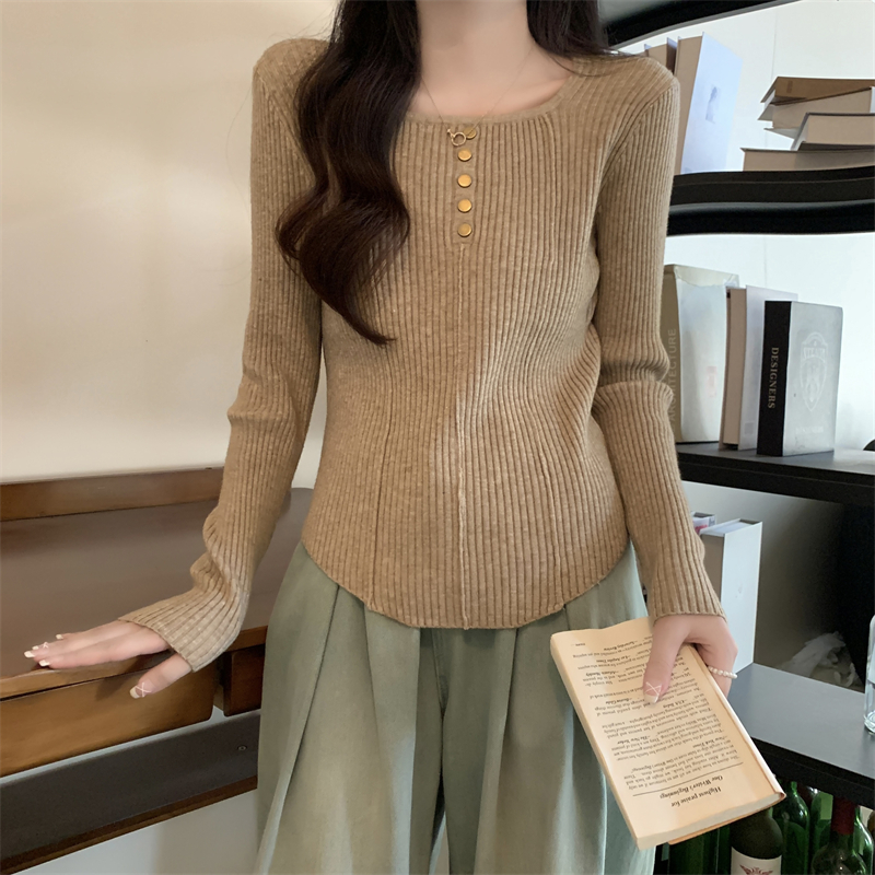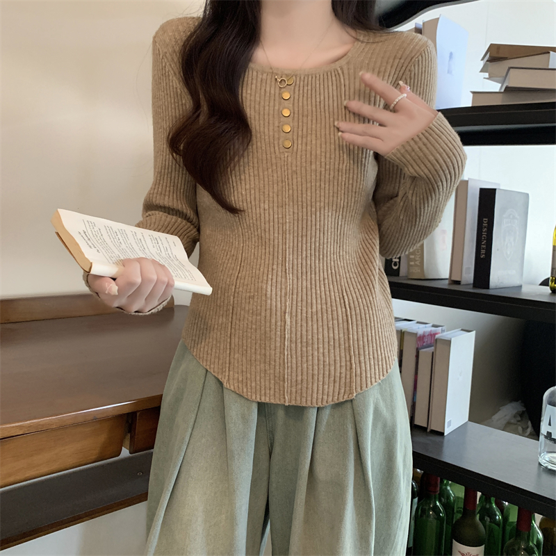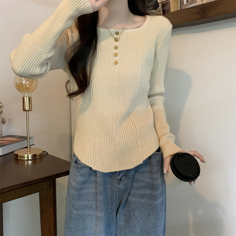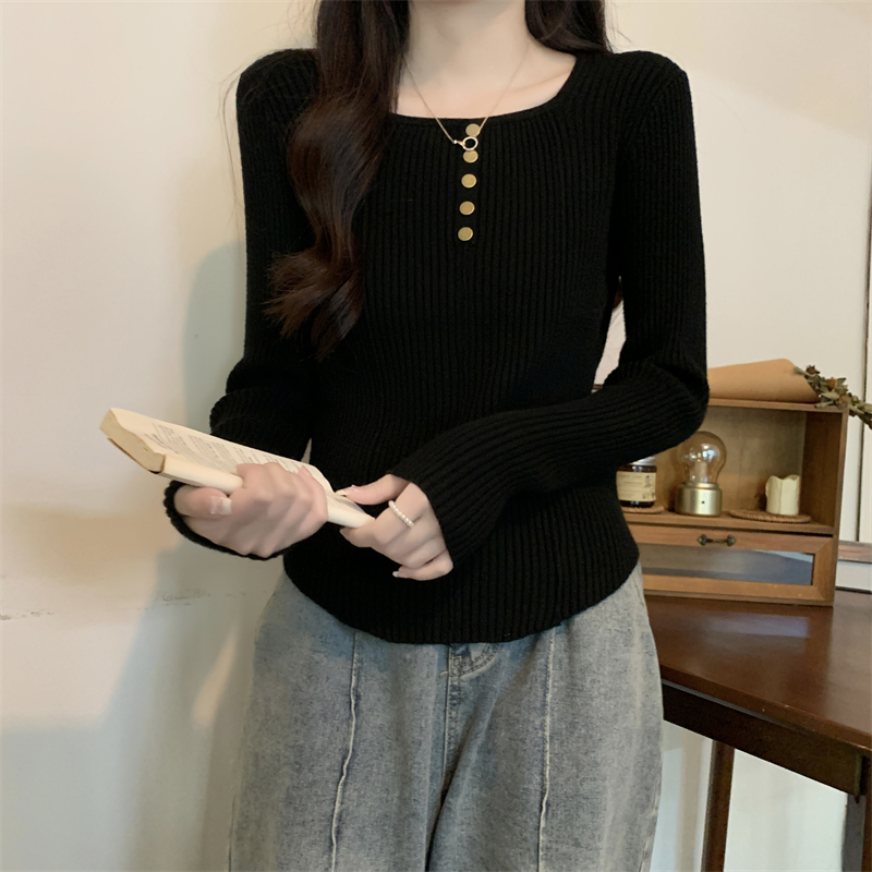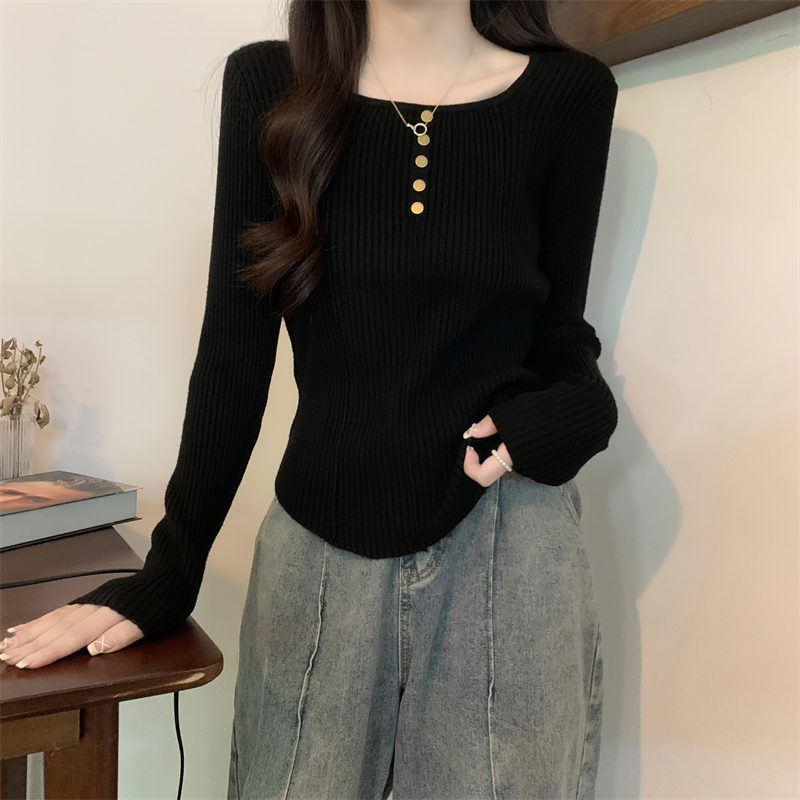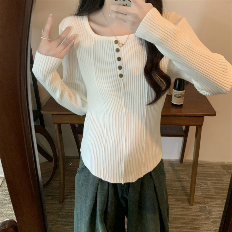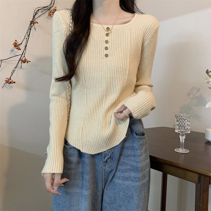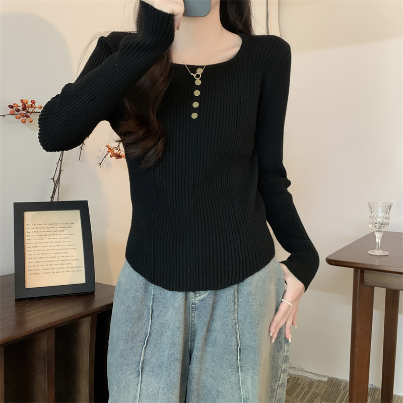 RM29791#新款设计感长袖针织衫女韩版内搭加厚辣妹百搭纯欲上衣女