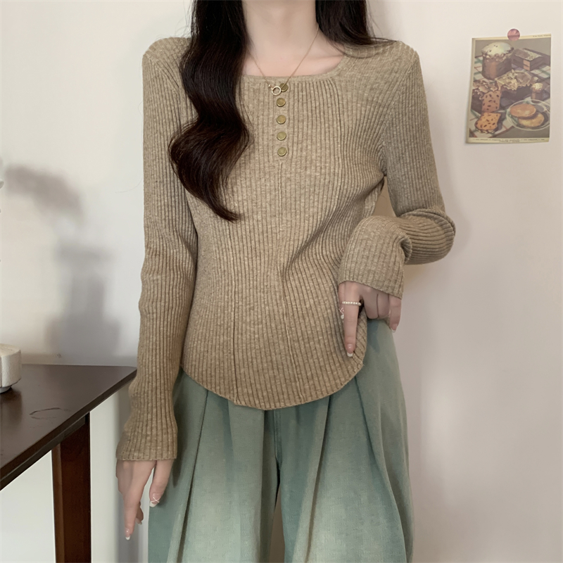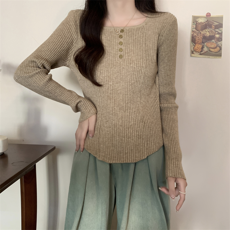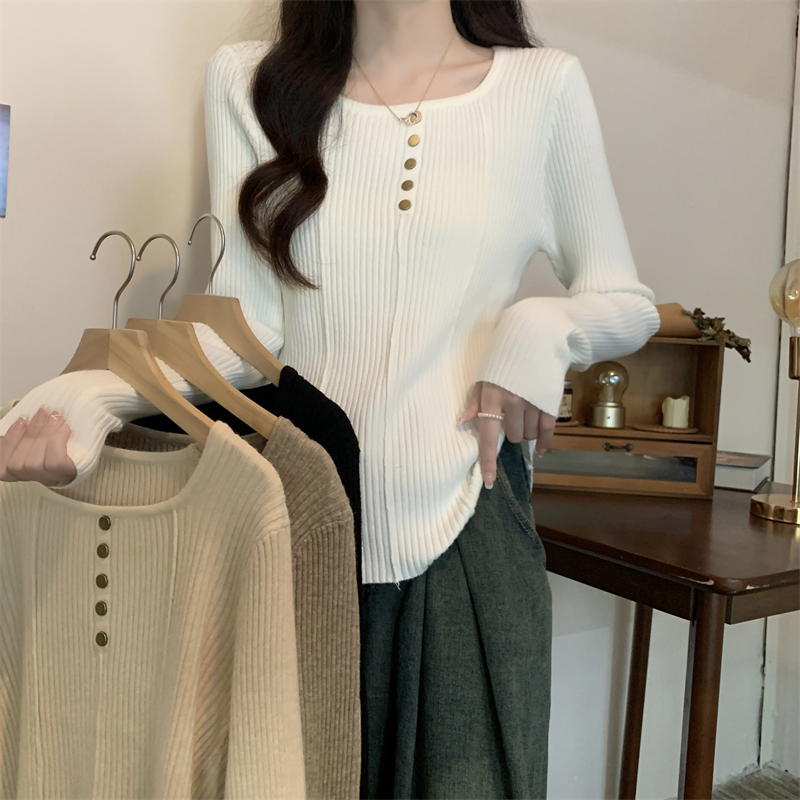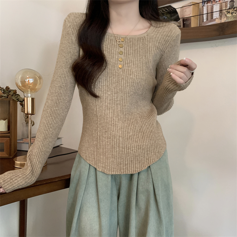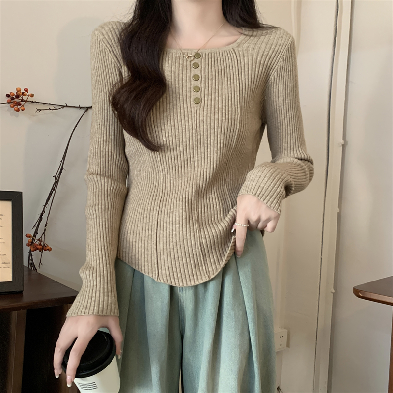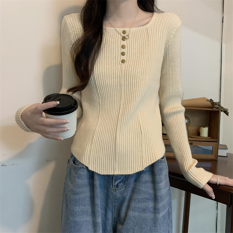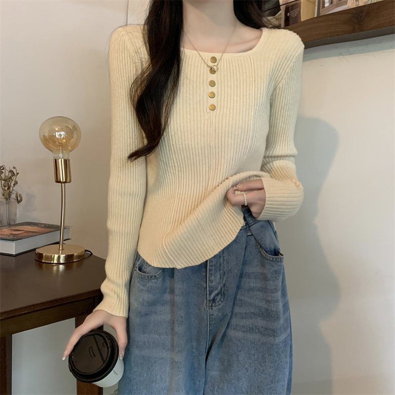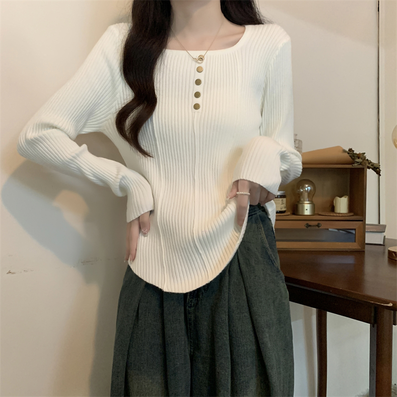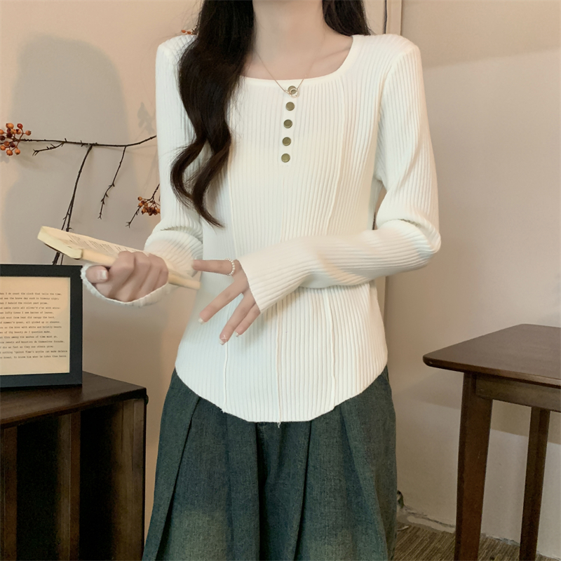 RM29791#新款设计感长袖针织衫女韩版内搭加厚辣妹百搭纯欲上衣女