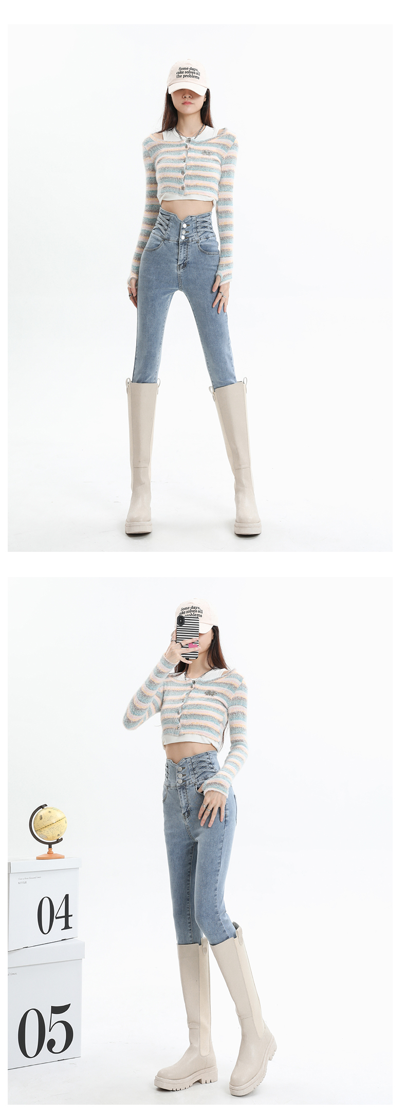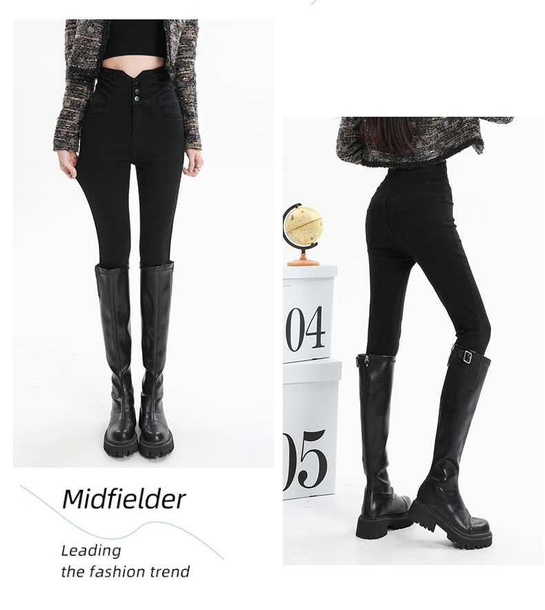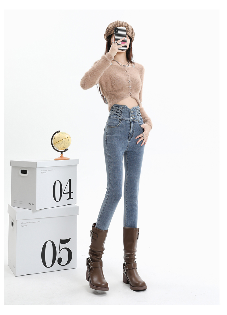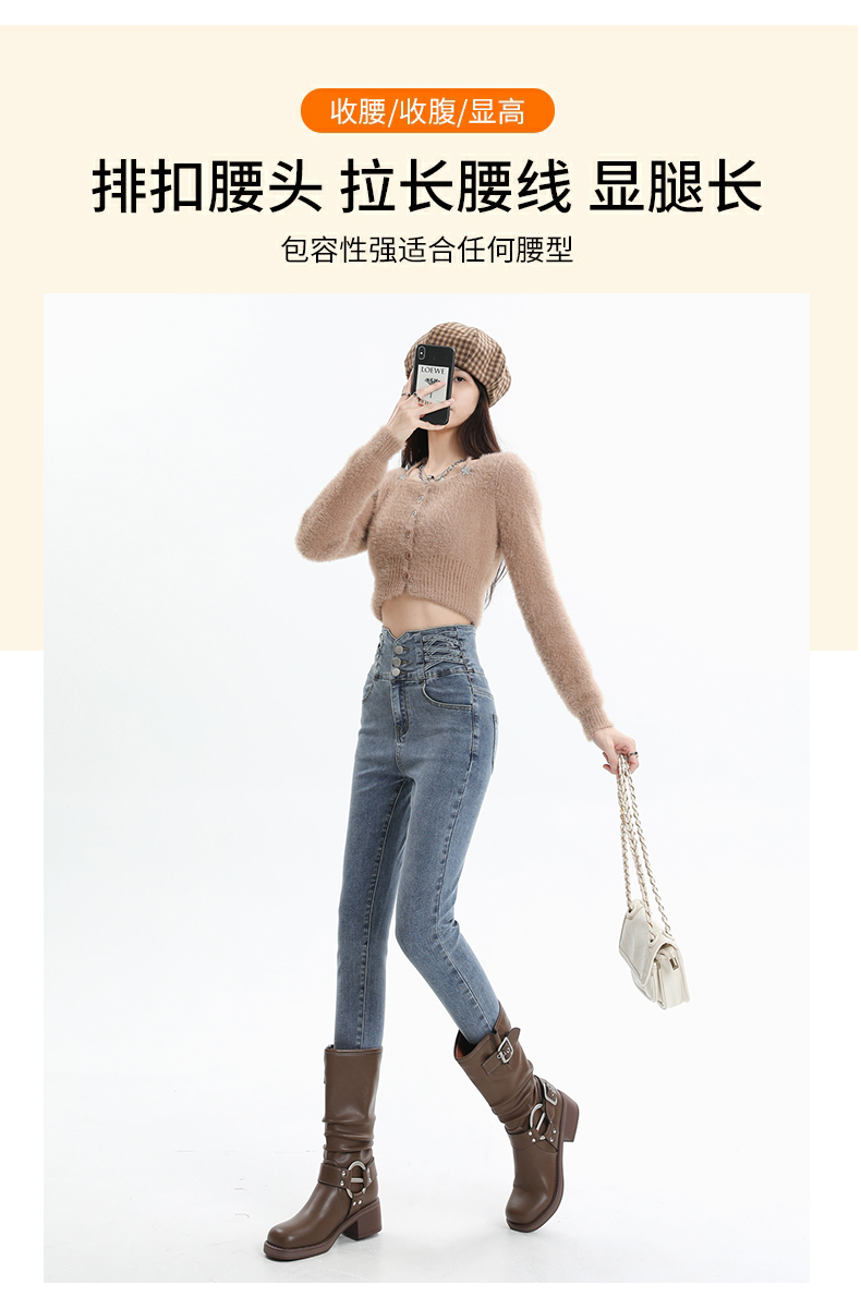 RM29923#加绒加厚高腰显瘦小脚牛仔裤女紧身弹力铅笔裤子靴裤