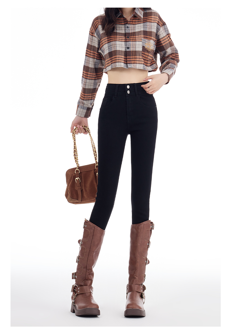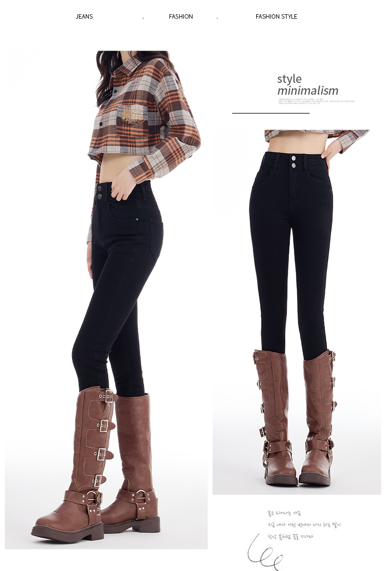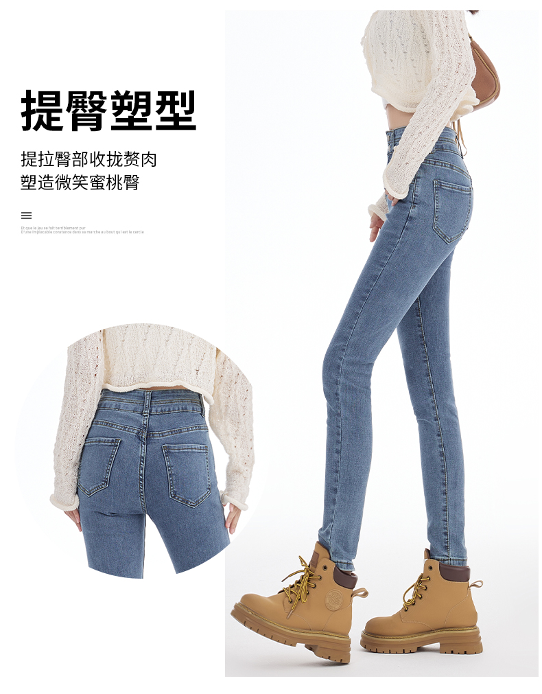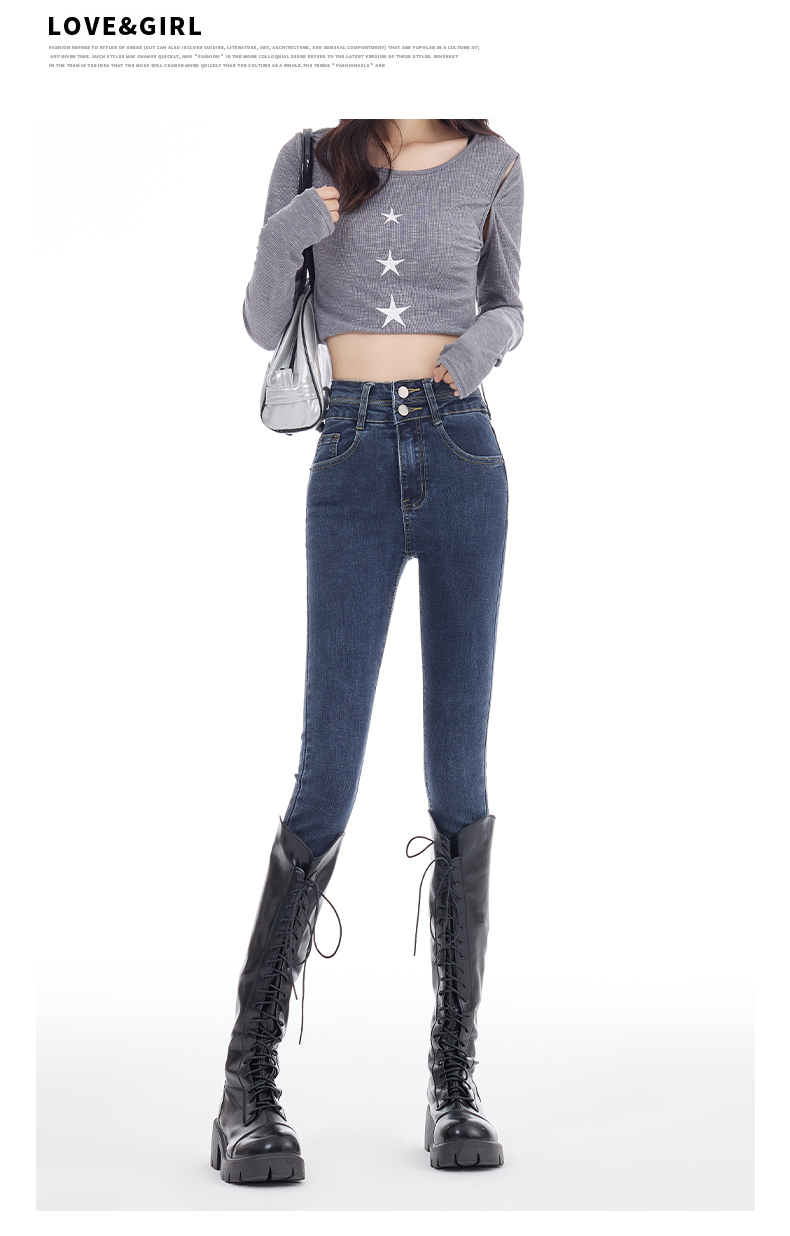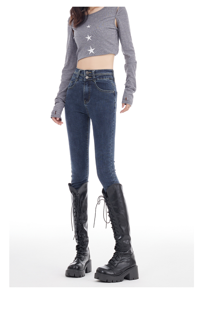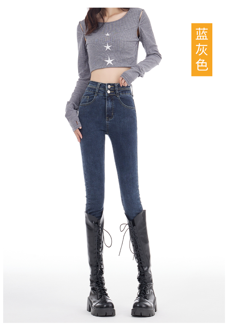RM29933#新款高腰双扣高弹紧身修身显瘦百搭高品牛仔女小脚铅笔裤
