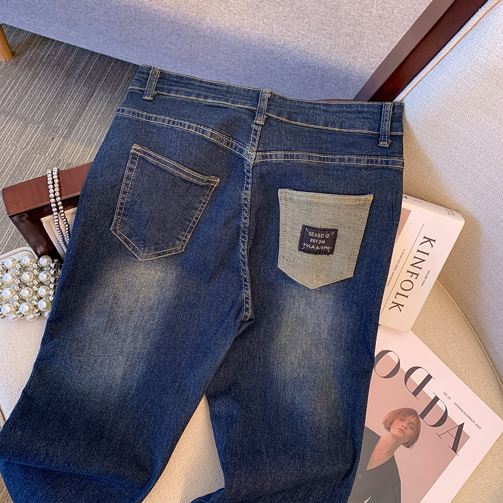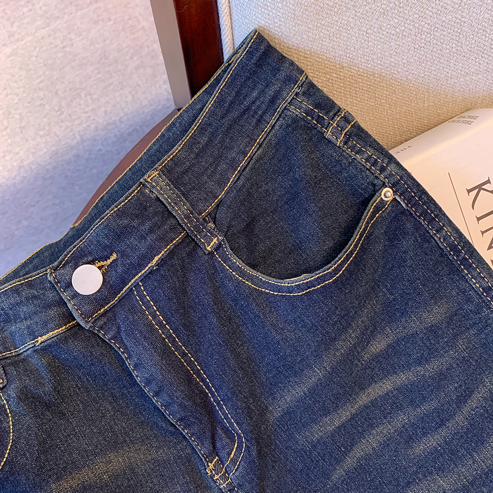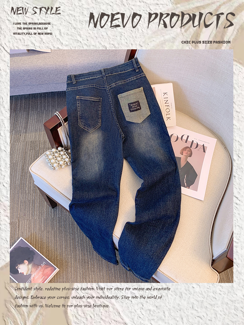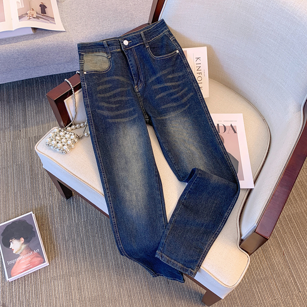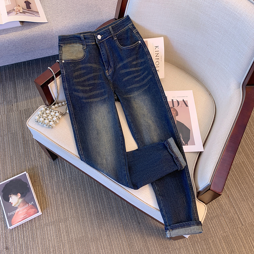 RM29998#大码女装秋冬复古高腰弹力哈伦牛仔裤胖mm遮胯显瘦萝卜老爹裤