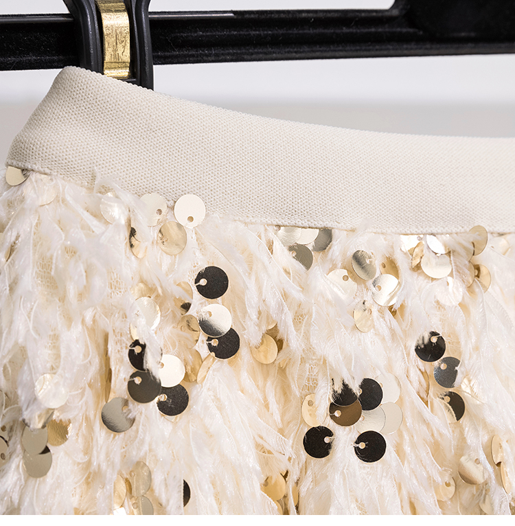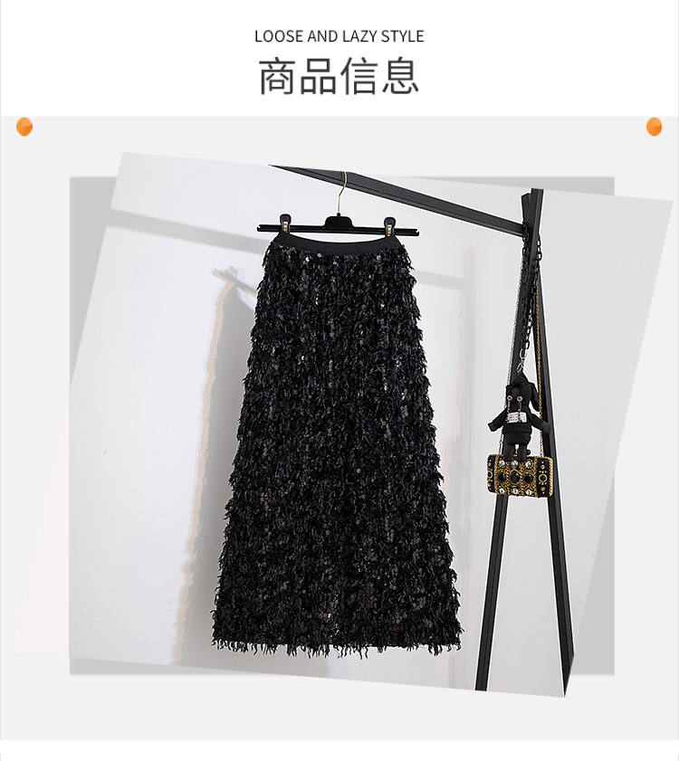 RM29999#大码女装 新款韩版重工开叉羽毛保暖加绒亮片半身裙