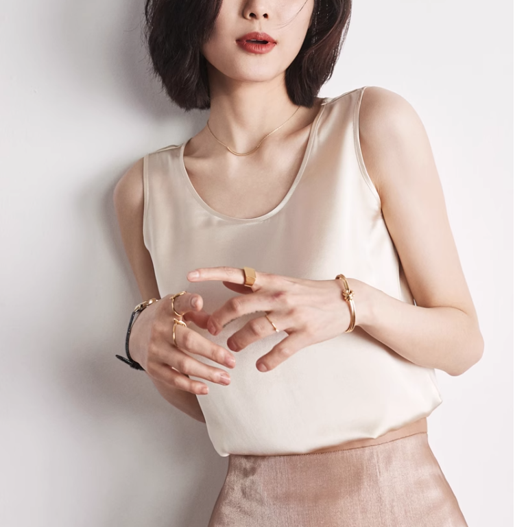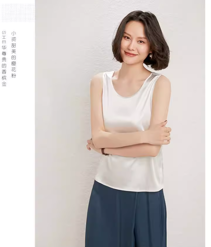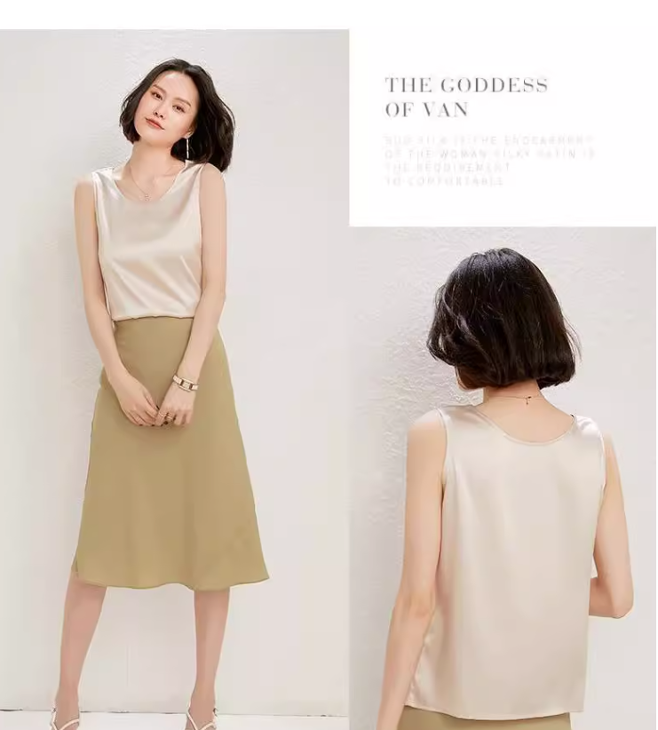 RM30043#圆领真丝小吊带背心女外穿纯色圆领桑蚕丝打底内搭绸缎上衣