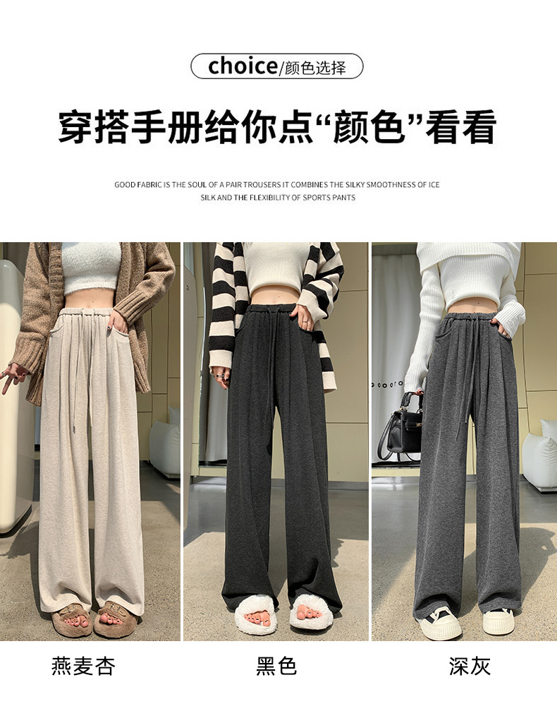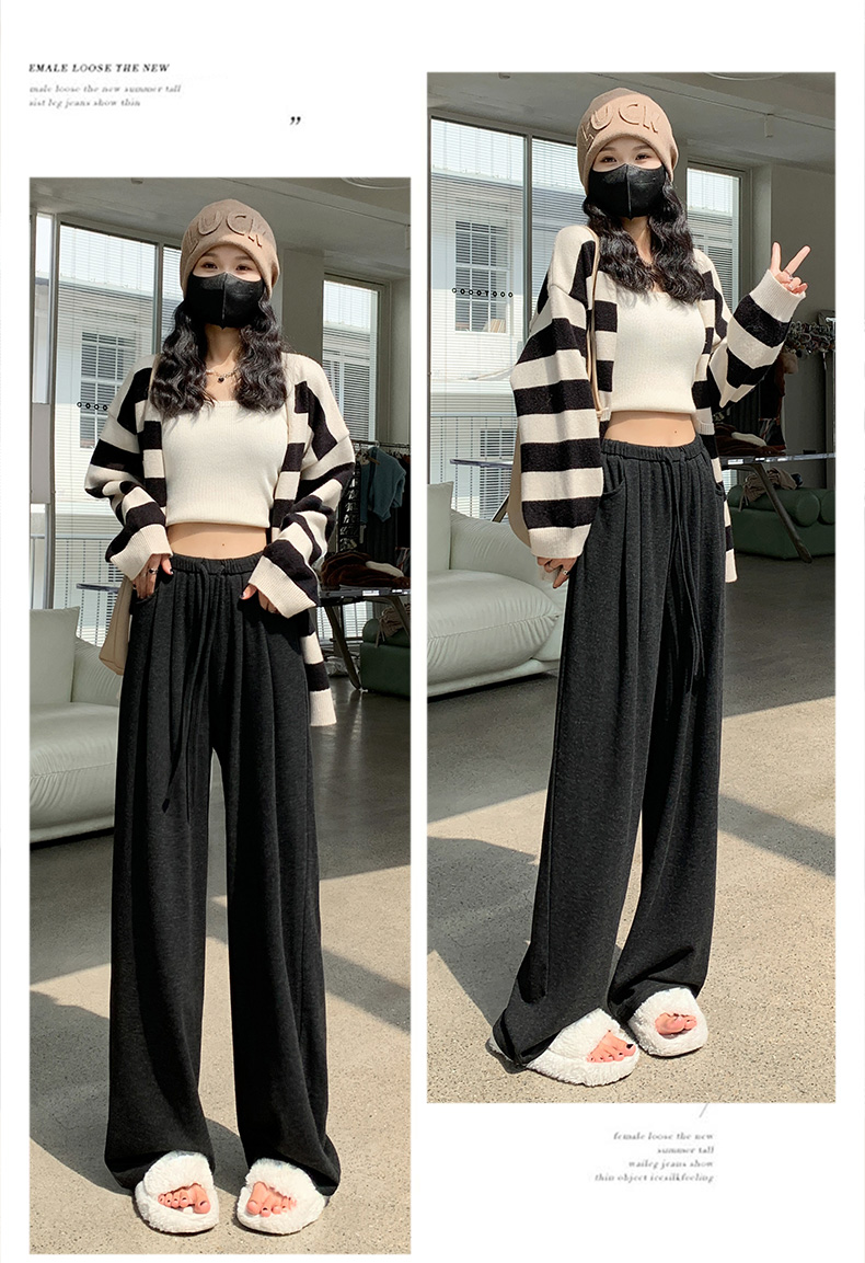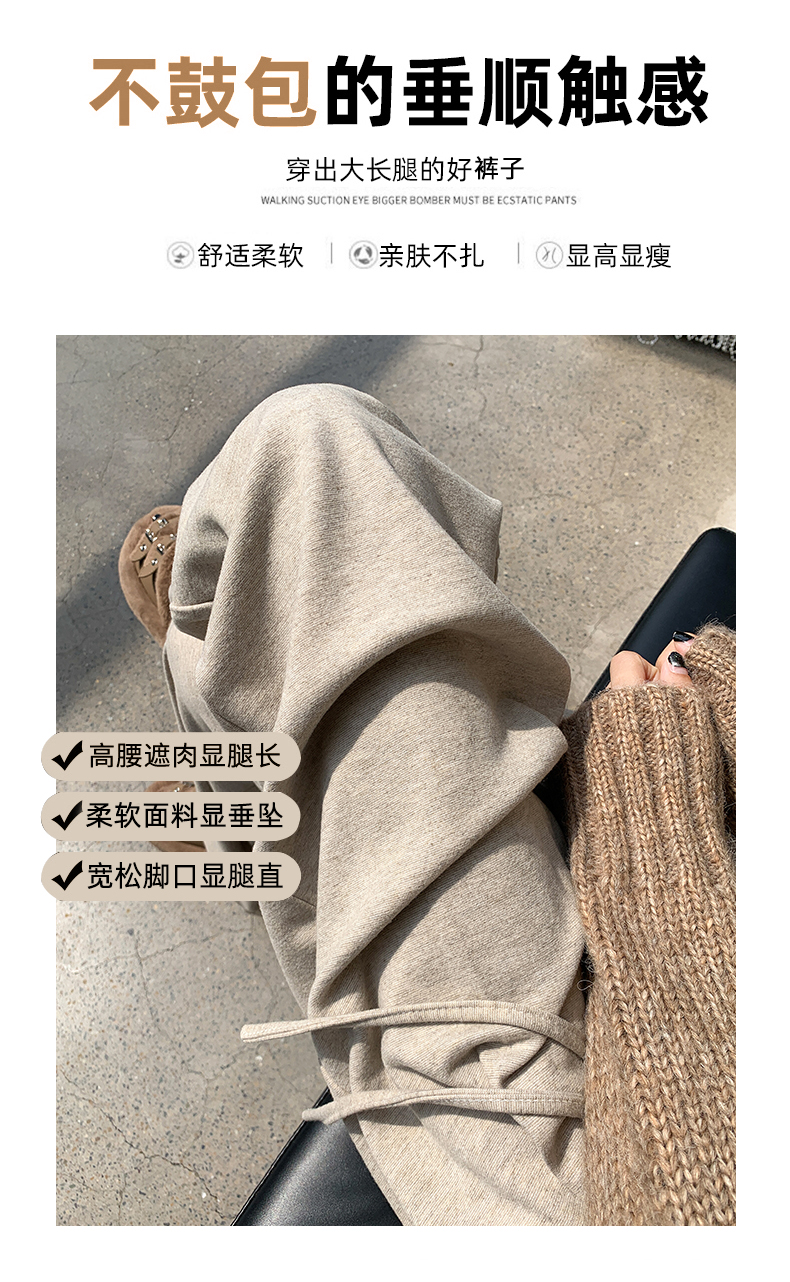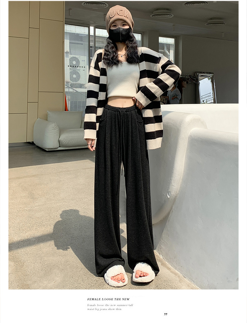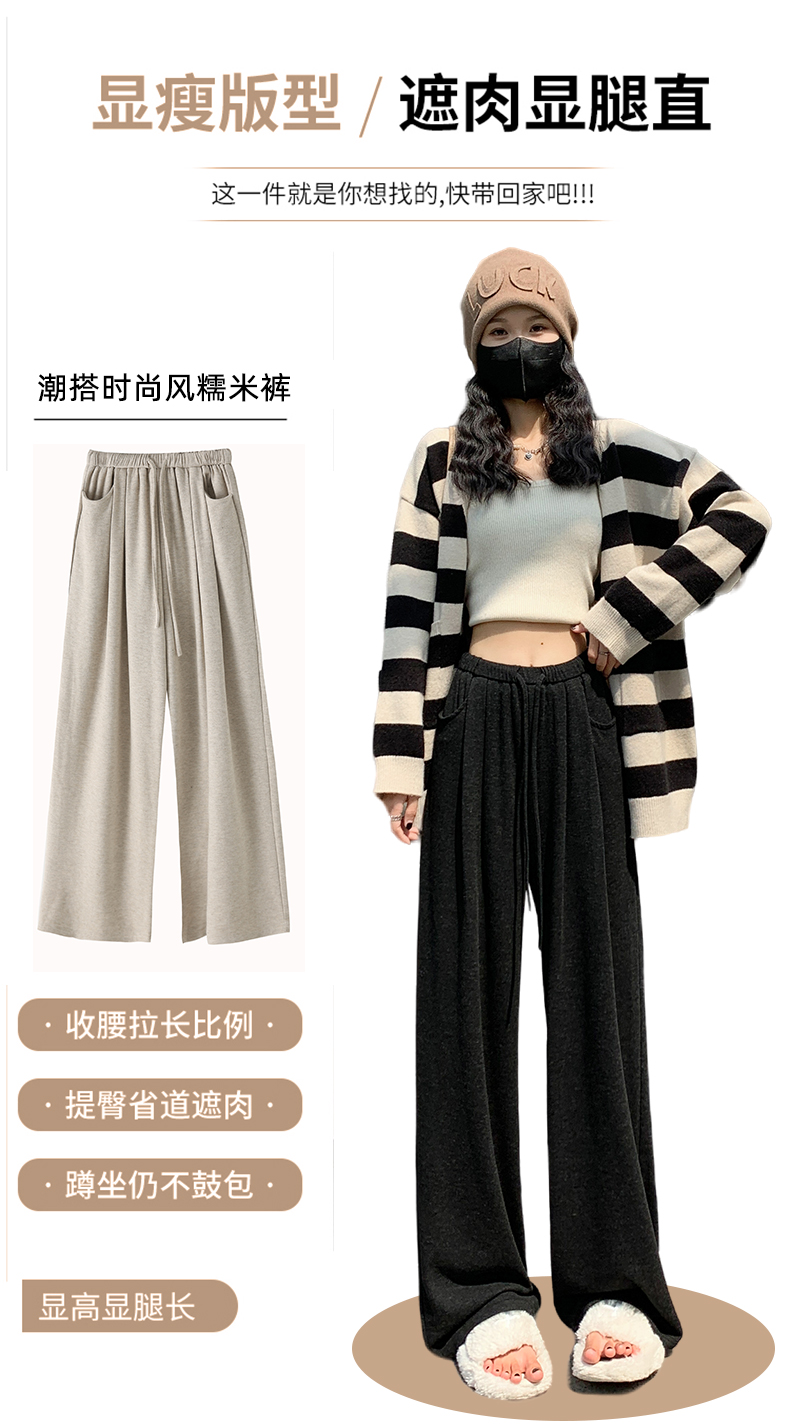 RM30053#加绒加厚糯米裤阔腿裤女高腰宽松垂感休闲裤慵懒风针织拖地裤