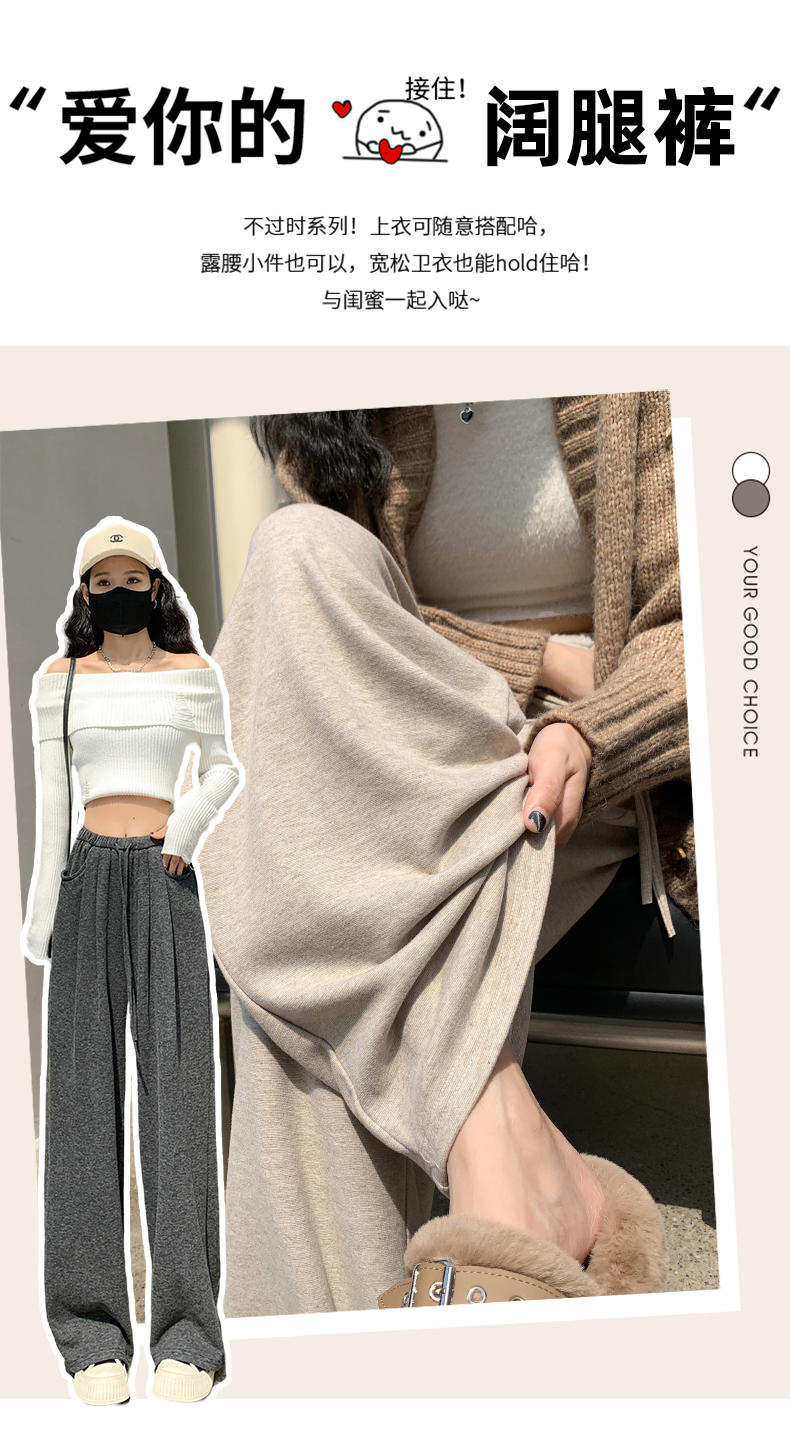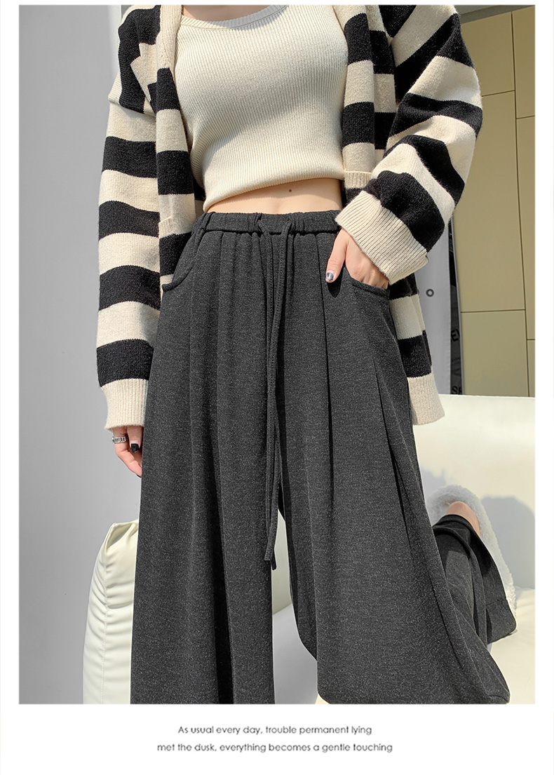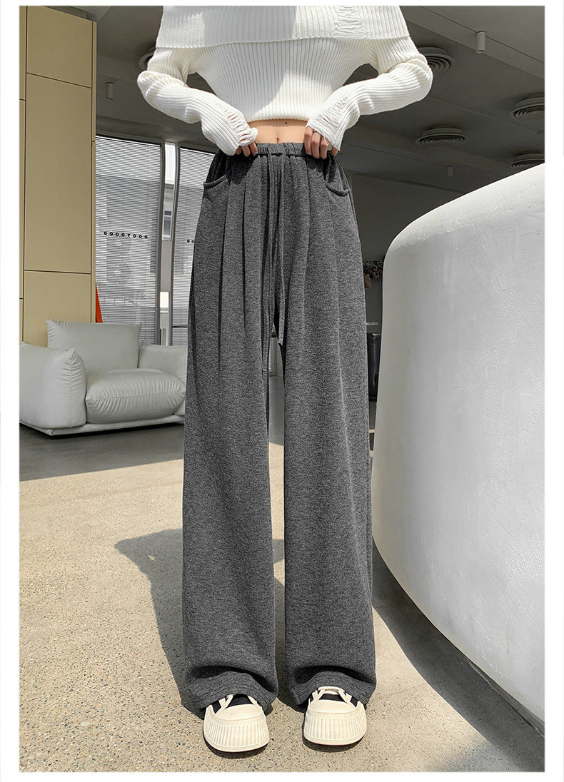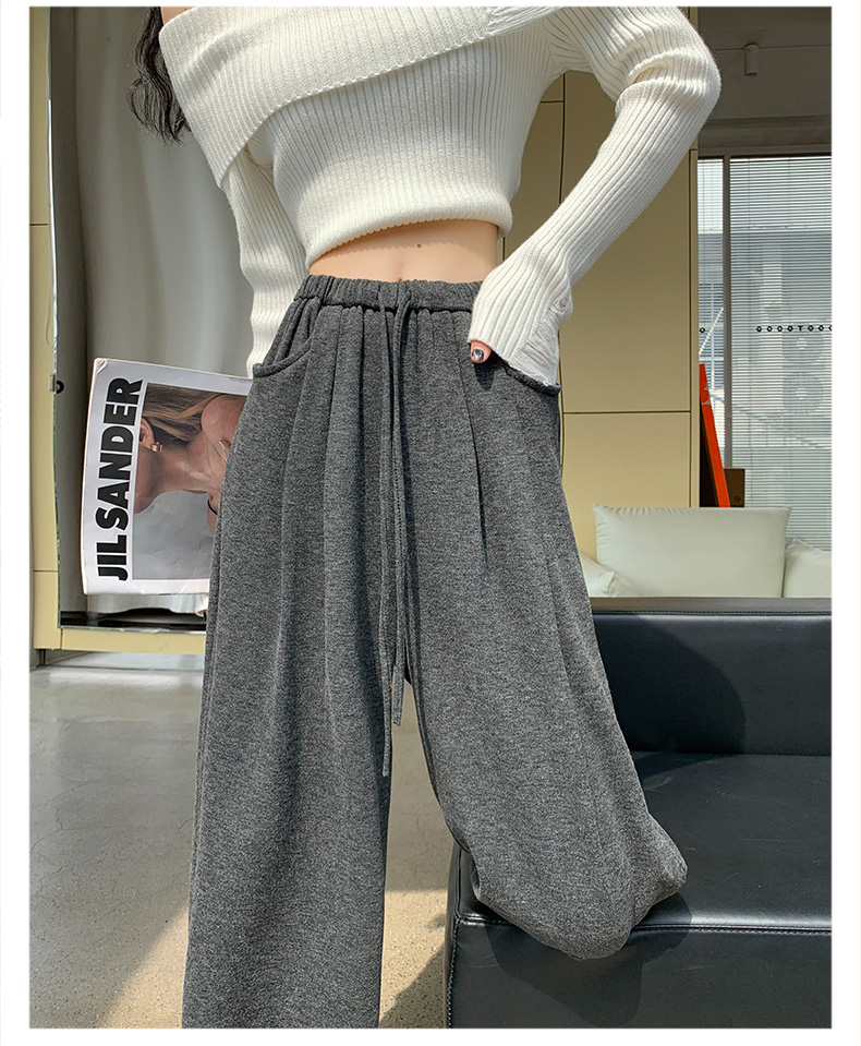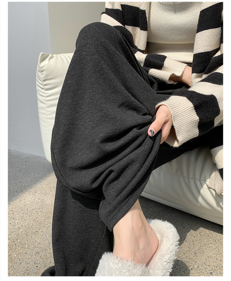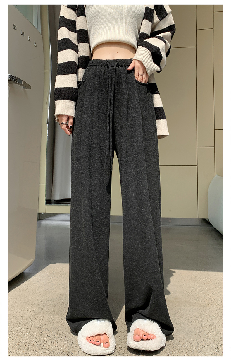 RM30053#加绒加厚糯米裤阔腿裤女高腰宽松垂感休闲裤慵懒风针织拖地裤