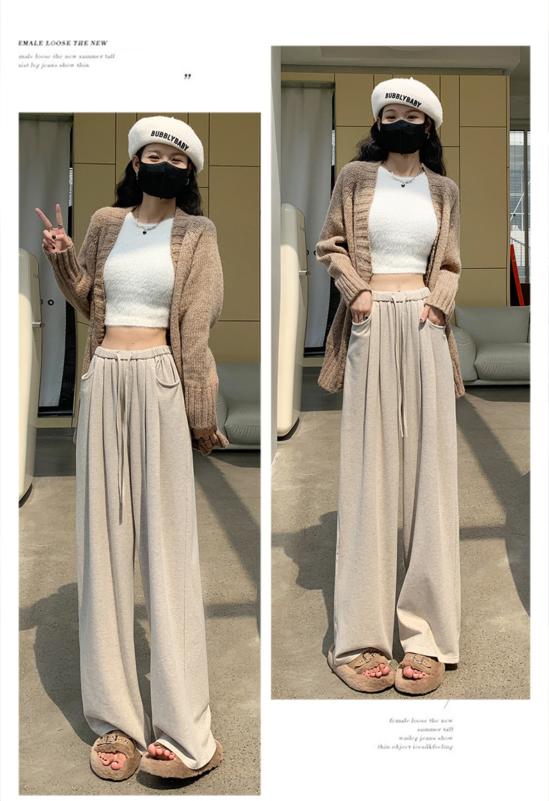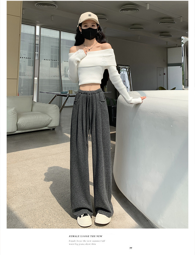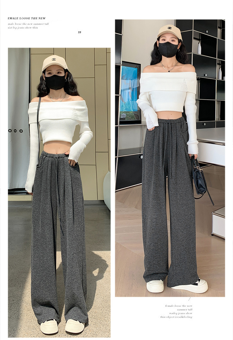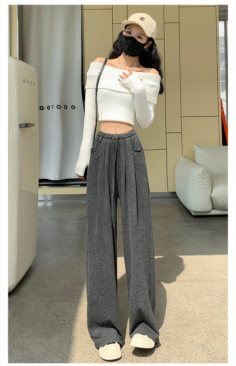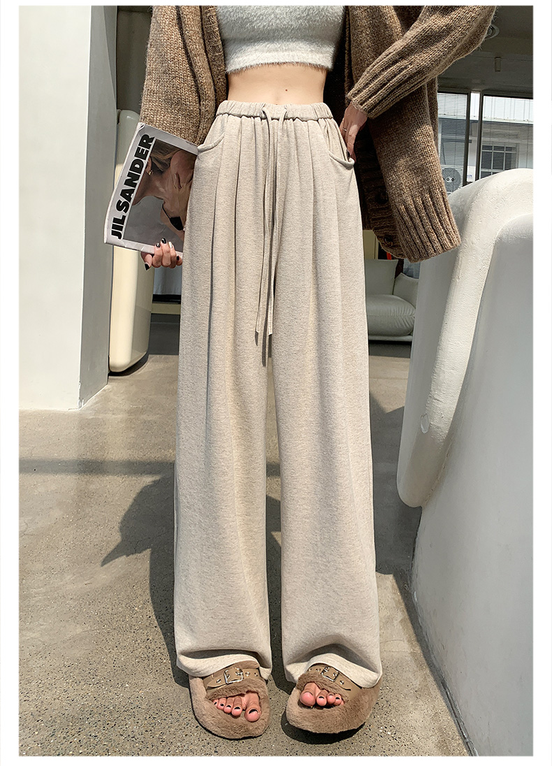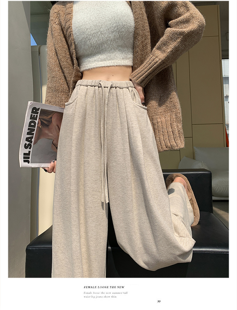 RM30053#加绒加厚糯米裤阔腿裤女高腰宽松垂感休闲裤慵懒风针织拖地裤